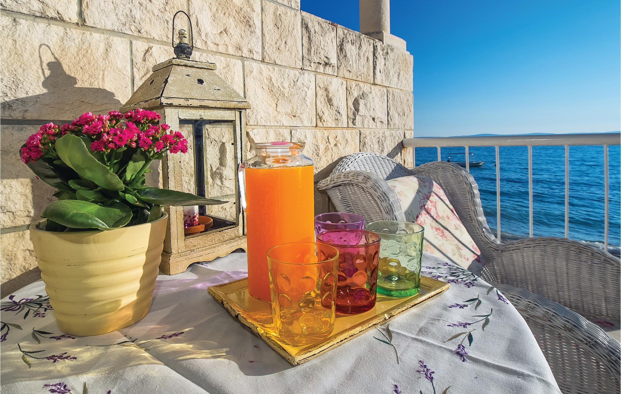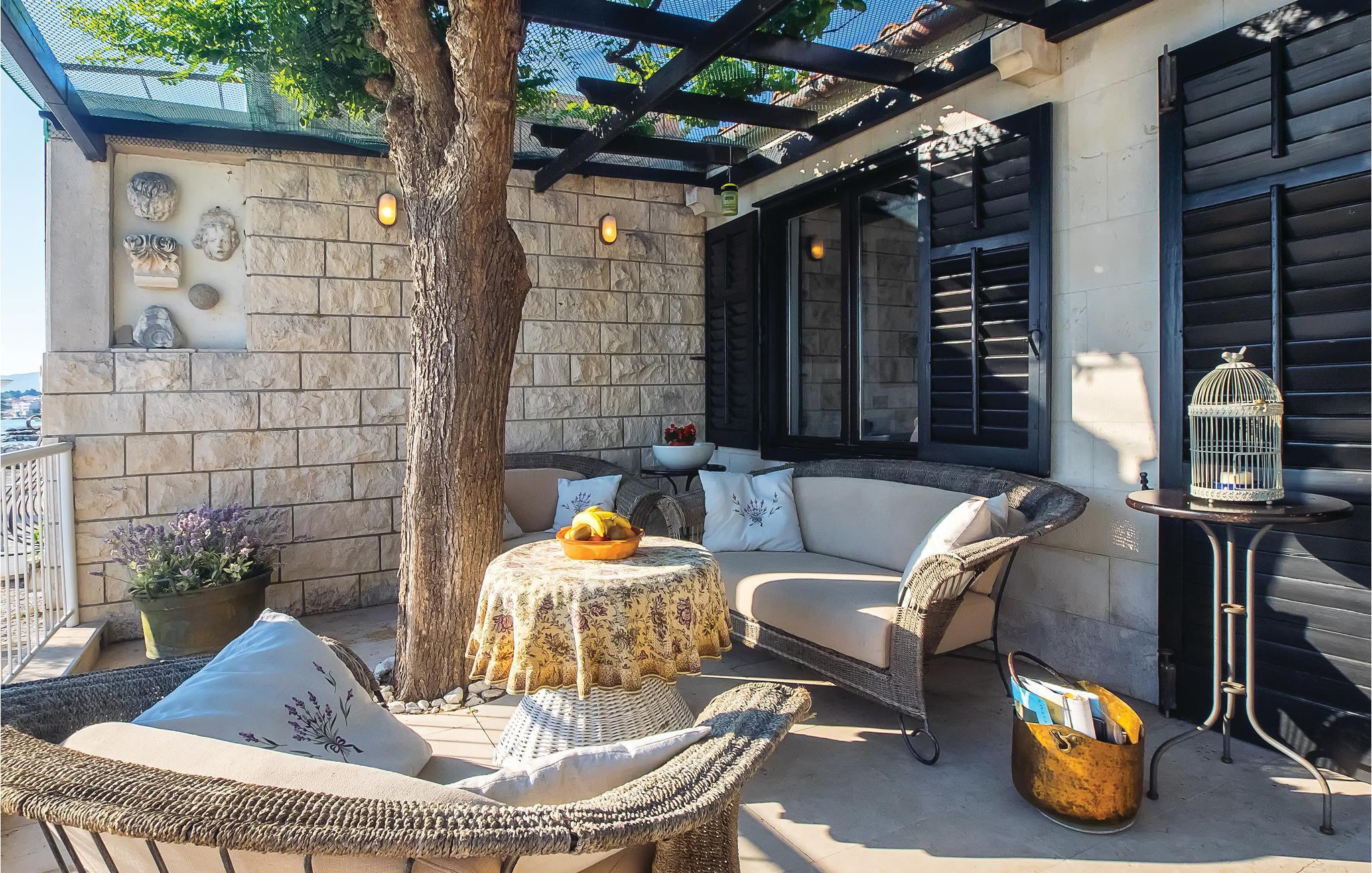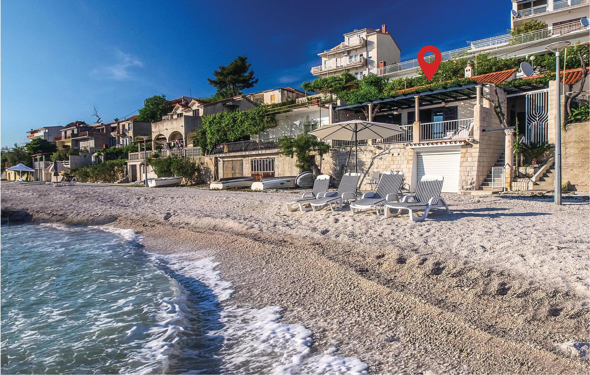 Dette skønne og stilfuldt indrettede feriehus ligger lige ud til vandet, i centrum af den lille idylliske by Podstrana, ikke langt fra Split. Her kan I tilbringe lange afslappede dage med at svømme og tage solbad. I stueplan er der udendørs køkken, rum til opbevaring og wc. Spisestuen er en del af opholdsstuen. Der er en dejlig charme på terrassen, hvor der gror vin. Herfra er der en skøn udsig over havet. Nyd de komfortable omgivelser, jeres egen terrasse på stranden og den meget nære adgang til havet – I kan holde øje med de badende fra terrassen. Strandpromenaden fører til et luksuøst ferieanlæg, med restauranter, butikker, udlejning af både og forskelligt adrenalin-sjov på vandet. I byen Split er der mange kulturelle seværdigheder, mange former for sommerunderholdning og et livligt natteliv. Også nabobyen Trogir er en køretur værd. Soveværelse 3 kan kun tilgås udefra.
