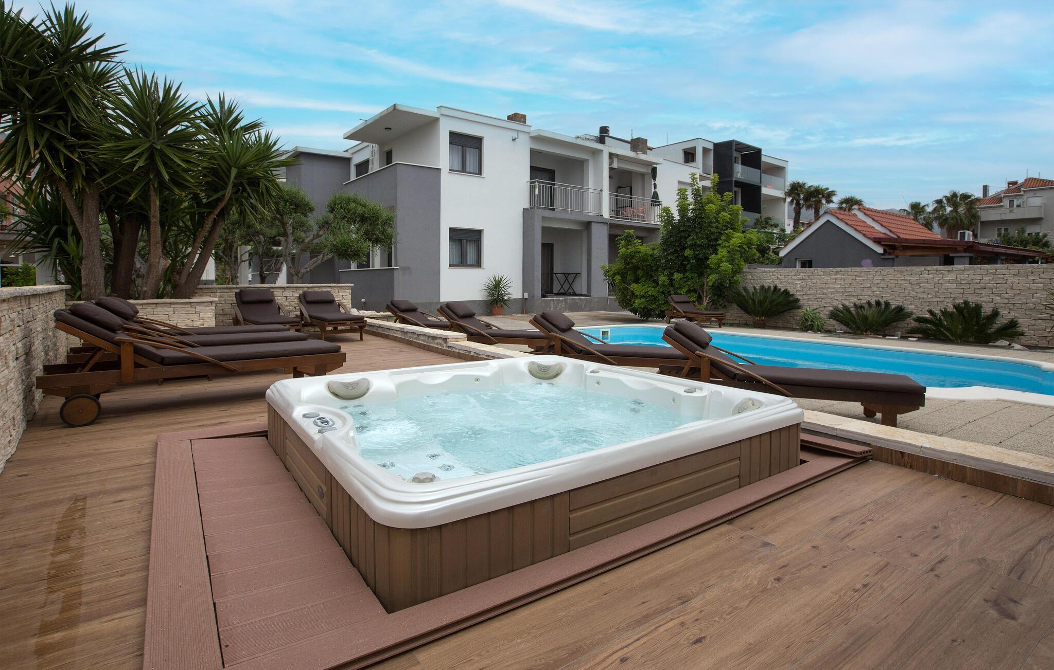 Denne halvdel af et dobbelthus ligger lige ud til stranden og fordeler sig på to etager, der er forbundet med en udendørs trappe. Hver etage rummer en komplet lejlighed der er enkelt og praktisk indrettet, som er ideelle for to familier eller en gruppe venner der gerne vil nyde hinandens selskab på ferien. Fra den velplejede have er der direkte adgang til en af de mange kiesstrande, i haven er det oplagt at grille og tilbringe de gode feriedage sammen. I haven er der både et udendørs køkken, pool og en udendørs bruser til rådighed. Husets ejer bor i en lille bungalow på den anden side af haven. Podtrana er en lille by nær Split (9 km), byen som er med på UNESCOs kulturarvsliste.