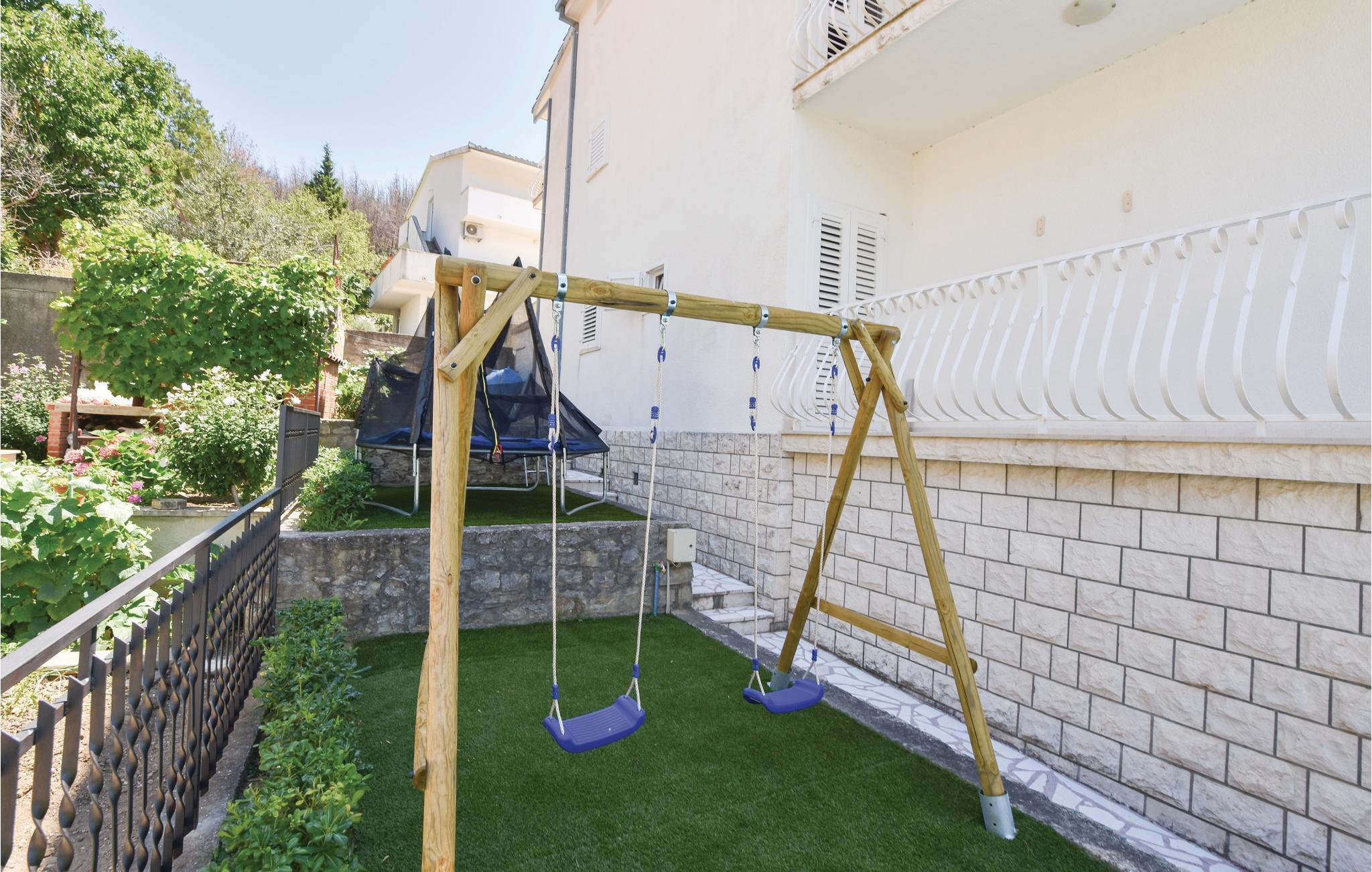 Dette rummelige og smagfuldt indrettede feriehus med pool, ligger omgivet af den grønne frodige natur og kun få minutter i bil fra nærmeste strand, golfbanen og den historiske by Split. Her har i alle muligheder for en aktiv ferie, for at opleve kunst, historie og kultur og ikke mindst kaste jer ud i nattelivet. I kan hoppe en tur i poolen, eller spille billard, bordtennis, dart og bordfodbold. I haven er der både grill og legeredskaber til børnene. Feriehuset rummer to separate lejligheder forbundet med indre trapper. Slap af på den rummelige terrasse på første sal, hvorfra der er havudsigt.