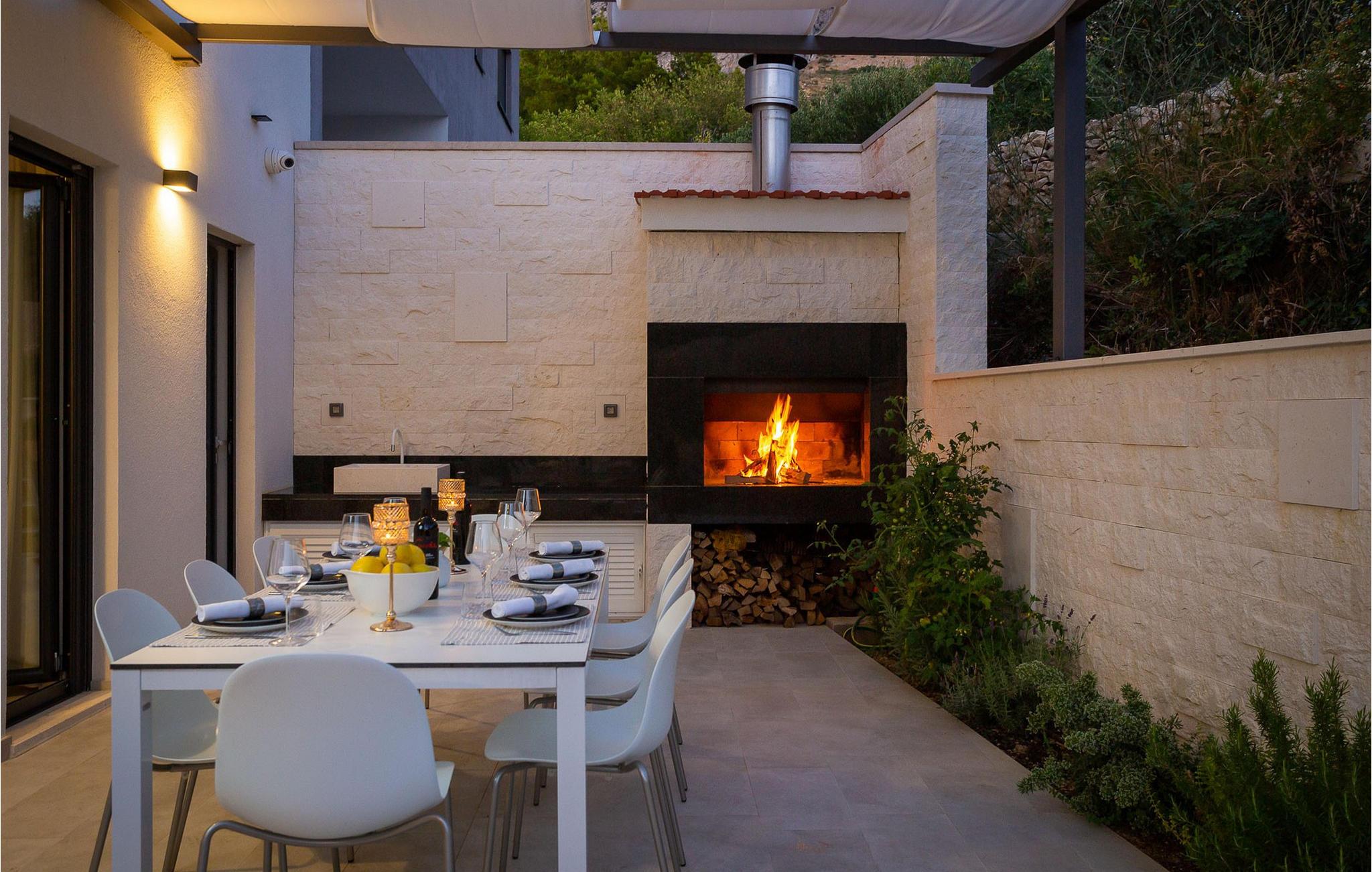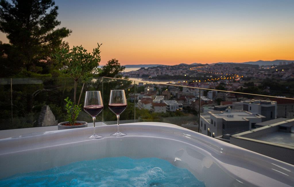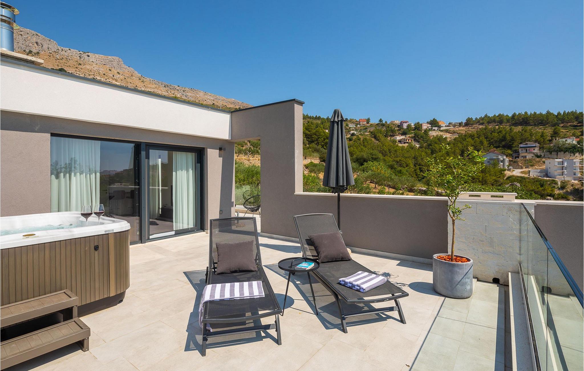 Glæd jer til dette smukke, moderne feriehus med en fantastisk udsigt over Adriaterhavet. Villa 9 tilbyder en vidunderlig kombination af barsk dalmatisk natur og moderne arkitektur, samt en fantastisk udsigt over Adriaterhavet og alle øerne i Splitbugten. Villaens ydre og indre er designet til absolut afslapning af krop og sind. Et fuldt udstyret køkken med omhyggeligt udvalgte detaljer garanterer masser af sjov, mens I tilbereder jeres yndlingsmåltider. Den komfortable stue og spisestue er designet til familier, hvor I kan samles til måltider eller blot samles omkring pejsen. Yngre familiemedlemmer kan slappe af på spillekonsollen eller streame deres yndlingsserier. I har også adgang til en udendørs terrasse, ideel til sociale sammenkomster. Der er også en udendørs grill i en omhyggeligt vedligeholdt gårdhave. Absolut nydelse venter jer i den store pool samt i saunaen og det moderne spabad. Villa 9 ligger i Podstrana, kun få kilometer fra den dalmatiske perle Split. I årtier har Split tiltrukket turister med sit rige turistudbud, sin kulturarv og uberørte natur. Udforsk arkæologiske steder som Ad Basilicas Picta, Diocletians Palads, Peristyle, Jupitertemplet, St. Dujes klokketårn eller Prokurative, Republikpladsen.