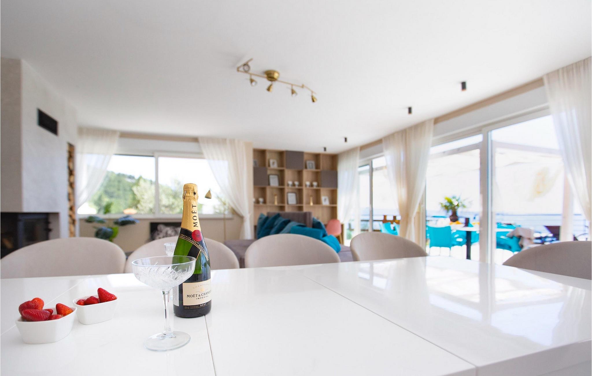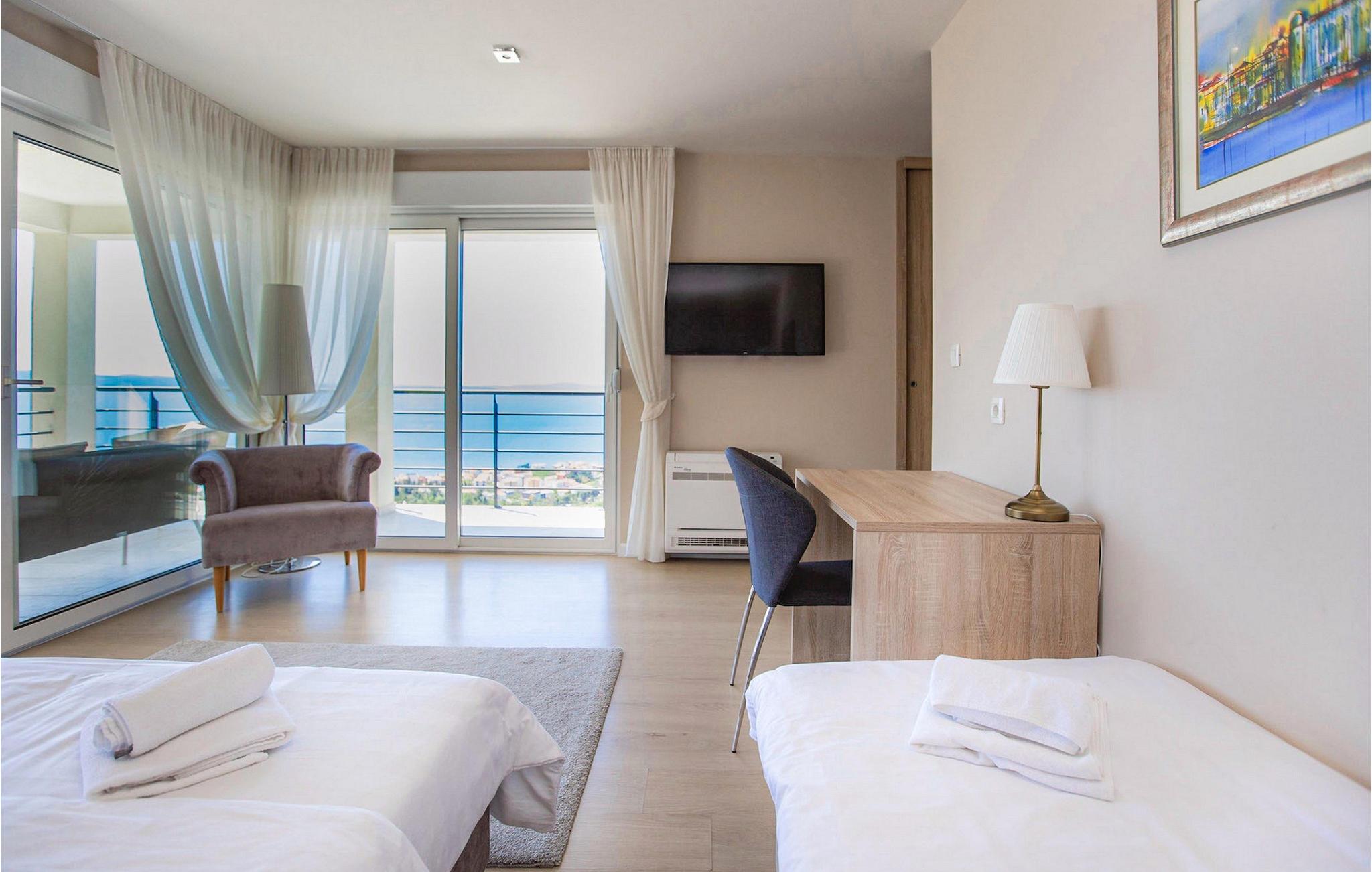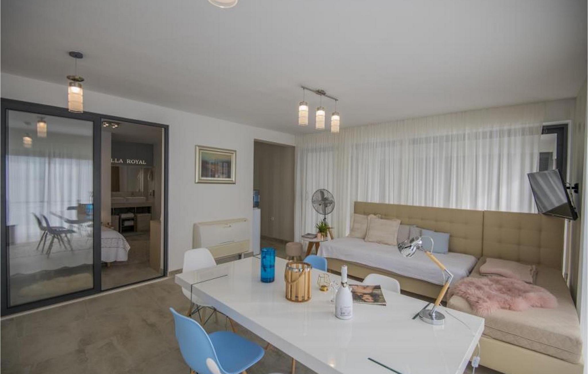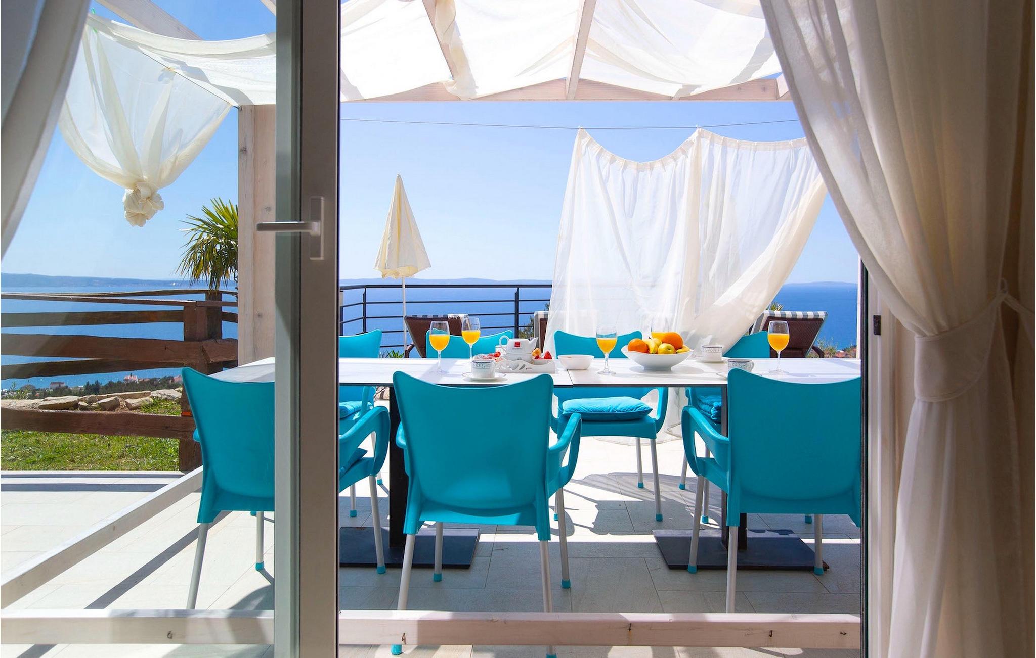 Villa Royal 1 Podstrana ligger i det lille sted Podstrana, kun en kort køretur fra byen Split. Villaen har i alt 3 soveværelser og kan rumme op til 6+2 personer. Interiøret er præget af rene linjer og moderne design. Den åbne stueetage består af et moderne og veludstyret køkken, spiseplads og stue med en fantastisk havudsigt. Et soveværelse med eget badeværelse ligger også i stueetagen og har direkte adgang til terrassen. På første sal er der yderligere to soveværelser med dobbeltsenge og ensuite badeværelser. Alle værelser har aircondition og tv. Terrassen på første sal tilbyder dig et ekstra privat sted at nyde panoramaudsigten. Foran villaen er en privat pool, hvor du kan slappe af, mens du læser din yndlingsbog eller nyder solen. Denne unikke villa er perfekt til familier og grupper og tilbyder sine gæster en virkelig uforglemmelig ferie.Villa Royal 1 Podstrana ligger på en skråning med smuk udsigt over Adriaterhavet, øer og kystbyen Podstrana. Alle nødvendige faciliteter såsom butikker, restauranter og caféer ligger kun en kort gåtur fra villaen. Tilbring din ferie på smukke stenstrande, ideel til familier med børn. Villaen er beliggende i det centrale Dalmatien, hvilket gør den til en ideel base for mange dagsture. Besøg byen Split og dens Diocletians palads med dens mange smalle gader og toprestauranter. Gå ikke glip af at besøge øerne Brac, Solta og Hvar, eller måske endda øen Vis, som er helt anderledes end andre øer i Adriaterhavet. Slap af i den smukke natur, i talrige nationalparker og naturreservater. For alle adrenalinelskere kan du besøge floden Cetina, hvor du kan nyde rafting og zipline, eller køre til Biokovo-bjerget og gå en tur på skywalken.