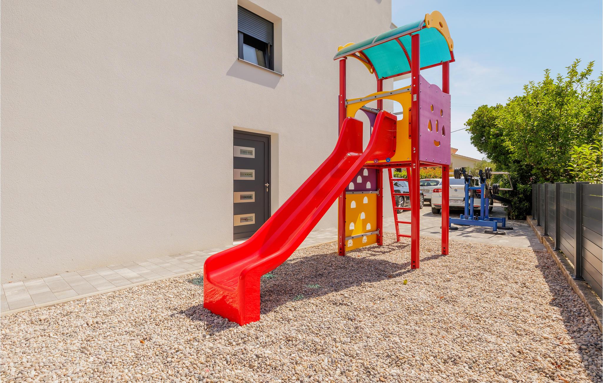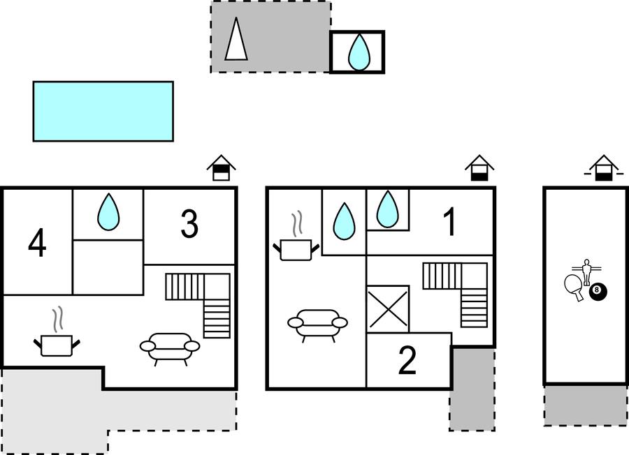 I husets indhegnede gård er der en pool, ved siden af ??er der en overdækket terrasse med grill til afslapning. Voksne kan slappe af i gården med en udendørs fitnessmaskine, mens der for de yngre er børnefaciliteter som rutsjebane, fodboldmål eller badmintonketchere.