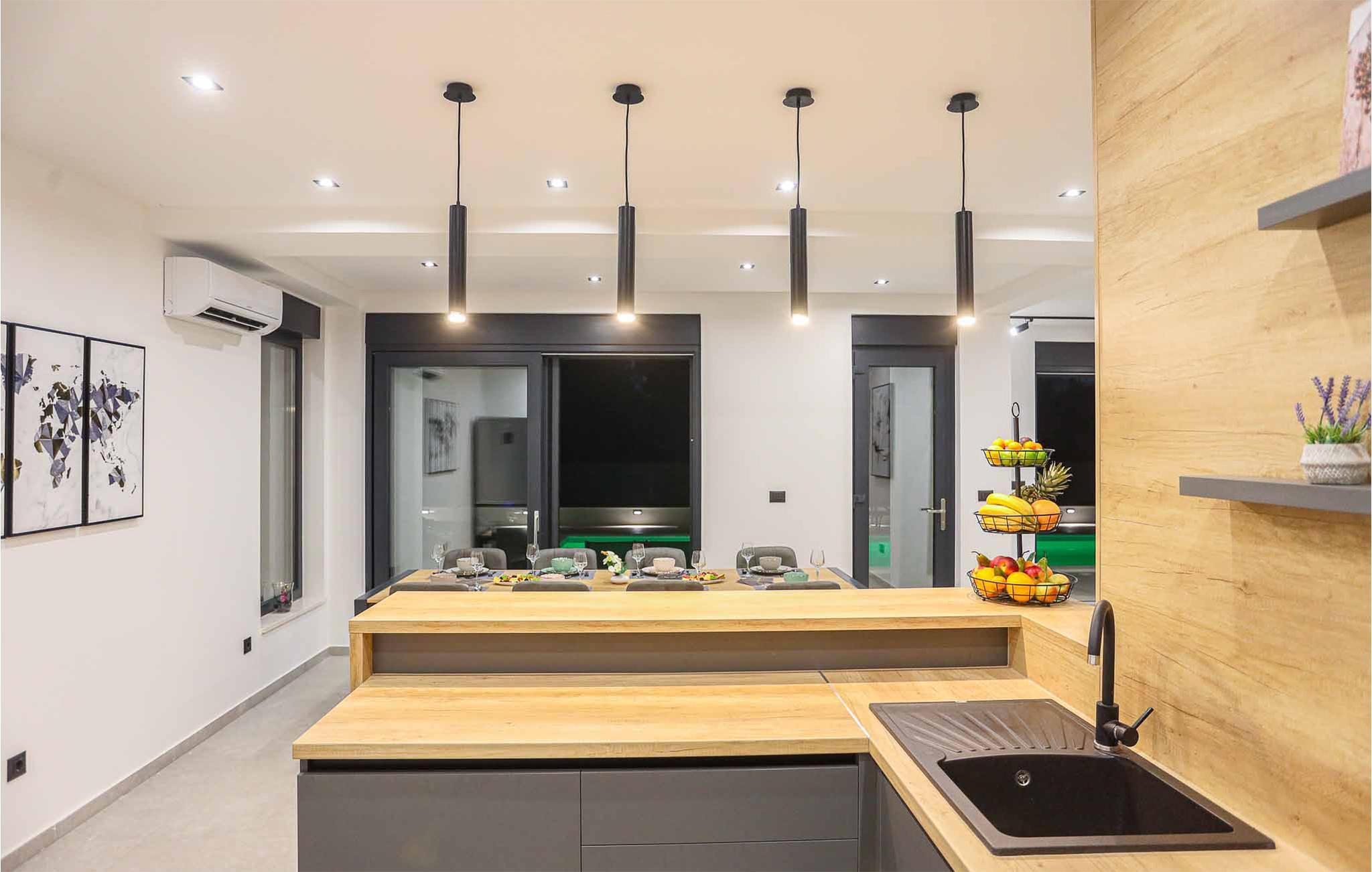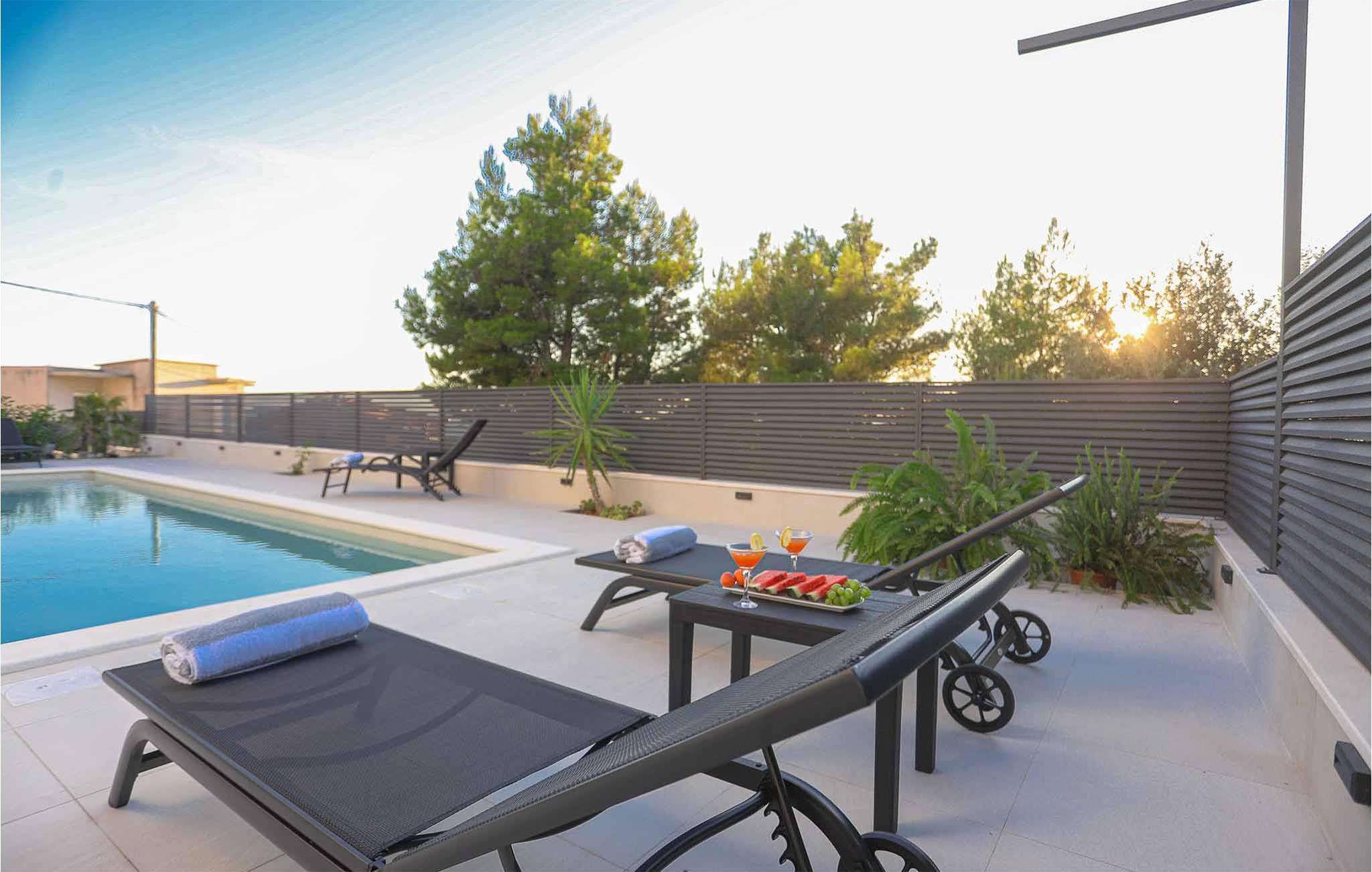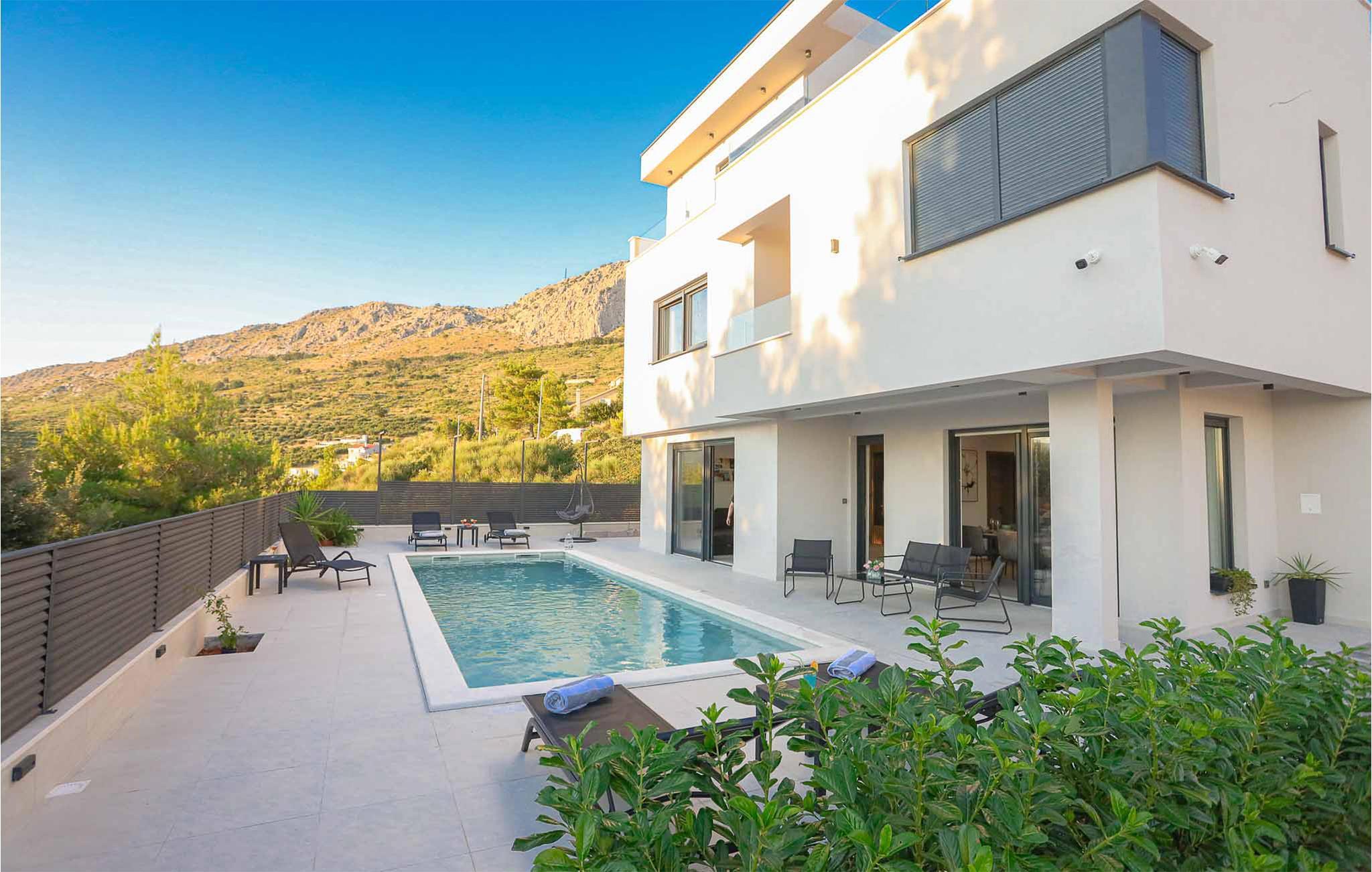 Hvis I går med drømme om en uforglemmelig ferie, så lad dem opfylde i dette komfortable og moderne hus i Podstrana. På hustes tre etager kan I nyde boligens luksus og højkvalitetsmøbler og udnytte den store plads fuldt ud. Næsten alle soveværelser har deres eget badeværelse, så her kan I nyde godt af privatlivets fred. I kan også hygge jer i aktivitetsrummet, hvor I kan spille spil eller dyrke motion. Og så lader vi det stå jer frit for, om I vil hænge ud og bade i poolen, eller om I vil nyde udsigten fra den skønne tagterrasse.
