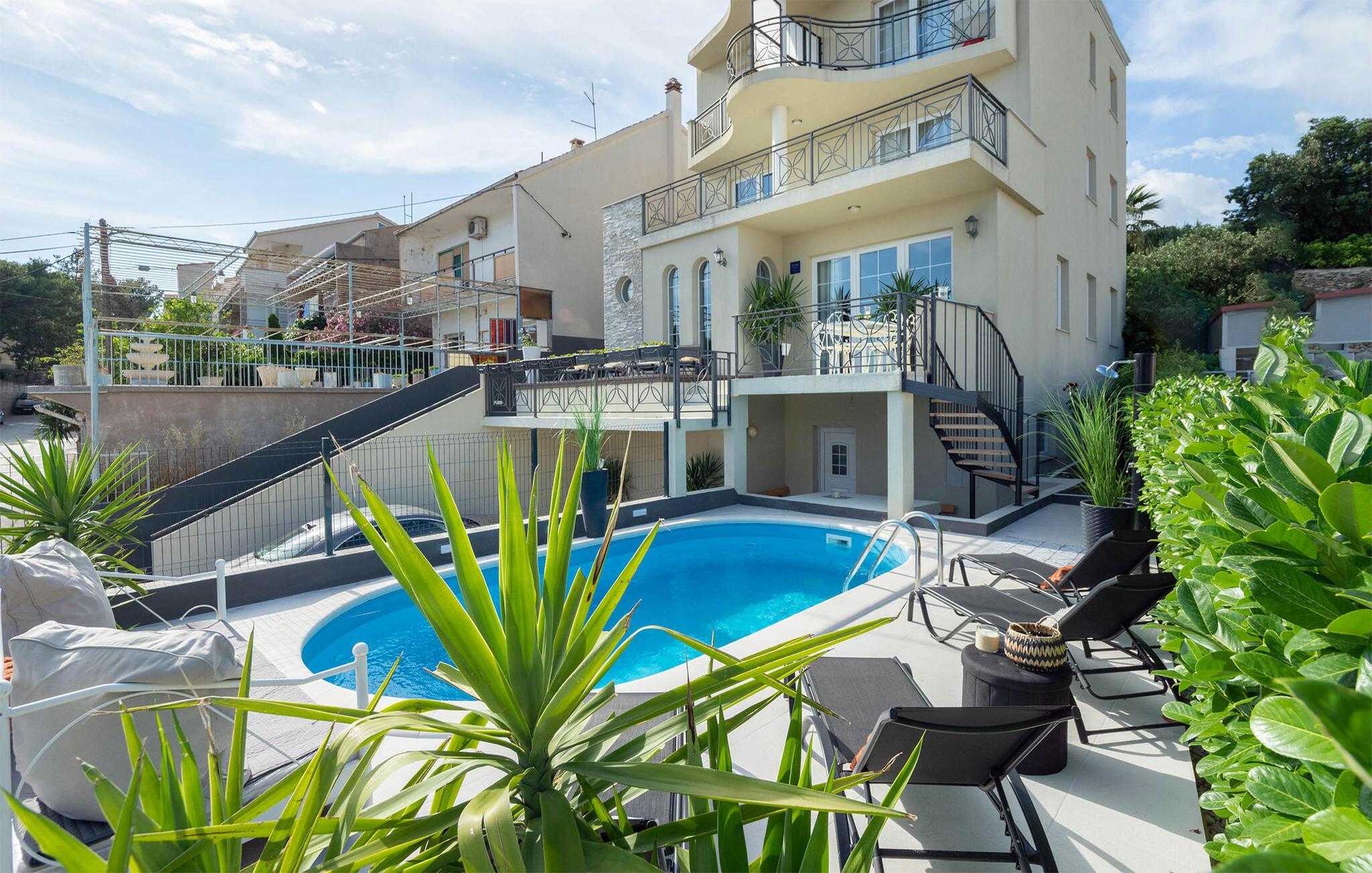 Se frem til en dejlig ferie i denne lækre lejlighed med en vidunderlig havudsigt og privat pool.