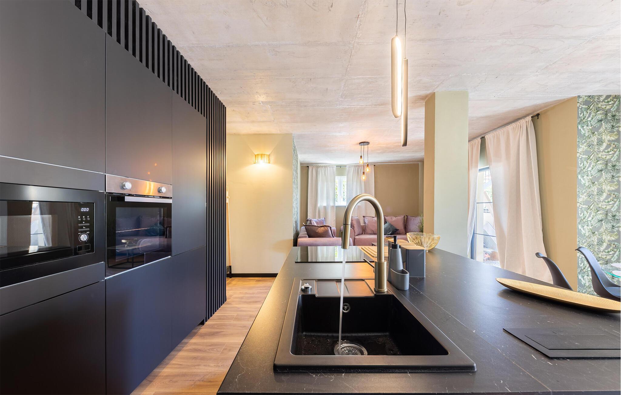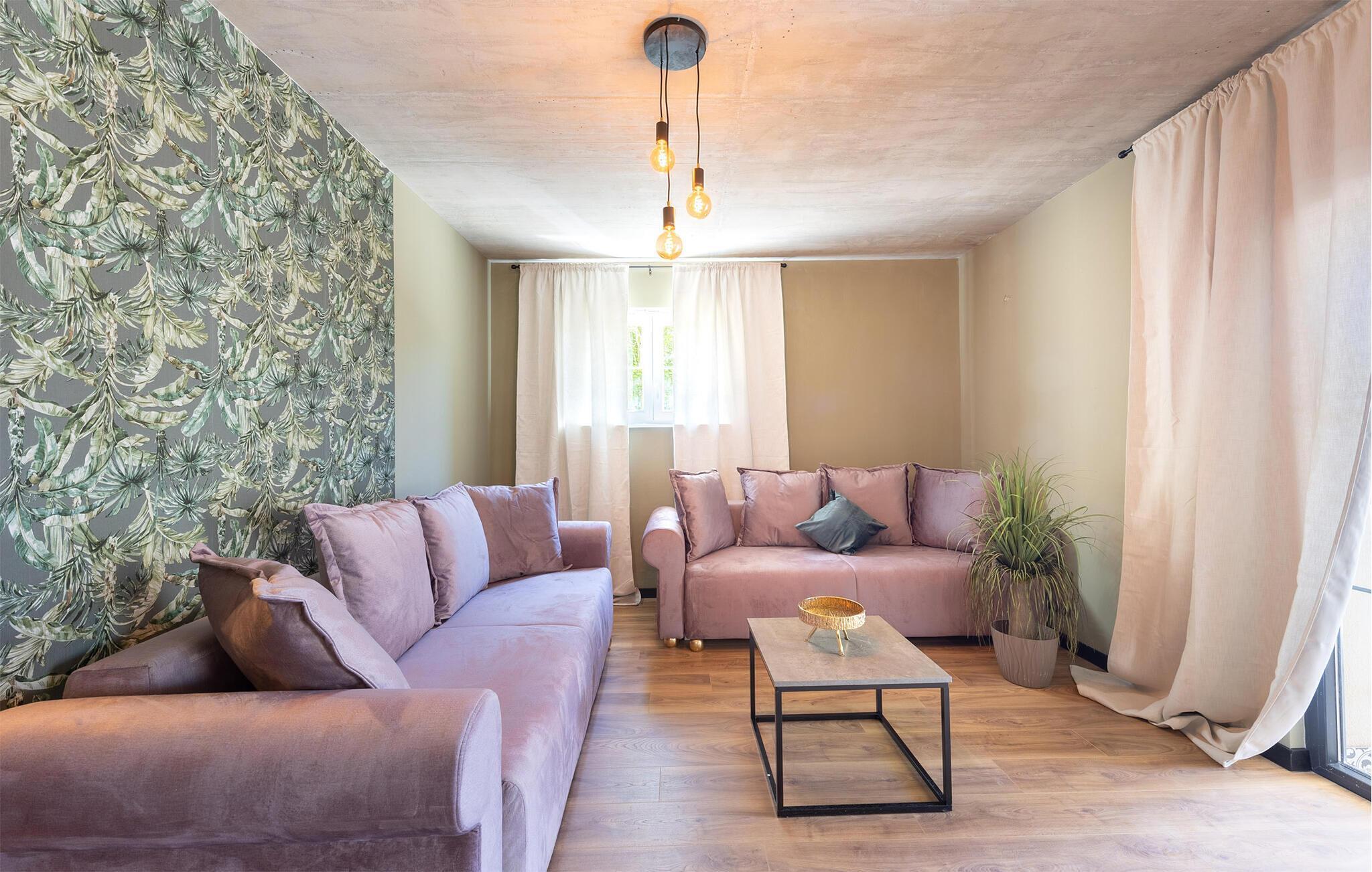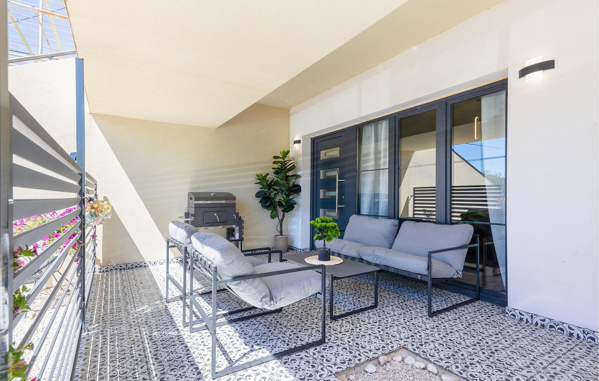 I denne attraktive lejlighed lidt syd for Split får I som familie den perfekte base til årets bedste uger i solen. Indretningen fremtræder særdeles indbydende med festlige farver, velholdte trægulve og et moderne kokken, hvor familiens kokke kan kræse om livretterne efter en begivenhedsrig feriedag. Rund aftenen af med lækre snacks og en god film i den behagelige sofa, mens I lægger planer for de kommende dage.
