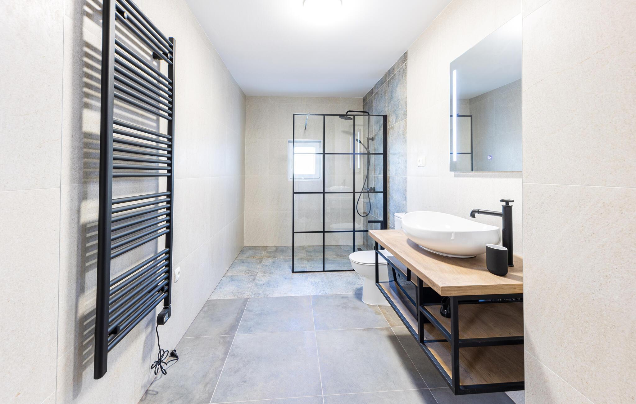 Udenfor venter en dejlig pool, omgivet af palmer og behagelige liggestole. Her kan I slappe af og nyde solen i fulde drag. Brug den overdækkede lounge med udsigt over de omkringliggende bjerge og den maleriske landsby, eller tilbered en lækker barbecue ved grillen. For sports- og legeentusiaster byder udendørsområdet på en række aktiviteter. Et trampolin, en gynge, et bordtennisbord og endda muligheden for at spille fodbold sørger for underholdende timer. Lad børnene lege og have det sjovt, mens I nyder freden og det behagelige middelhavsklima.