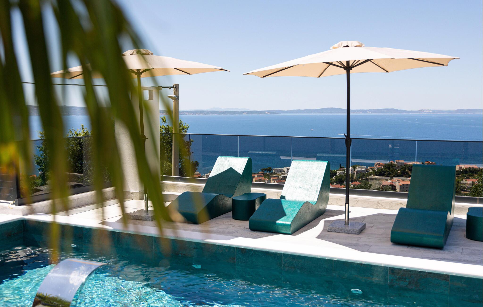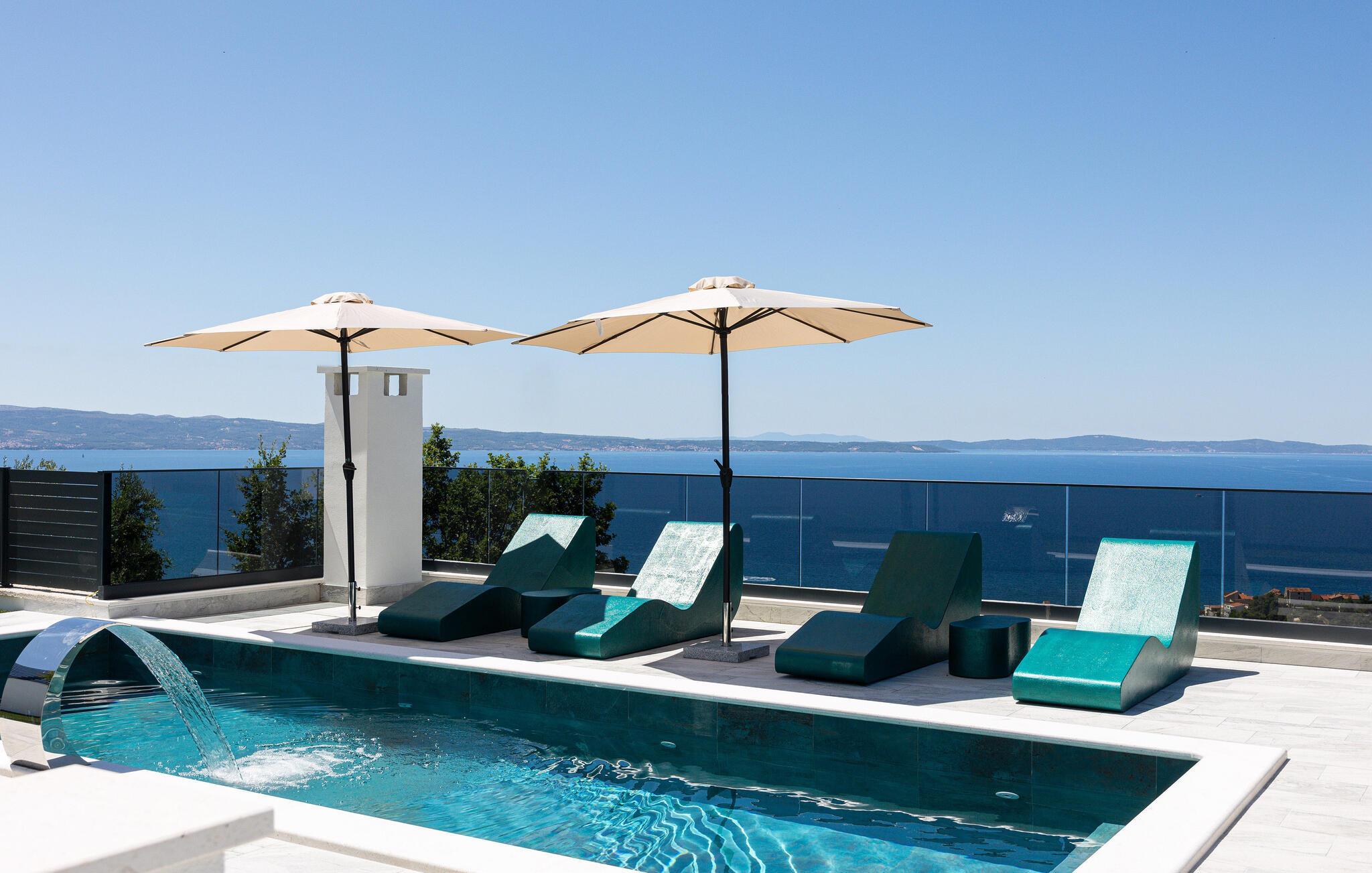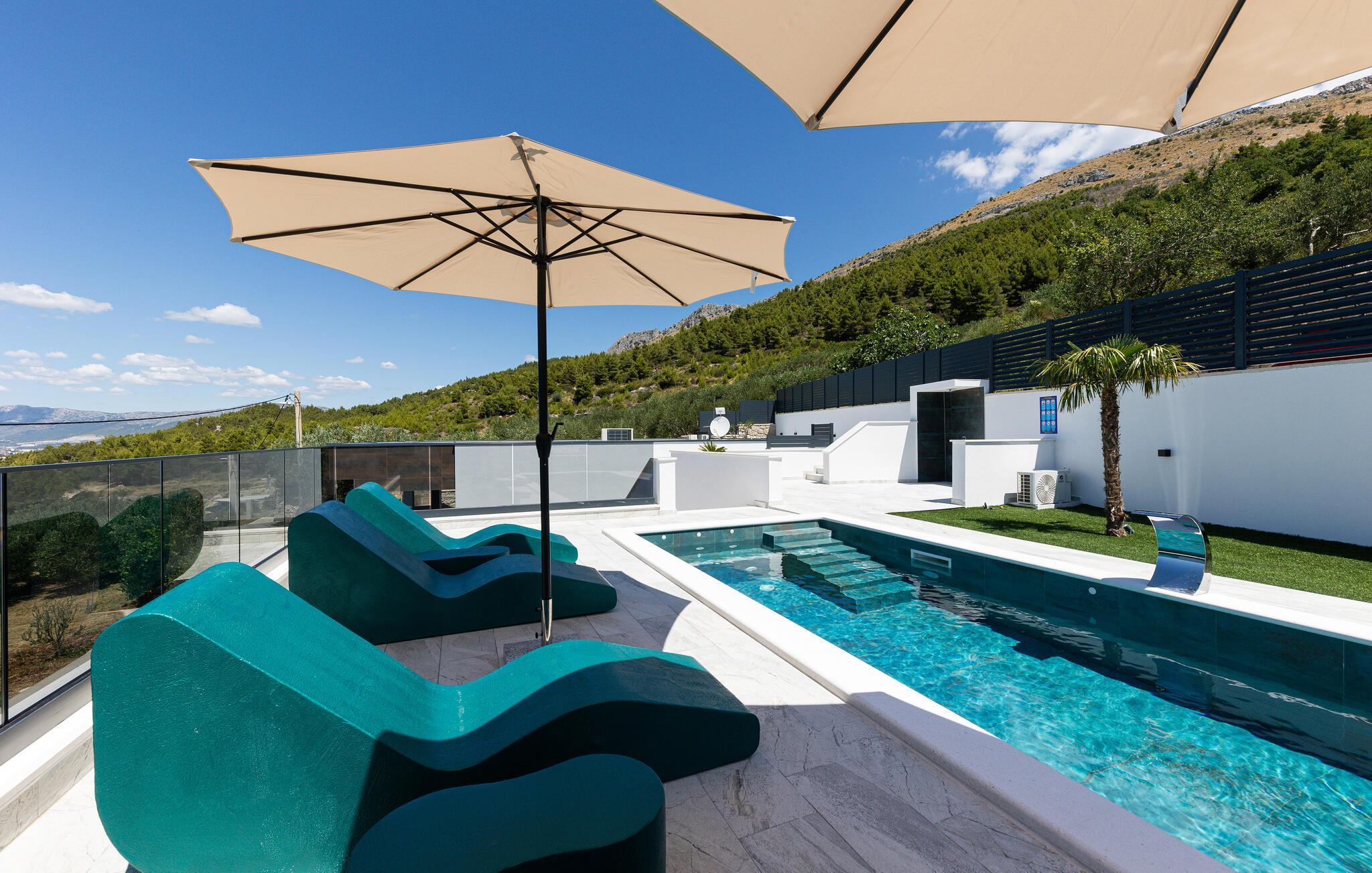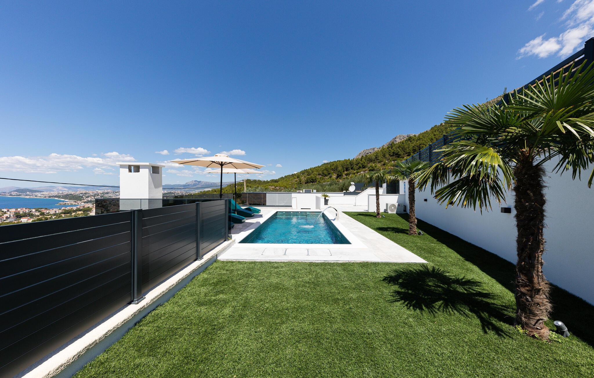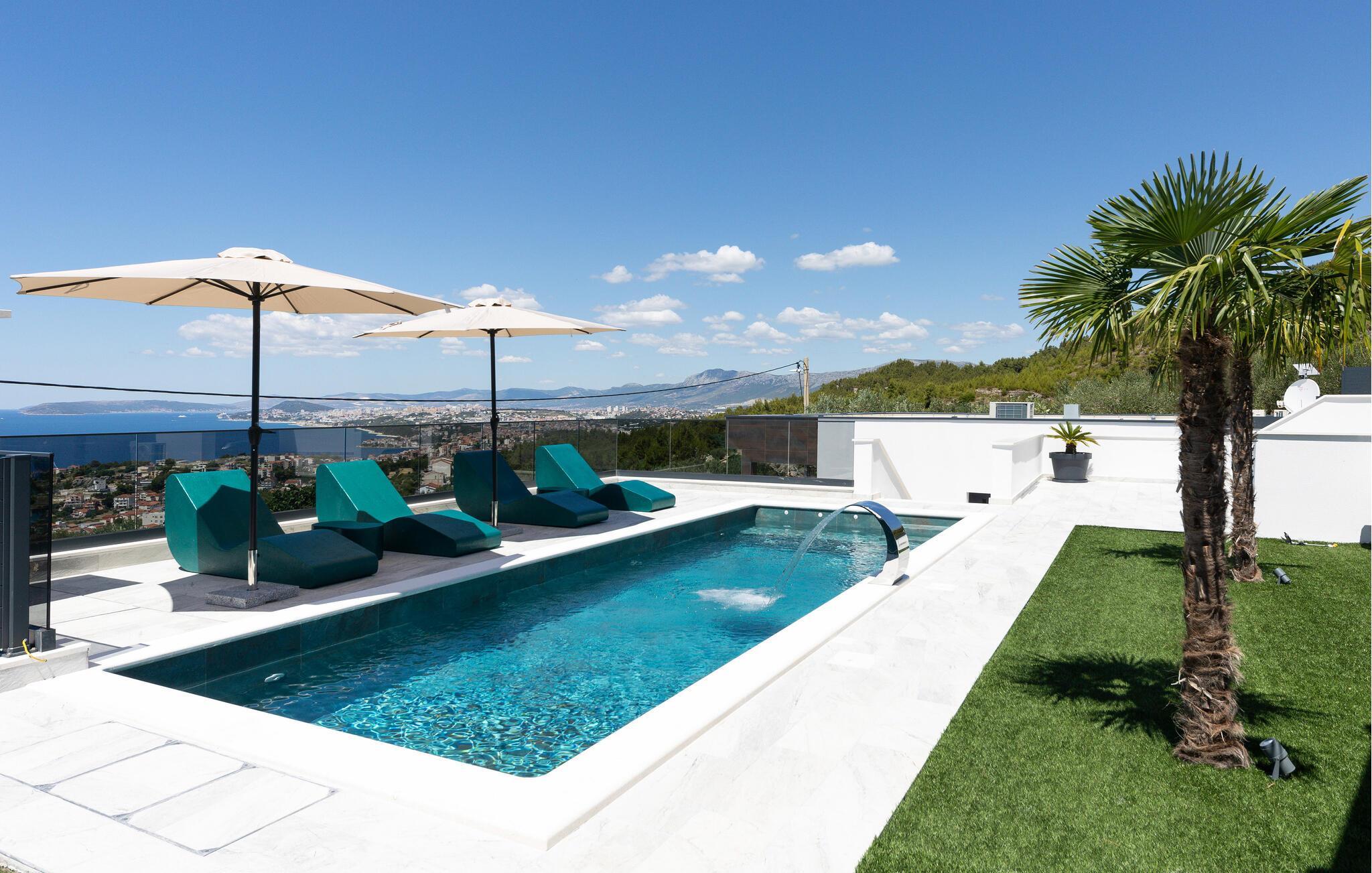 Forkæl jer selv med en drømmeferie i dette moderne feriehus med pool og havudsigt.