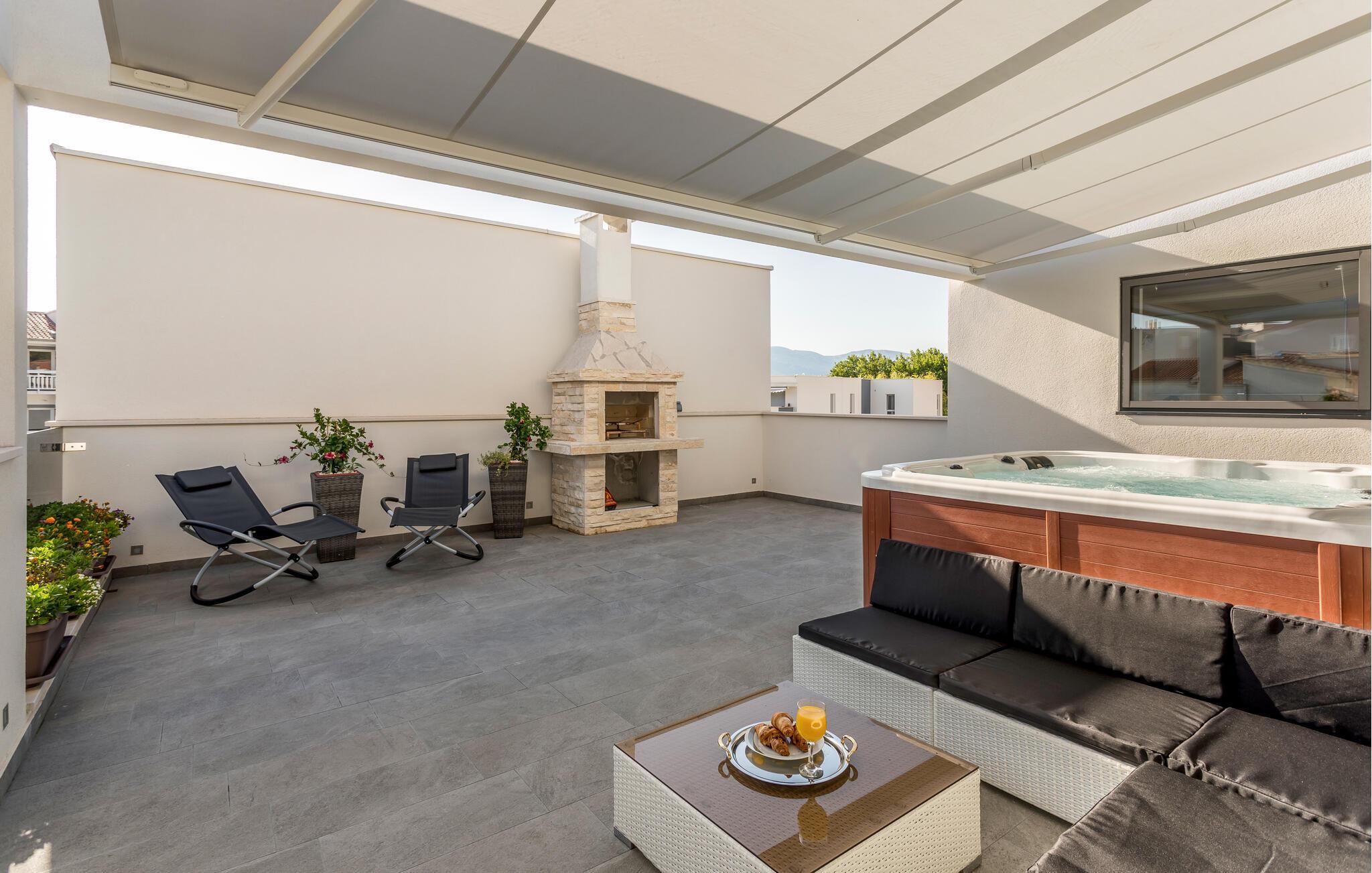 Forestil jer at vågne op i en luksuriøs lejlighed udstyret med alt hvad hjertet kan begære. Flere elegante soveværelser, et privat fitnesscenter og et afslappende spabad - alt sammen kun en kort gåtur fra den maleriske Strozanac-strand. Her kombineres stilfuld indretning og moderne design for at skabe et harmonisk ferieområde. Den rummelige terrasse giver jer de perfekte rammer til fuldt ud at nyde Middelhavets sol og grillaftener.