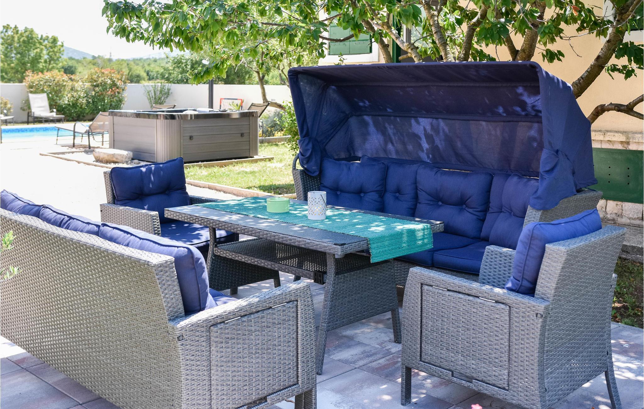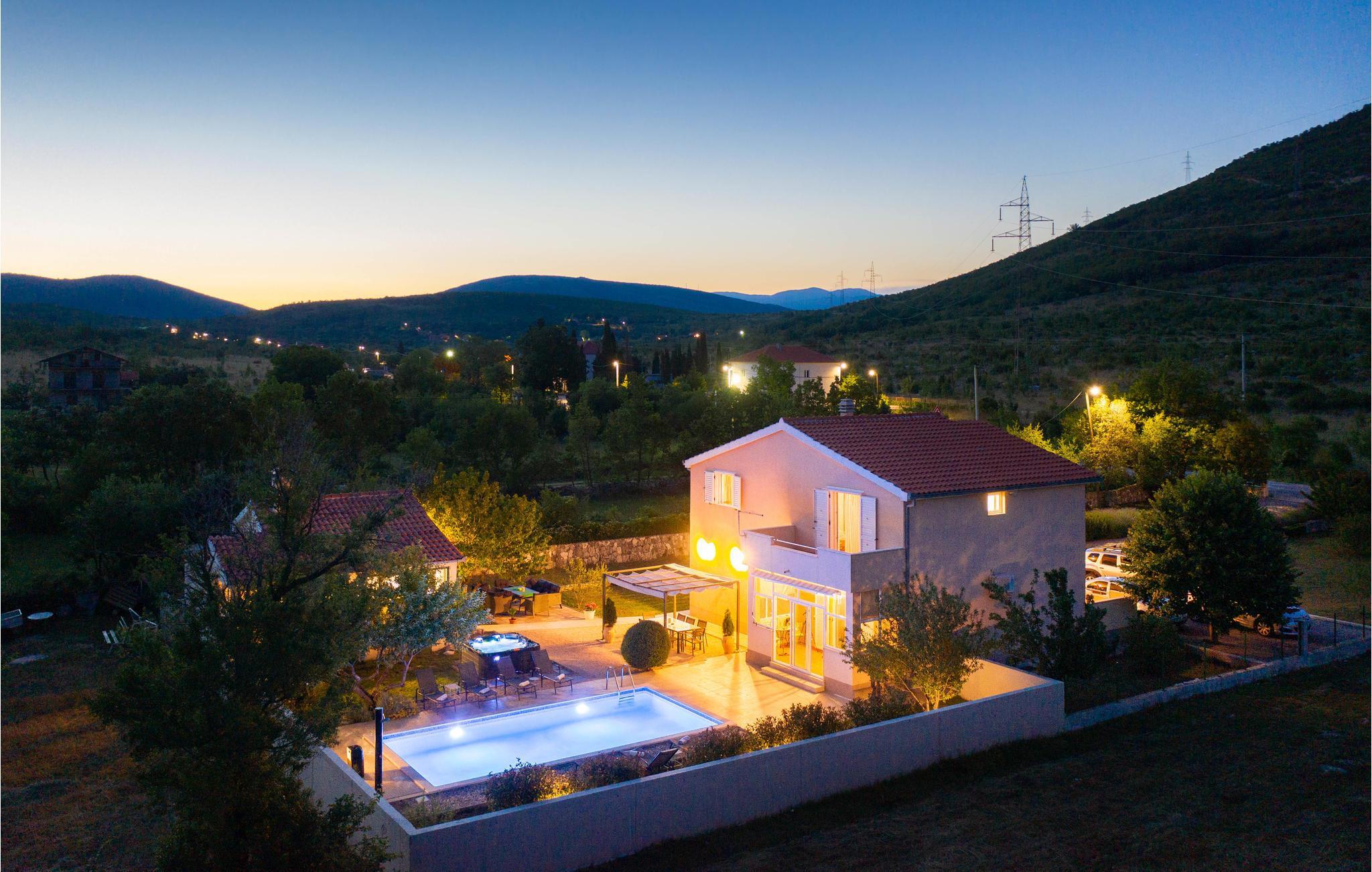Dette skønne feriehus med pool ligger på en rummelig grund i en forstad til Split. Ud over feriehuset er der en lille sidebygning, der er bygget som en konoba i typisk dalmatisk stil. Huset er indrettet pænt og enkelt perfekt til en afslappet ferie. I stueplan er der opholdsområde med et legeværelse, mens soveværelserne ligger på øverste etage. Fra stuen går I direkte ud på terrassen og til poolen. Dette feriehus er velegnet til alle, der vil holde en afslappet familieferie langt væk fra storbyens hektiske liv.