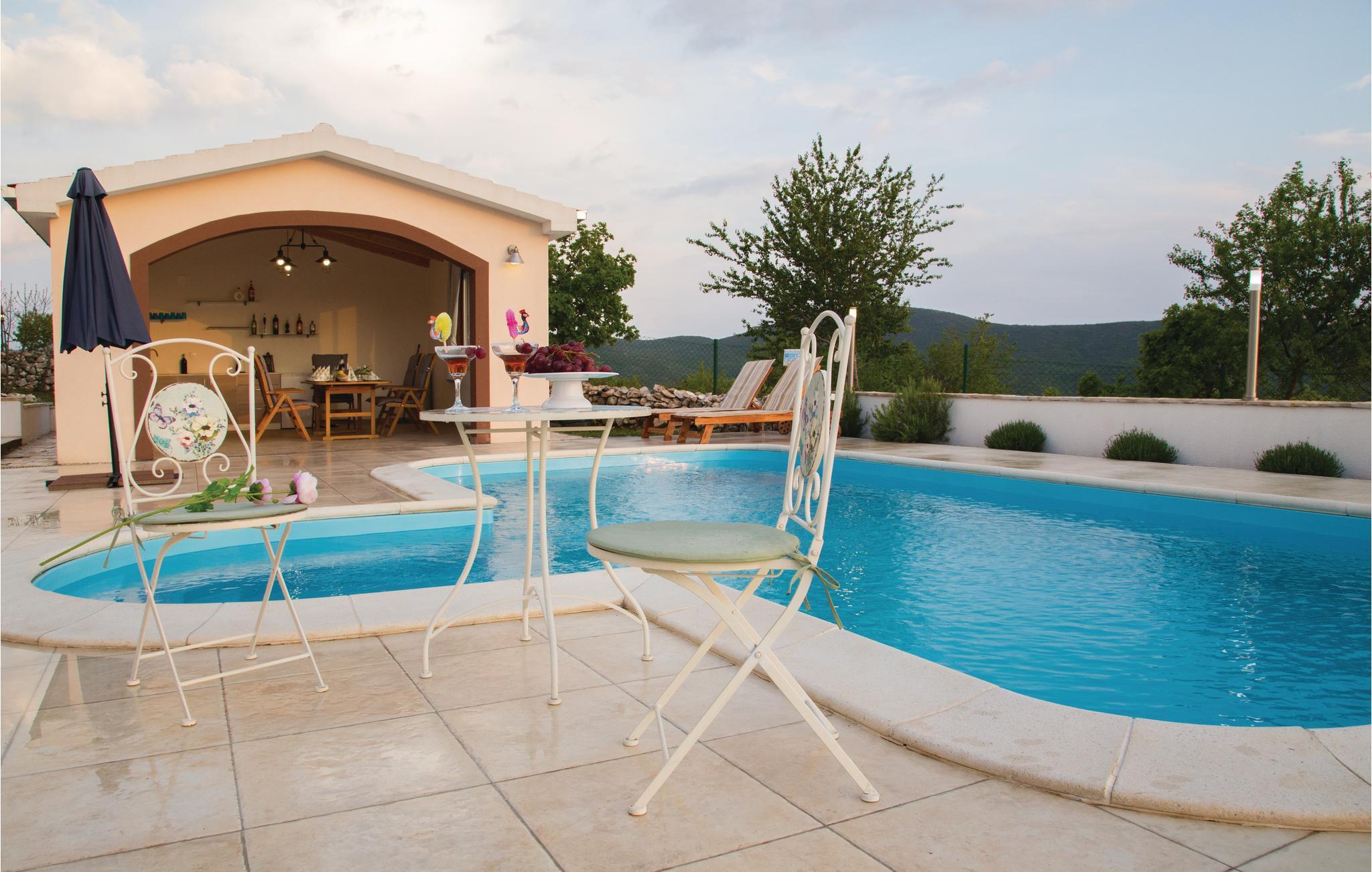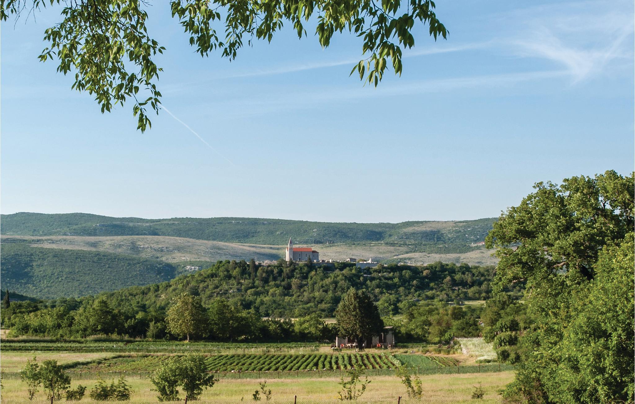 Dette harmonisk indrettede feriehus ligger i en rolig by. Huset strækker sig over stueplan og første sal. Det er fint egnet til familier, grupper og par, der gerne vil holde en rolig ferie i uberørt natur. Slap af på den store terrasse, hvorfra der er en utrolig smuk udsigt ud over det omgivende landskab. I den skønne pool kan I svømme lige når I har lyst. Vil I svømme i havet, er der ca. 15 km til den nærmeste kiesstrand og Adriaterhavet. I nærheden kan I besøge friluftmuseet. Radosic og Kevina grotten. Besøg også den skønne by Trogir, hvor der venter dejlige oplevelser til afvekslende feriedage.