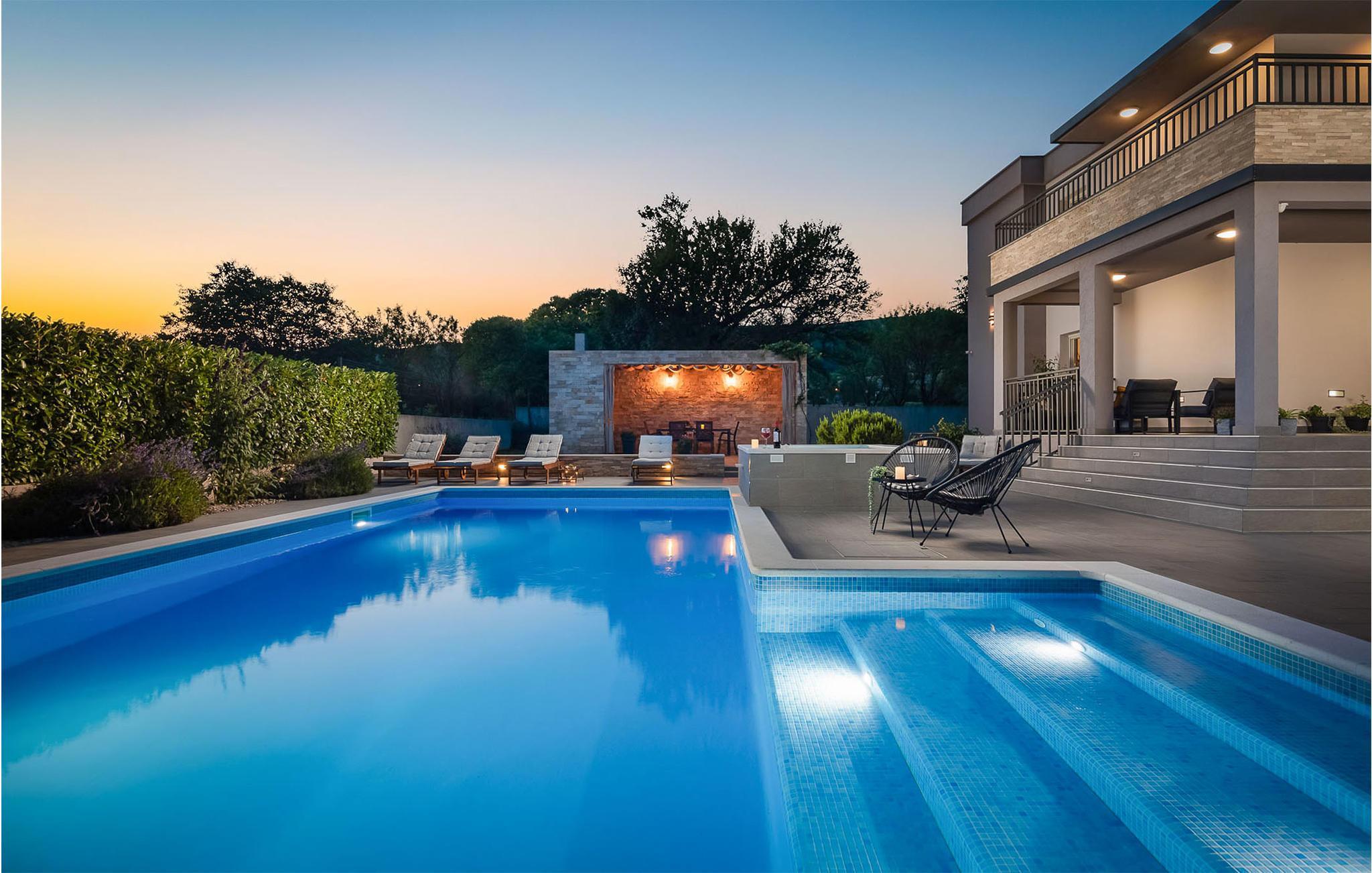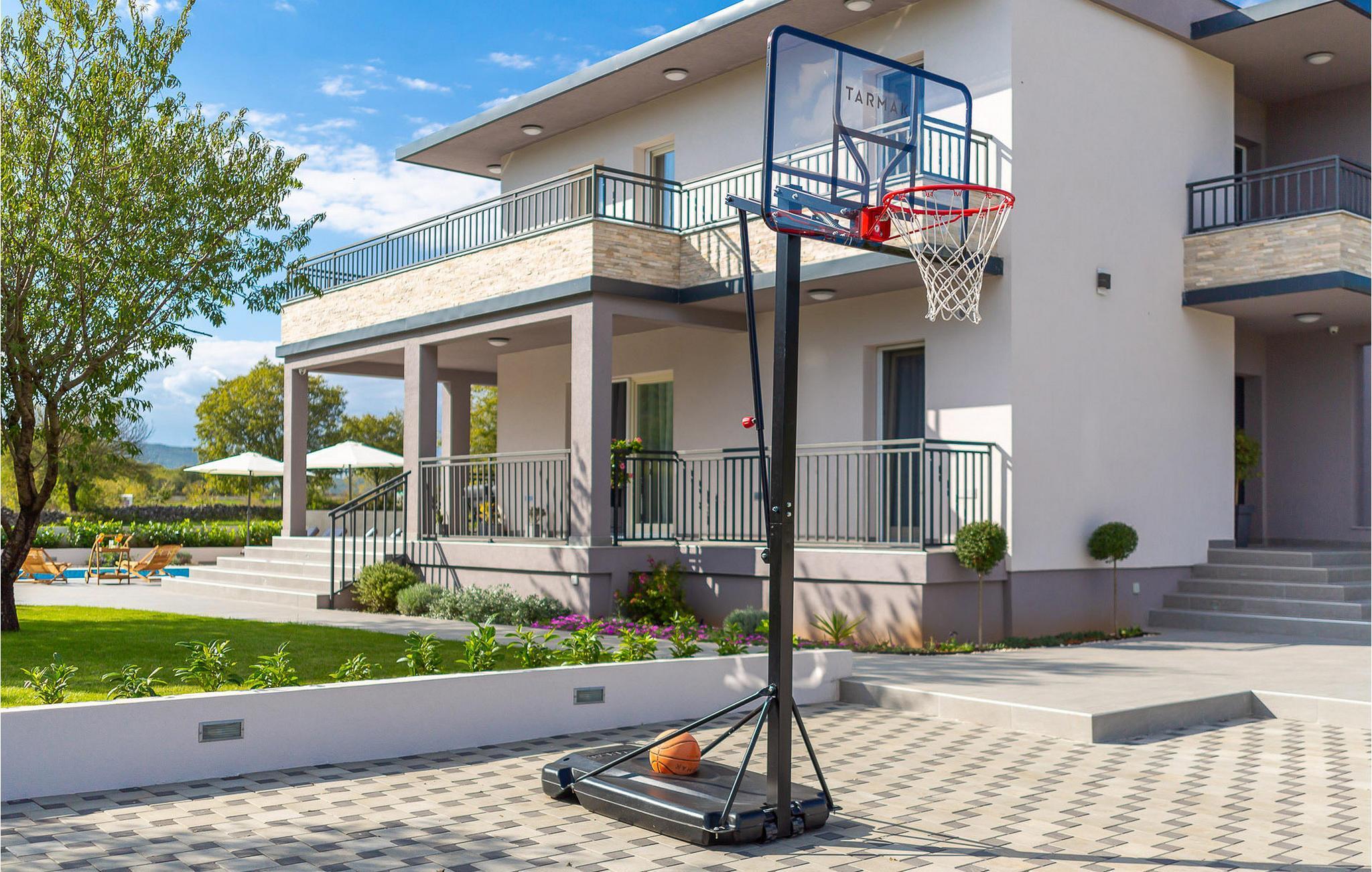 Nyd en afslappende ferie i dette luksuriøse feriehus med pool i rolige omgivelser. Langt fra travlheden og omgivet af det smukke, grønne landskab lover den moderne Villa Dali afslapning for krop og sjæl. Det stilfuldt møblerede interiør byder jer velkommen med en hyggelig og varm atmosfære. Fremtryll kulinariske lækkerier i det fuldt udstyrede køkken, planlæg jeres aktiviteter over harmoniske måltider ved det behageligt oplyste spisebord, og efter en begivenhedsrig dag kan I streame en spændende serie eller spille PlayStation 4, Xbox One eller Nintendo Switch. Det elegante udendørsområde har en stor pool og et spabad, hvor I kan nyde privatlivet under åben himmel på lune sommeraftener. Hold jer i form med volleyball, badminton eller basketballkurv, og fejr jeres tid sammen med stemningsfulde grillfester i det overdækkede sommerkøkken. Udforsk den livlige, historiske gamle bydel i Split med det imponerende Diocletians Palads, tag en bådtur til øerne Brac eller Hvar, nyd det krystalklare vand og slap af på idylliske strande. Vandre gennem Marjan Naturpark og bliv fortryllet af den storslåede udsigt over Adriaterhavet. Prøv regionale specialiteter i hyggelige taverner, slentre gennem farverige markeder, og gå ikke glip af den UNESCO-beskyttede gamle bydel i Trogir.