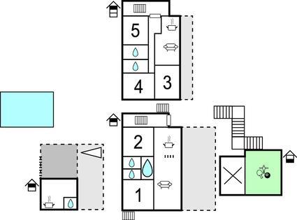 Badeværelse (nr. 3) - WC. Varmt og koldt vand. Bruser