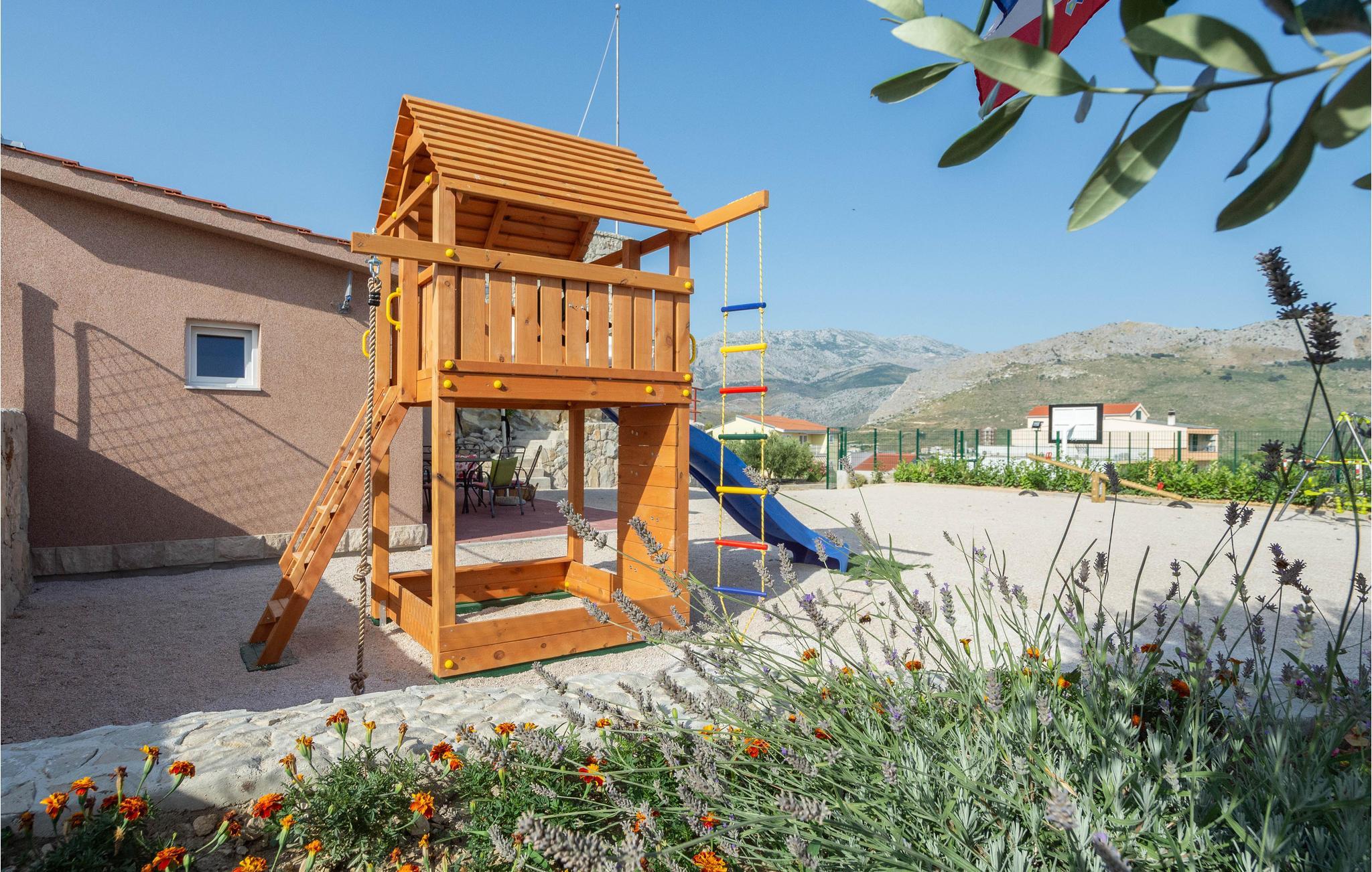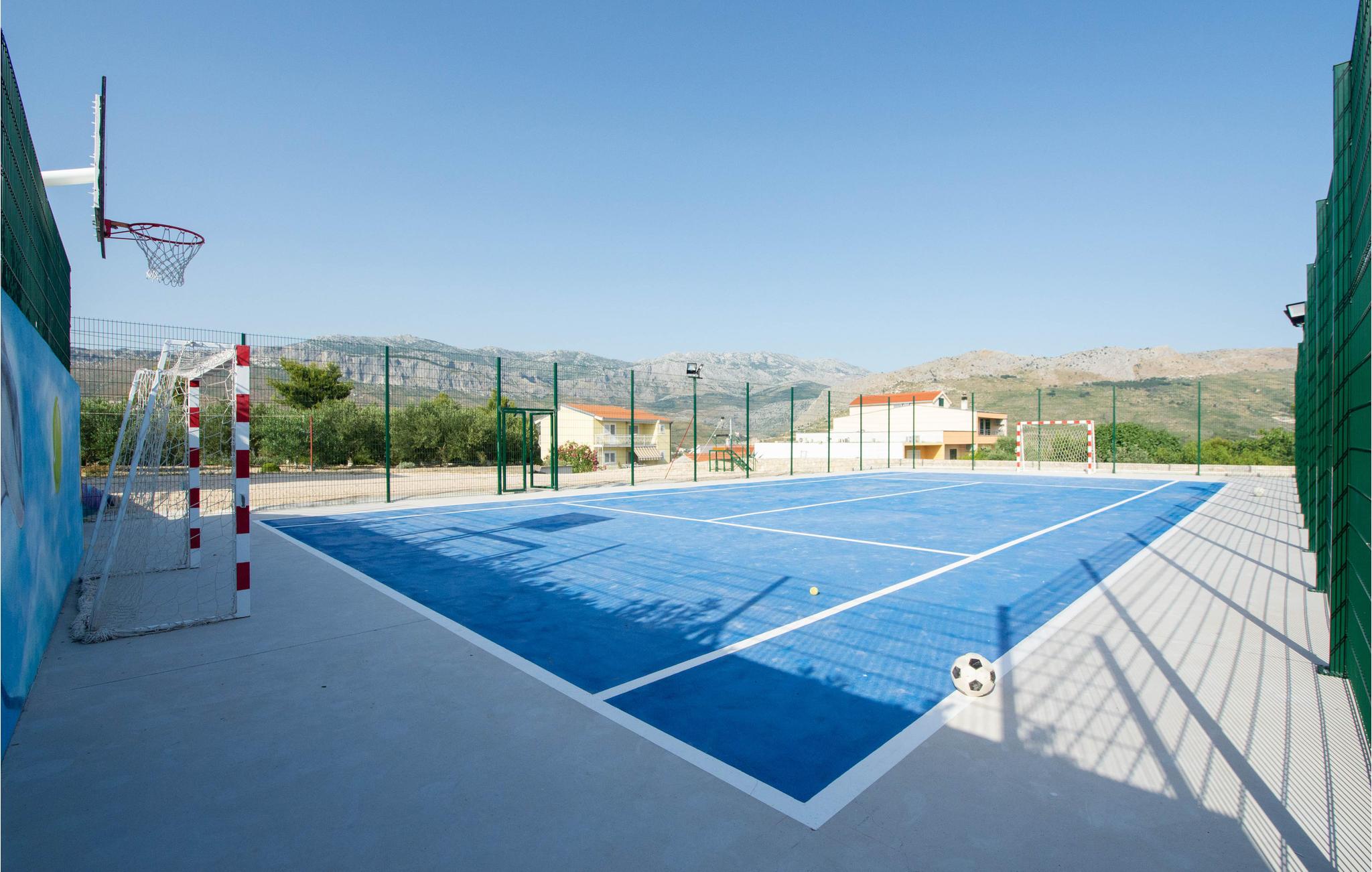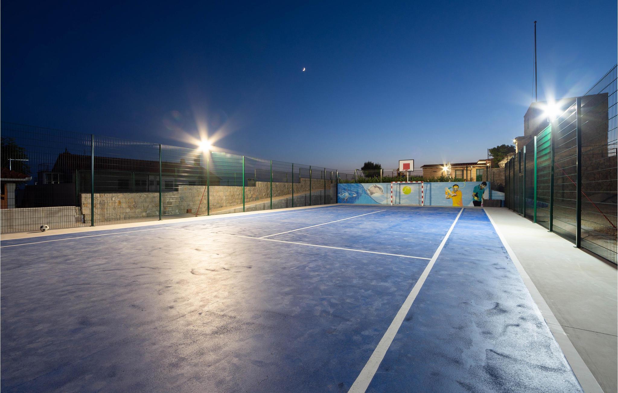 Grillen og havemøblerne er placeret ved poolen. For fans af sportsaktiviteter er der også en multifunktionel legeplads, hvor du kan spille tennis, fodbold eller basketball.