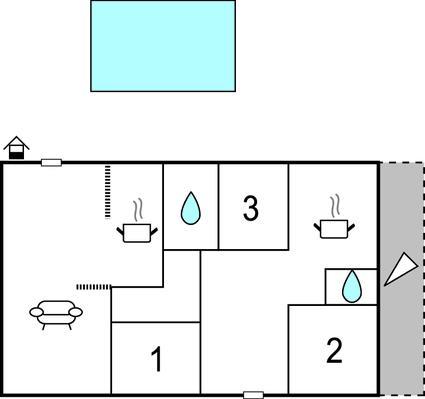 Opholdsstue/køkken - 2 Sovepladser. (Sofa, madras eller lignende).