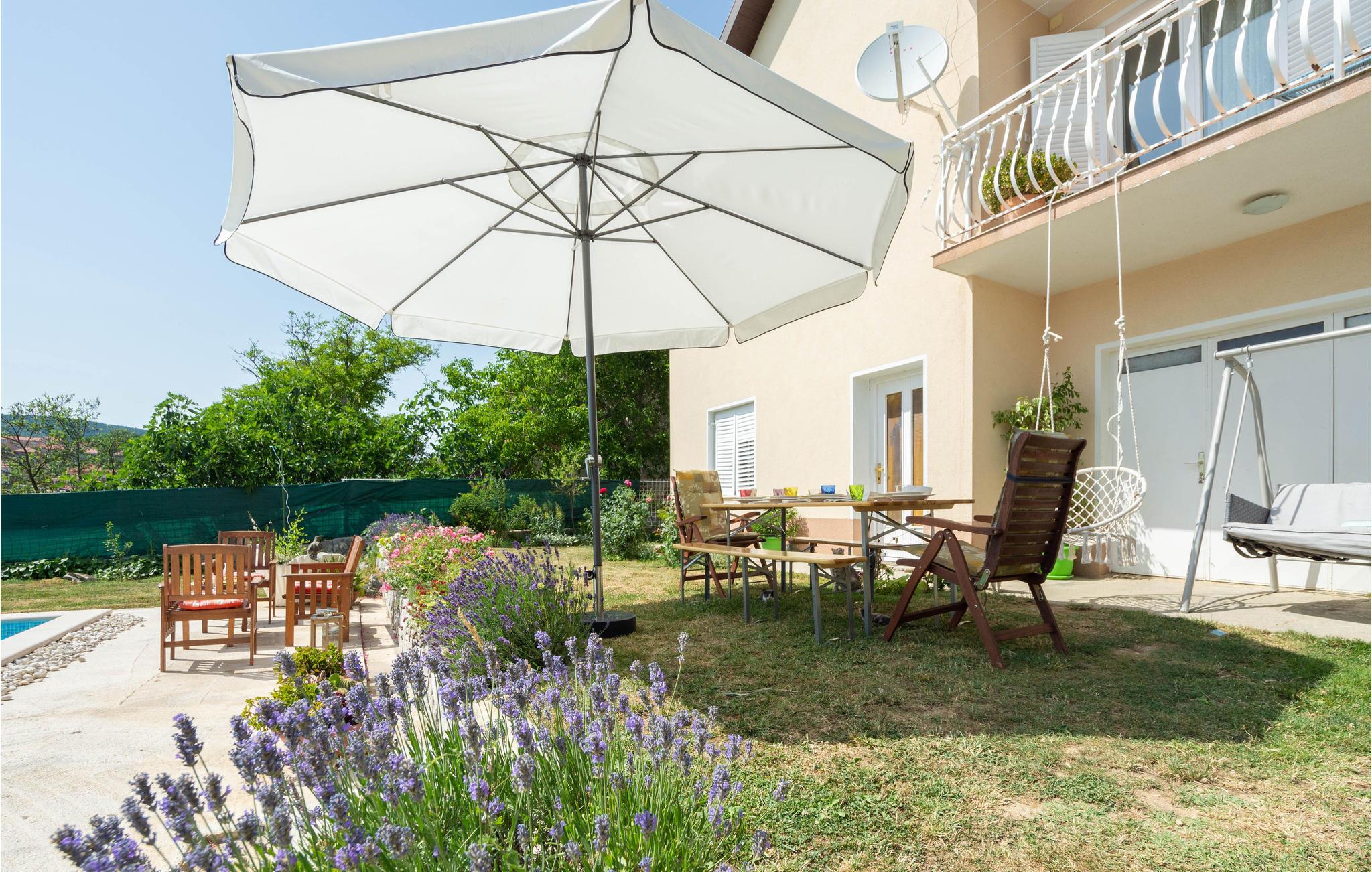 Dette domicil har et hyggeligt interiør, udstyret med alt, hvad I behøver til en ferie i Kroatien. Udendørs har I adgang til en altan, hvor I kan fange solens første stråler, en terrasse med liggestole og en pool til at slappe af.