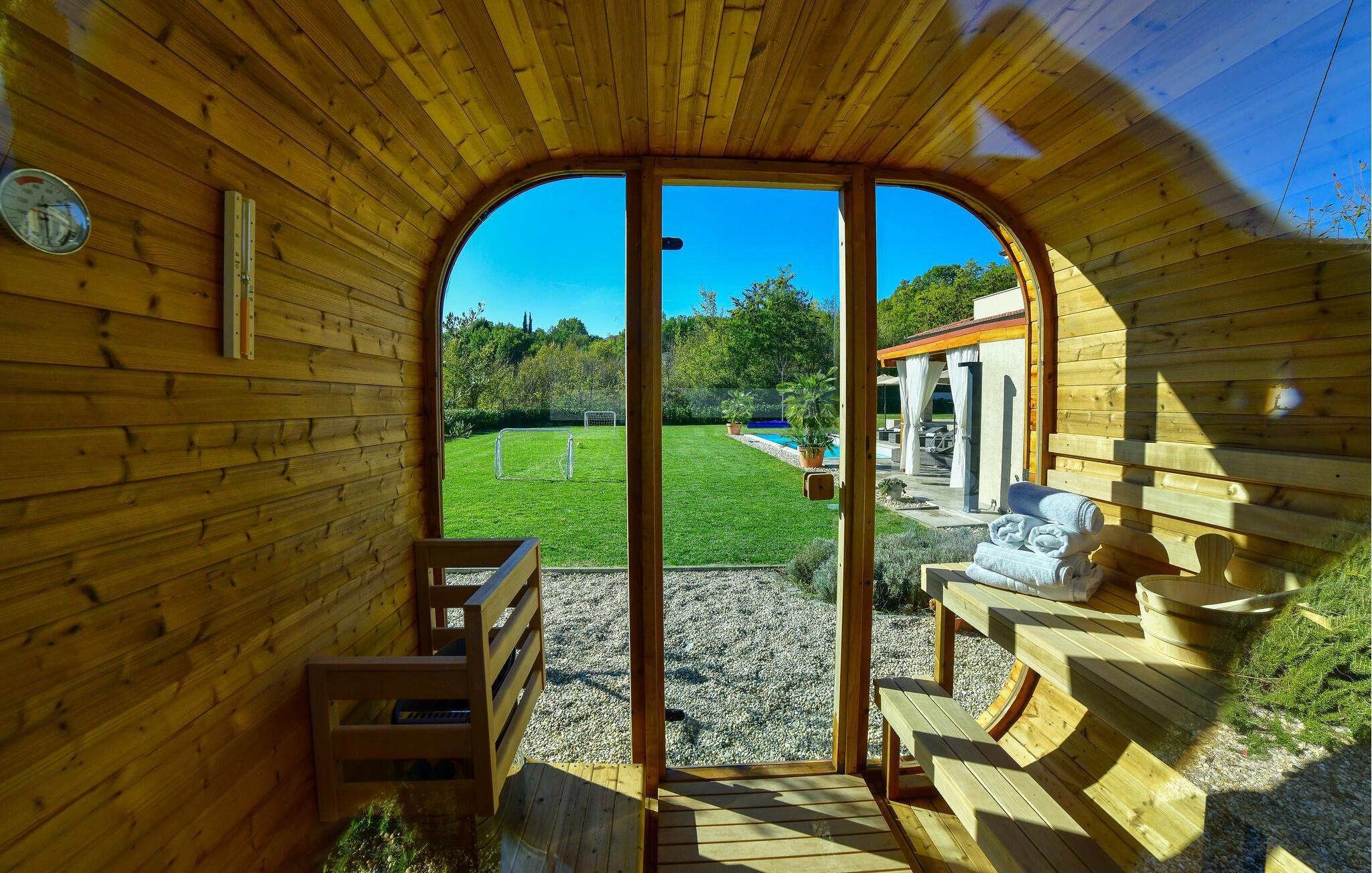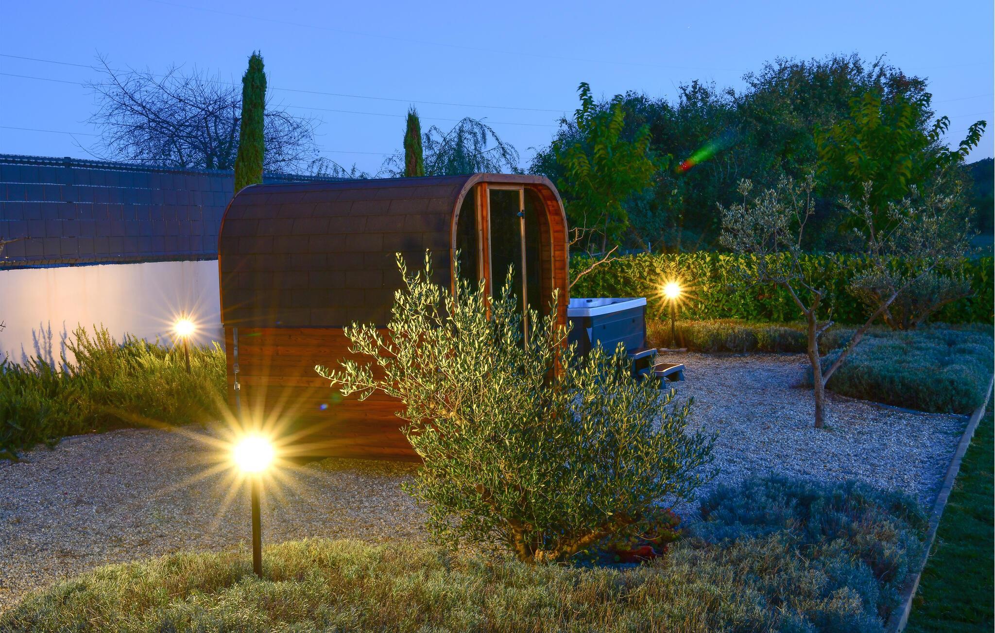 Begynd dagene med en afslappet svømmetur i den opvarmede pool og nyd den fredelige atmosfære på de komfortable liggestole. Forkæl jer selv med afslappende øjeblikke i saunaen eller spabadet, mens andre hygger sig på fodboldbanen, basketballkurven eller bordtennisbordet. Udfordr hinanden ved bordfodboldbordet eller et spil billard, og forbedre jeres grillretter med duftende urter fra den idylliske have med dens oliventræer og cypresser.