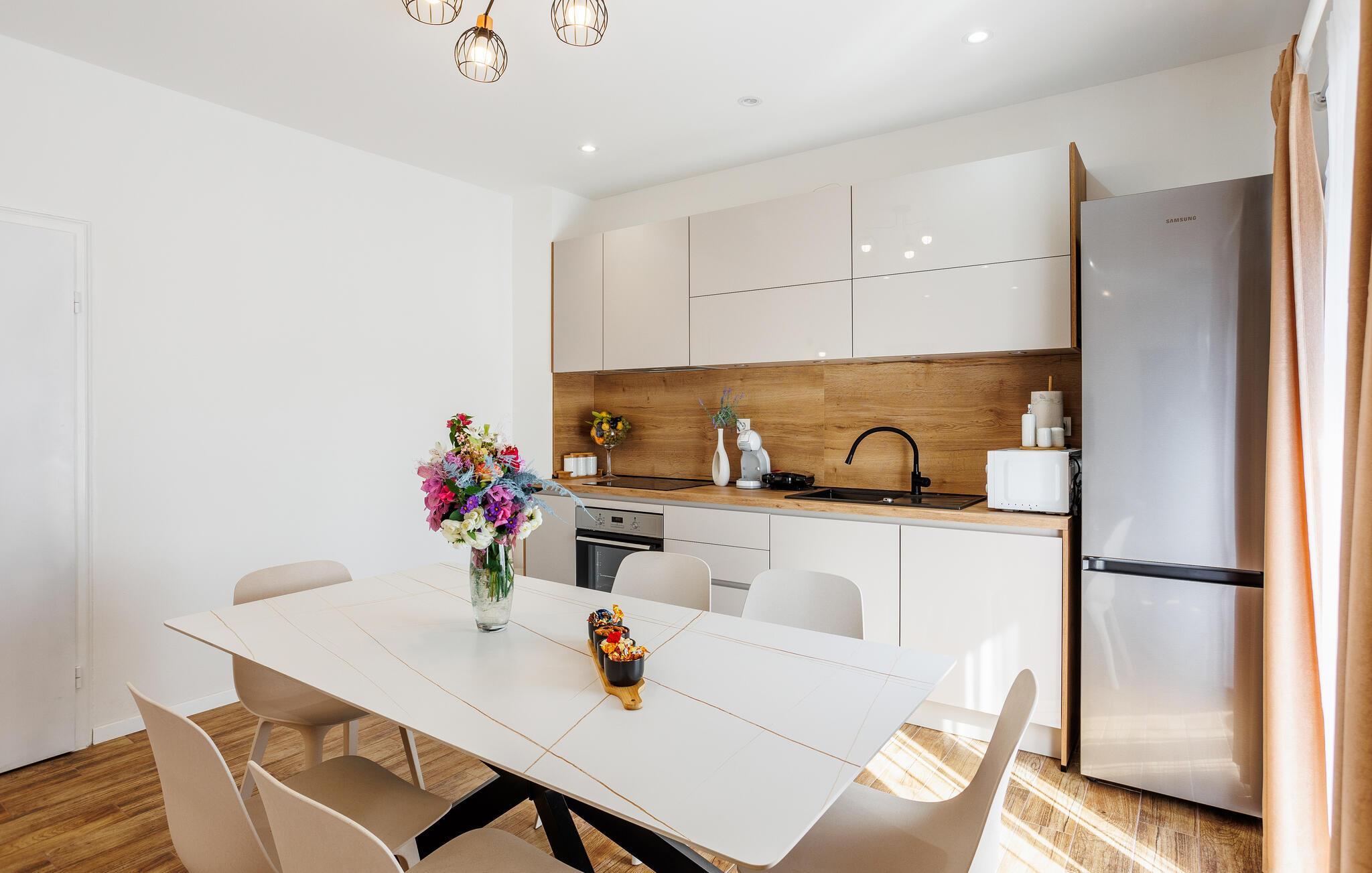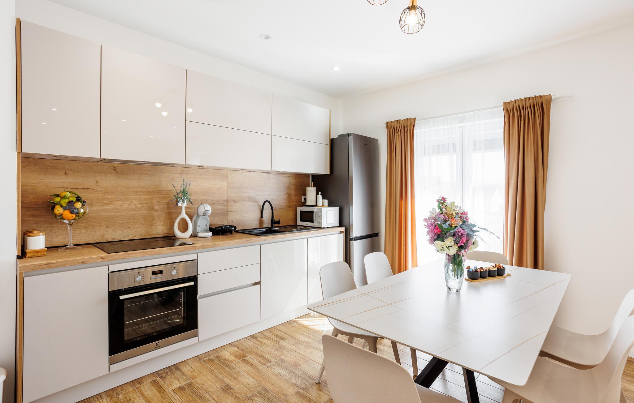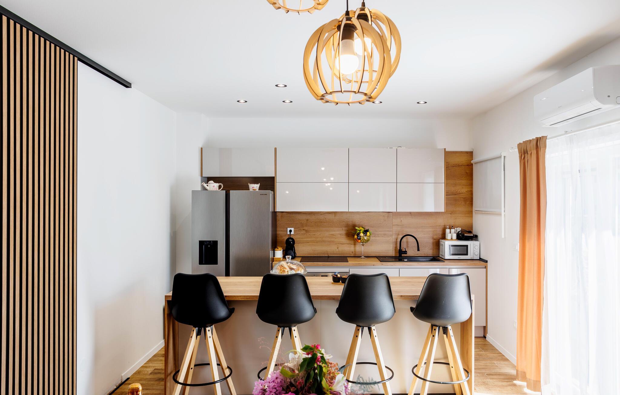 Dette rummelige og smagfulde hjem vil forkæle jer med moderne design, en lys og hyggelig atmosfære samt talrige ekstraudstyr, som I kan nyde med venner eller familie. Lav mad sammen i det moderne køkken, tilbring hyggelige aftener ved det store spisebord, træn i fitnessrummet eller slå jer ned i de komfortable sofaer og stream jeres yndlingsfilm.