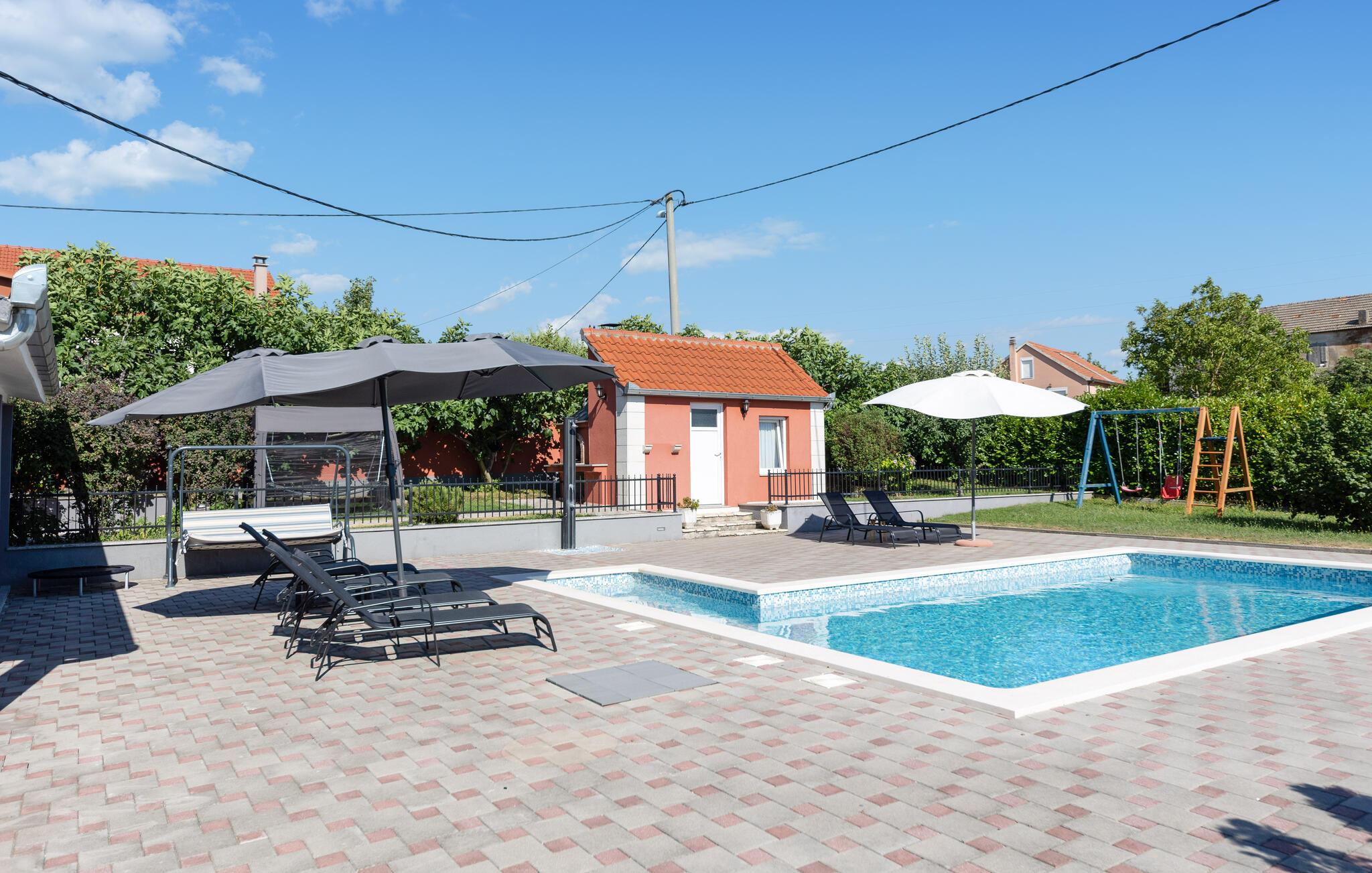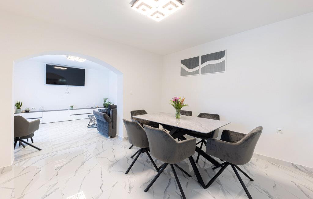 I jeres moderne ferielejlighed i Citluk, nær Sinj, kan I nyde solspændende dage ved den private pool med jeres familie. Slap af på liggestolene eller på havens gynge, og lad naturens ro virke magi på jer. Begynd jeres dage med en afslappet morgenmad på den overdækkede terrasse og nyd den friske luft. Den stilfulde udendørs lounge lægger op til at nyde livet og have det rart, mens interiøret også har en lys og ubekymret atmosfære.