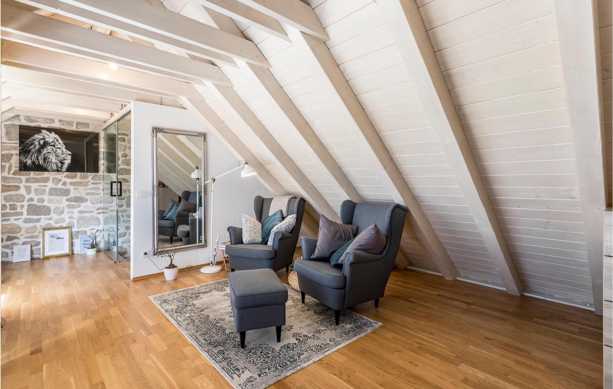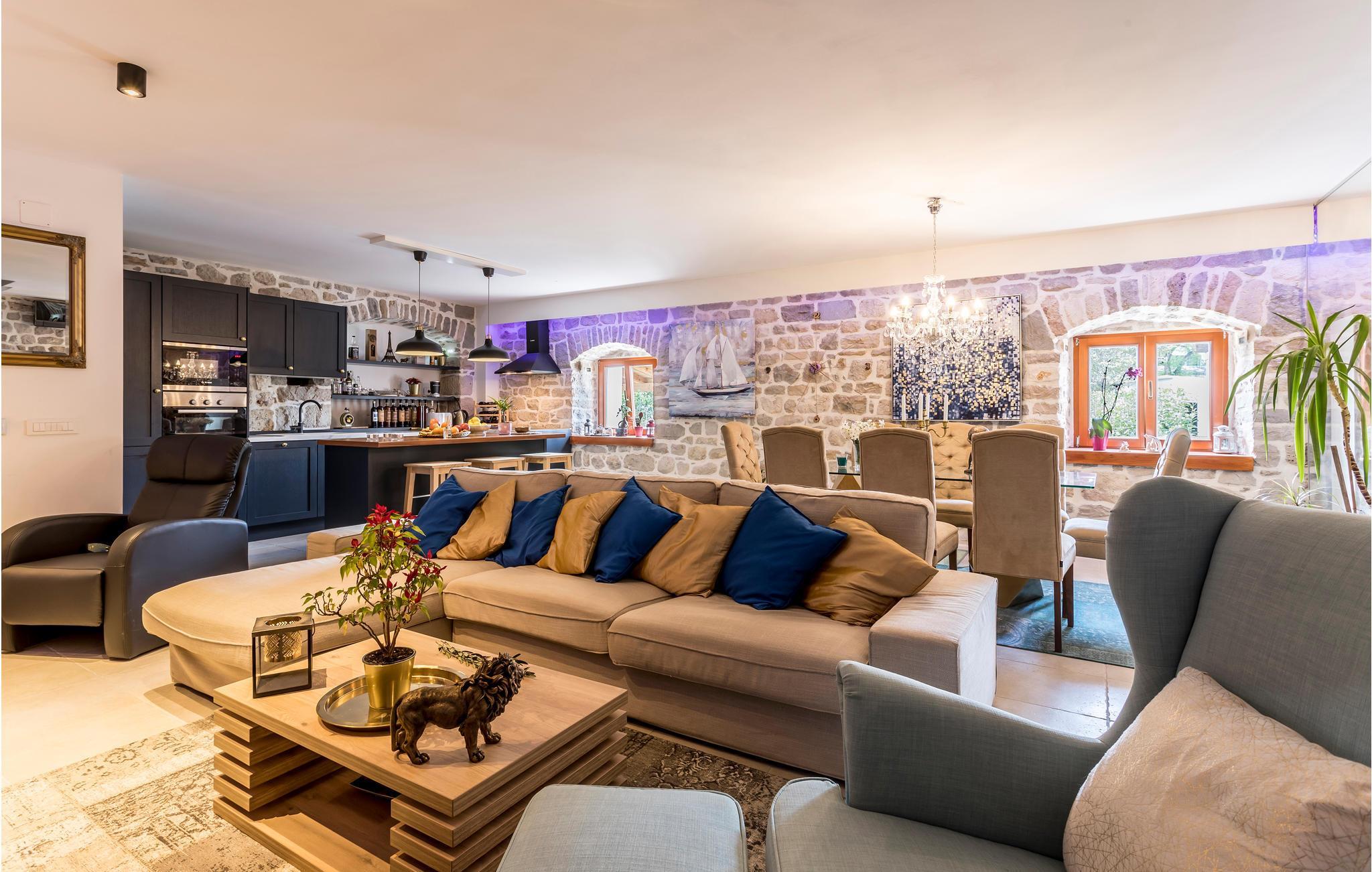Velkommen til dette luksushus i sten - det perfekte stede at tilbringe en skøn og totalt afslappende ferie. Her kan I virkelig gå ned i gear og tilbringe en masse kvalitetstid sammen. Glæd jer til at plaske rundt i den majestætiske pool og ligge og nyde solen på liggestolene med en iskold forfriskning ved hånden. Ønsker I lidt afveksling fra poolen, ligger den nærmeste stenstrand kun 3,5 km fra huset, hvor I kan bade i Adriaterhavets glitrende vand. Trænger I til en pause fra den bagende kroatiske sol, er huset med sine store, rummelige og smagfuldt indrettede lokaler samt tre fjernsyn det perfekte sted at slappe af. Om aftenen kan I tage på restaurant elller blive hjemme og grille. Afslut dagen med at nyde et godt glas vin og de milde aftentemperaturer på en af husets terrasser.