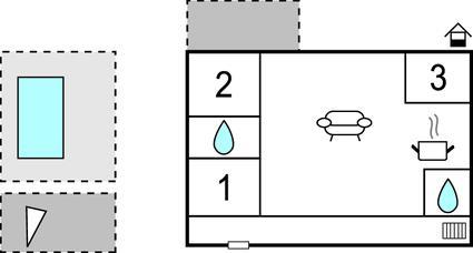 Opholdsstue/køkken - 1 Soveplads. (Sofa, madras eller lignende).