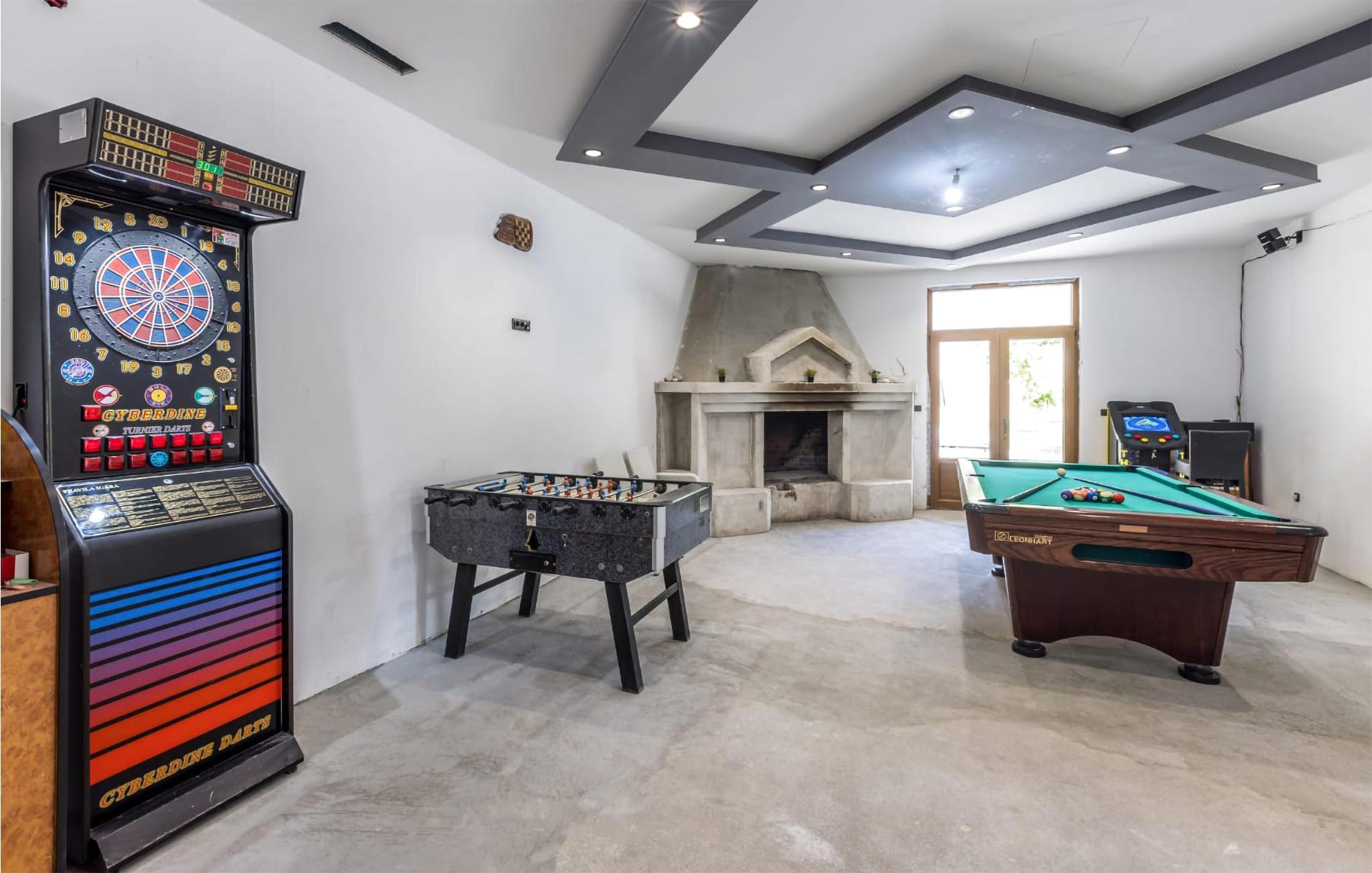 Denne rummelige bolig på en stor naturgrund venter på jer og jeres udvidede familie i en rolig beliggenhed. Flyt ind i det smagfuldt og komfortabelt indrettede hoved- og sidehus og nyd samværet samt privatlivets fred. Der tilbydes underholdning. Et aktivitetsrum med dart, bordfodbold, billard og spilleautomater er til rådighed for jer og jeres børn.