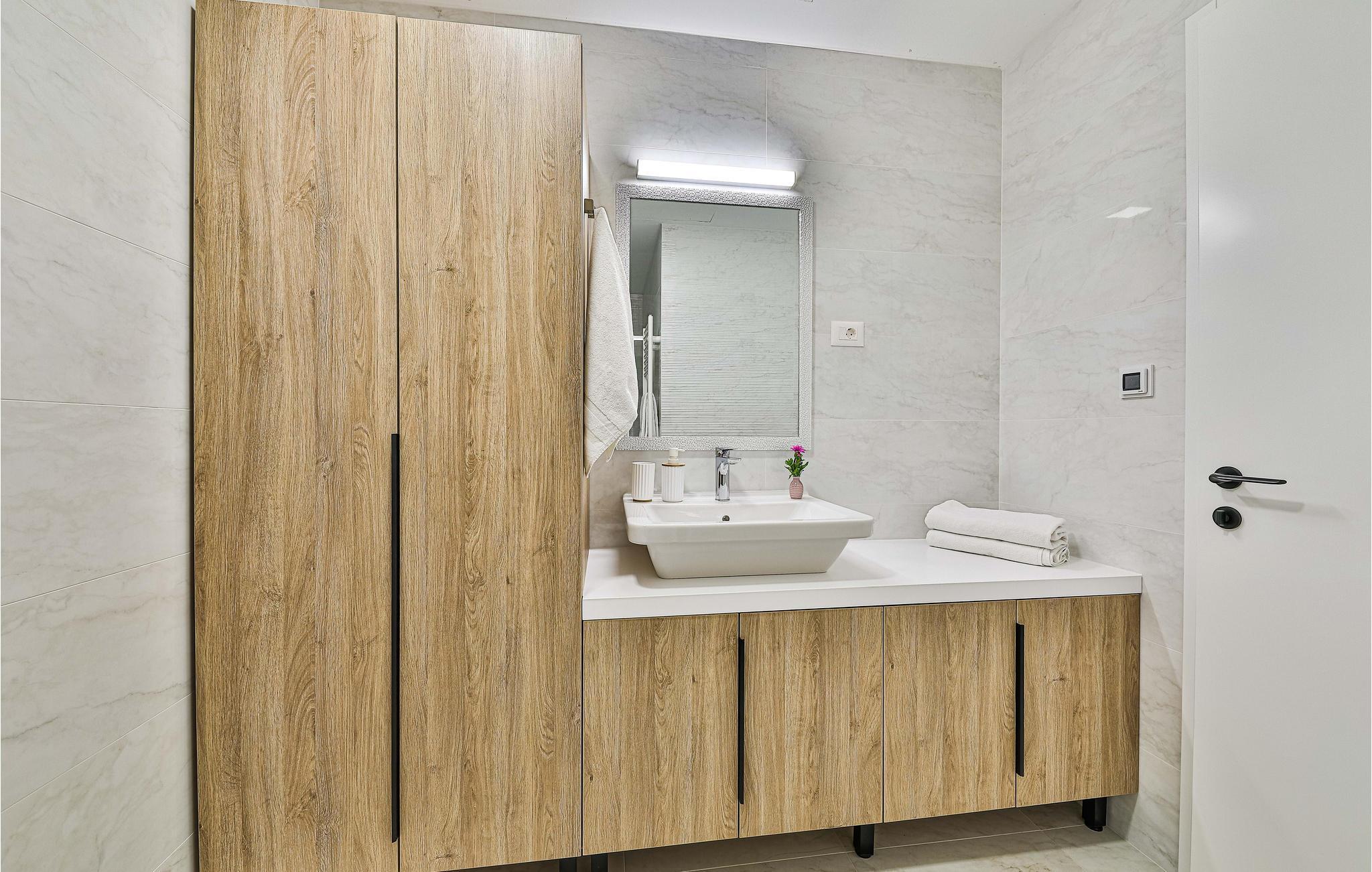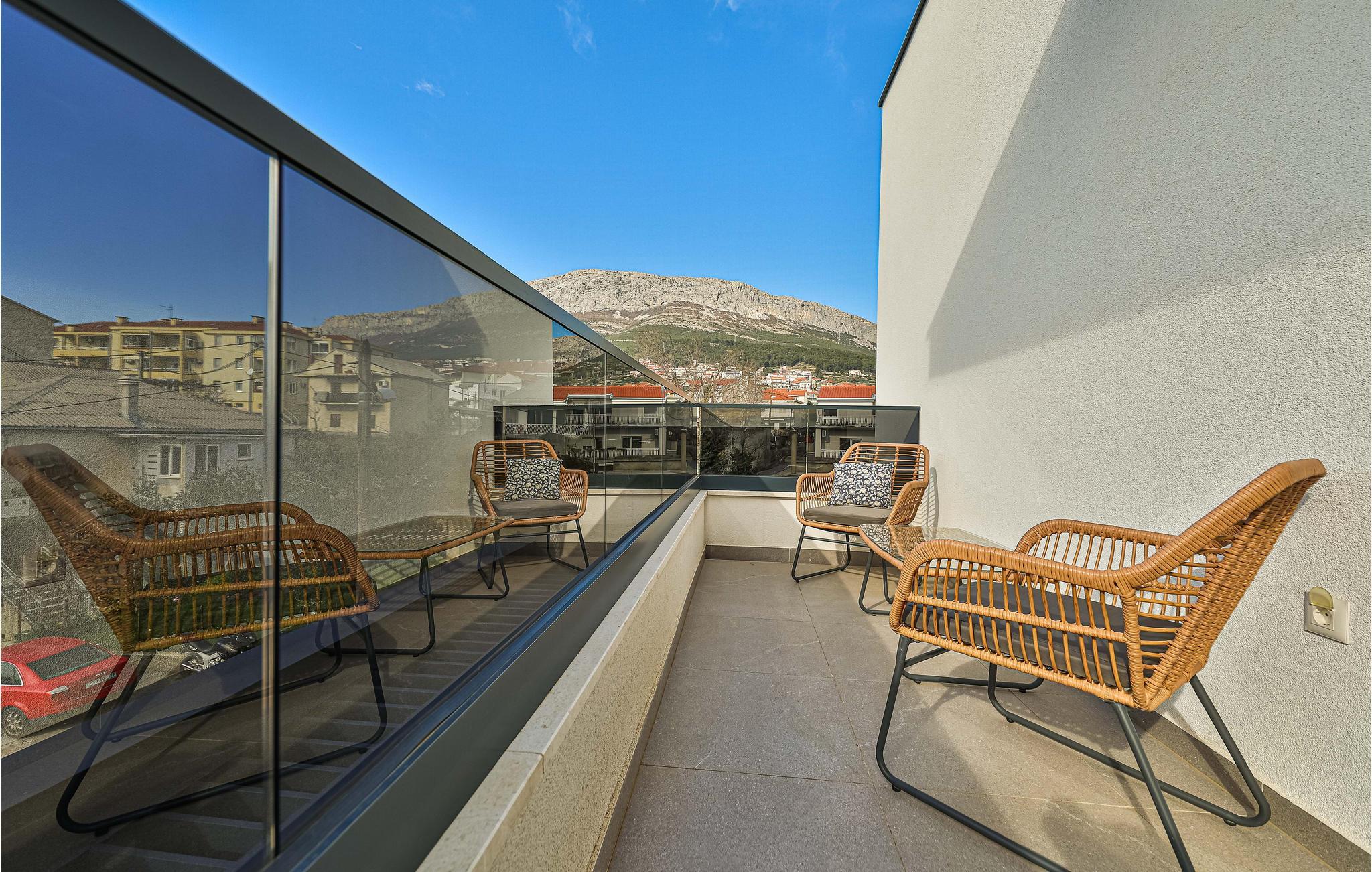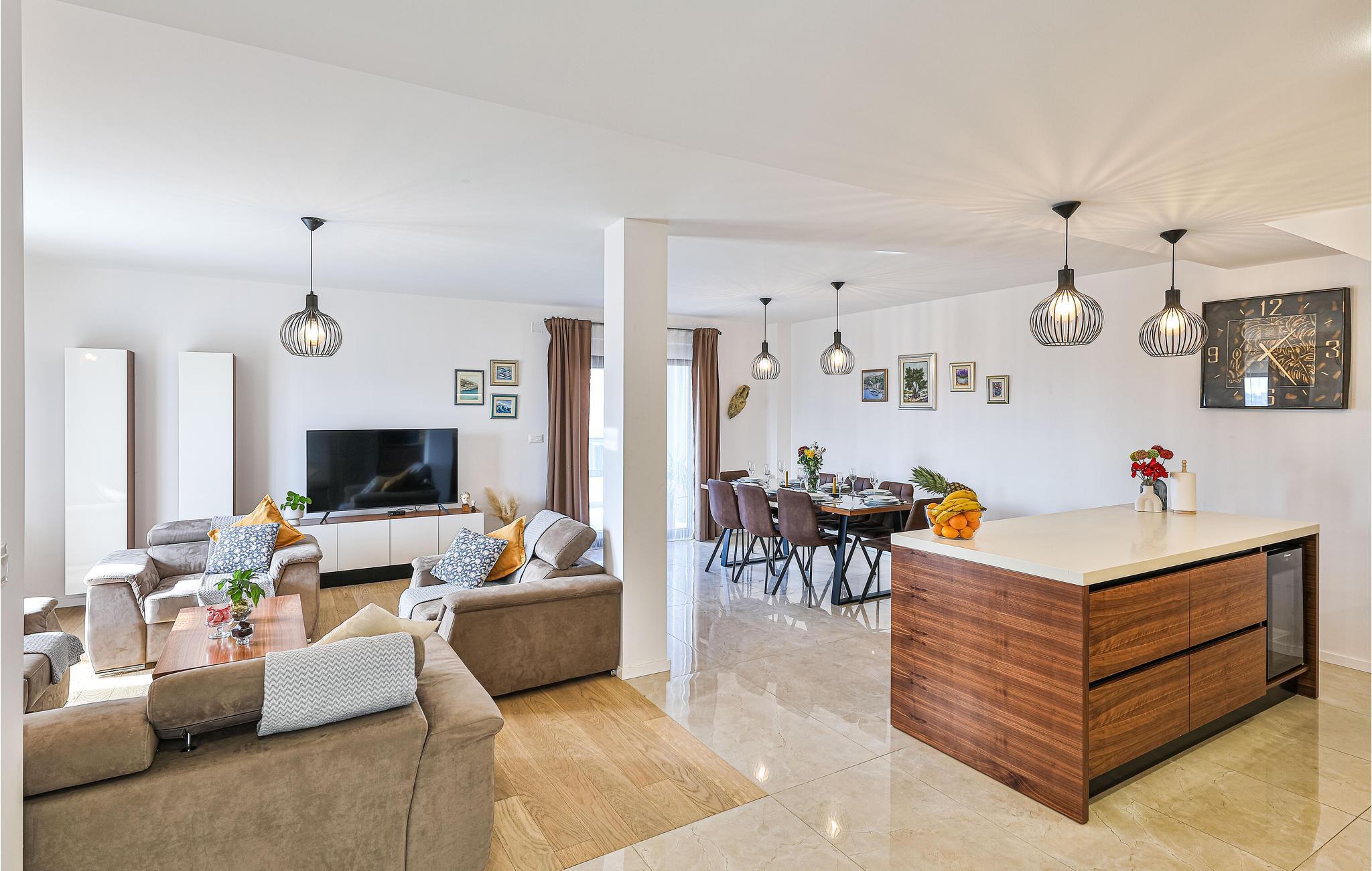 Dette komfortable og moderne feriehus med pool ligger i en forstad til Split. I kan sprede jer ud med familien eller venner på tre etager og nyde samværet og jeres privatliv. Hvert soveværelse har eget badeværelse, så I har jeres frihed, og der er aldrig trafikprop på badeværelset. I kan også nyde jeres private altan eller den store fælles altan og drikke dagens første kop kaffe her eller lave jeres daglige yogaøvelser. Den store altan indbyder også til at slappe af på loungemøblerne eller spise ved bordet. I kan nyde en fantastisk udsigt over landskabet. Møblerne af høj kvalitet og det tiltalende landskab i den åbne stue skaber også en skøn atmosfære.