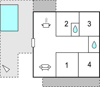 Opholdsstue/køkken - 2 Sovepladser. (Sofa, madras eller lignende).