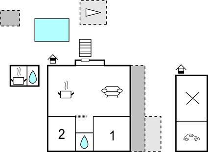 Opholdsstue/køkken - 2 Sovepladser. (Sofa, madras eller lignende).