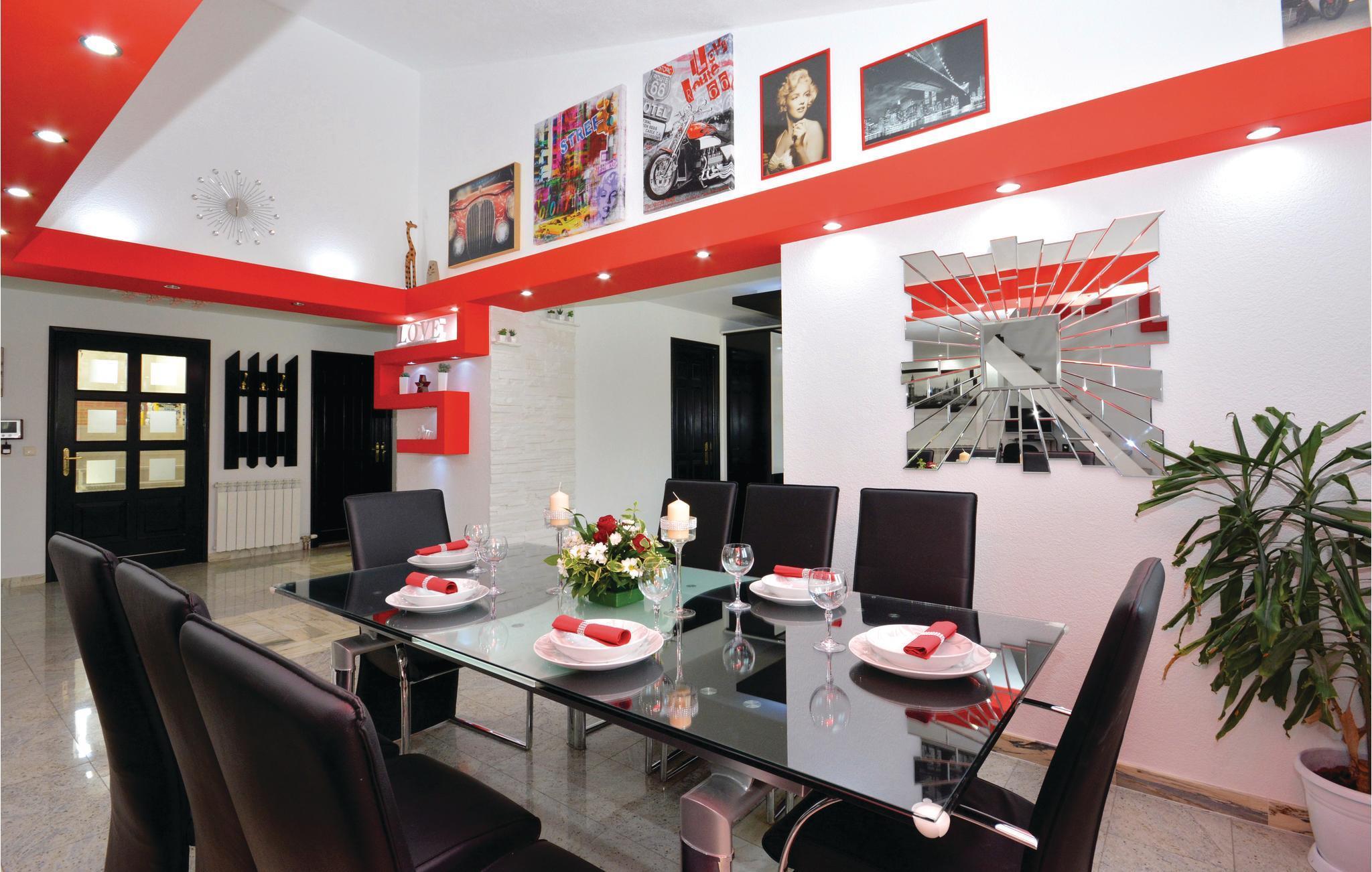 Dette rummelige og moderne indrettede feriehus ligger i den lille by Trilj, et kendt centrum af Cetina-regionen. Boligen består af syv soveværelser, der er ideelle til en ferie med flere familier eller grupper af venner. På første sal er der tre soveværelser, en stue og køkken, mens de fire soveværelser ligger i tagetagen, hvor den mindste lofthøjde er på ca. 150 cm. På grunden er der pool og overdækket terrasse, og i underetagen er der en konoba med pejs samt fitness- og fritidsrum. I dobbelthusets anden del er der en dagligvarebutik, og på den modsatte side af vejen er der en tankstation. For en aktiv ferie kan I tage på udflugter i Cetina-regionen med mange fritidsmuligheder som ridning, rafting og at fiske.