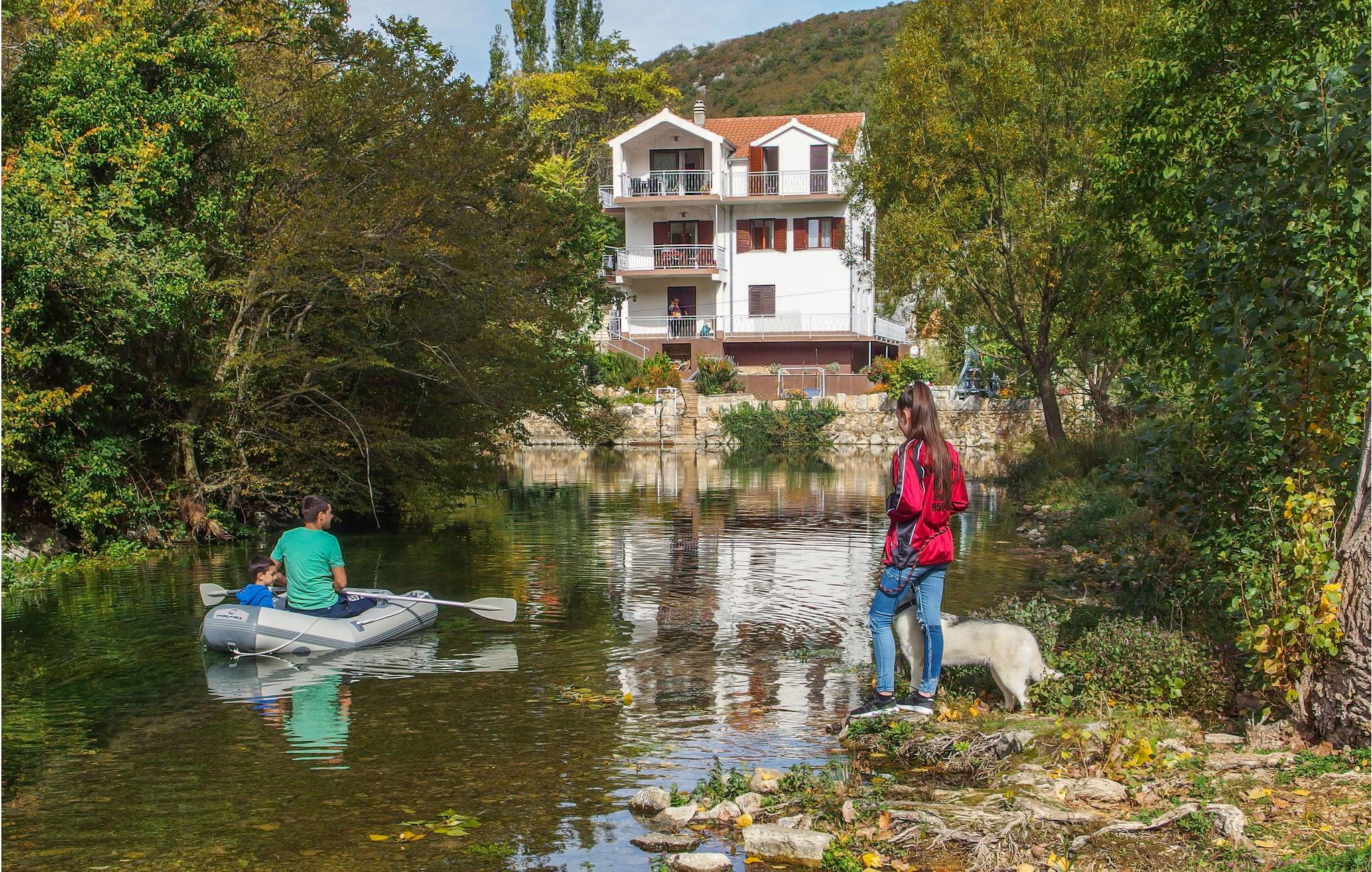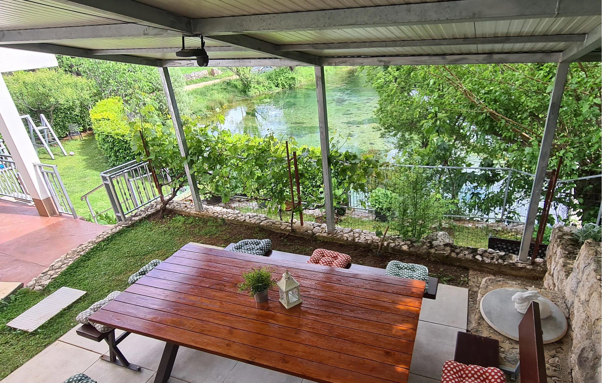 Fra terrassen kan I nyde udsigten over det maleriske landskab, floden og skoven. Lyt til fuglenes kvidren og spot vildænder på floden med de små vandfald. Der er gode, afmærkede cykel- og vandrestier i nærheden, foran huset gennem Sinjsko Polje og bag huset op ad Kamešnica-bjerget, samt en mølle, hvor man kan se den gamle måde at lave mel på.