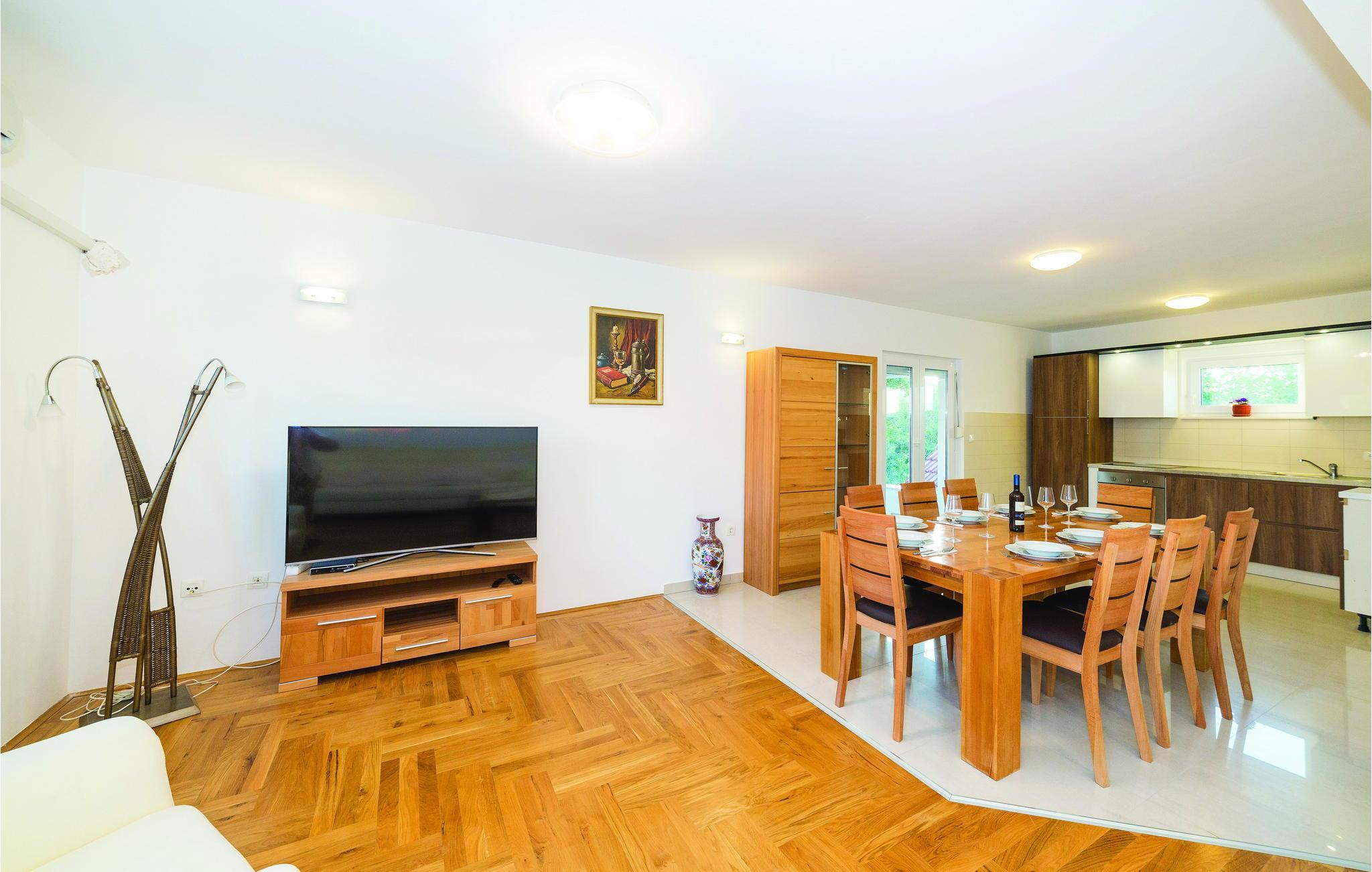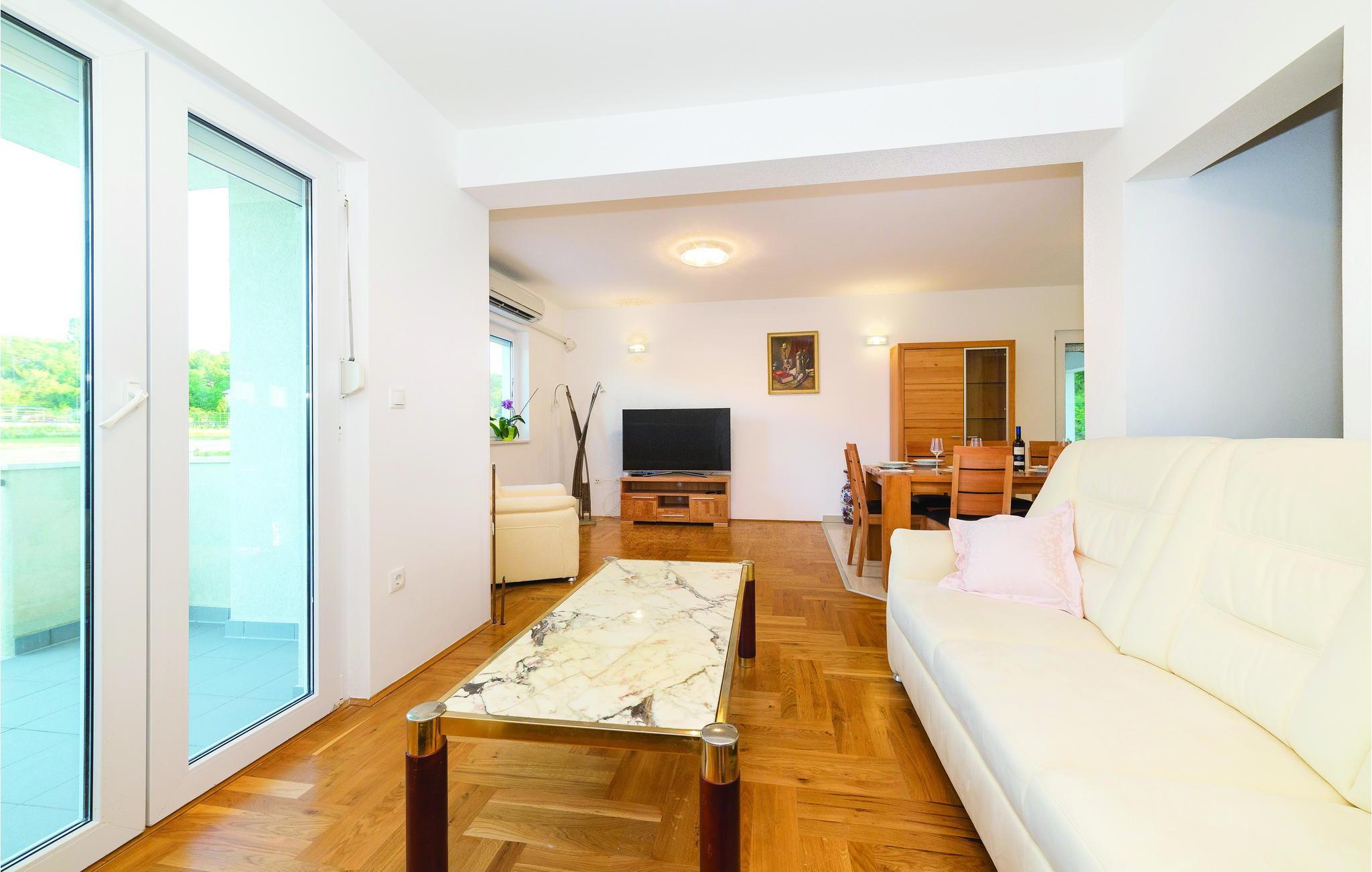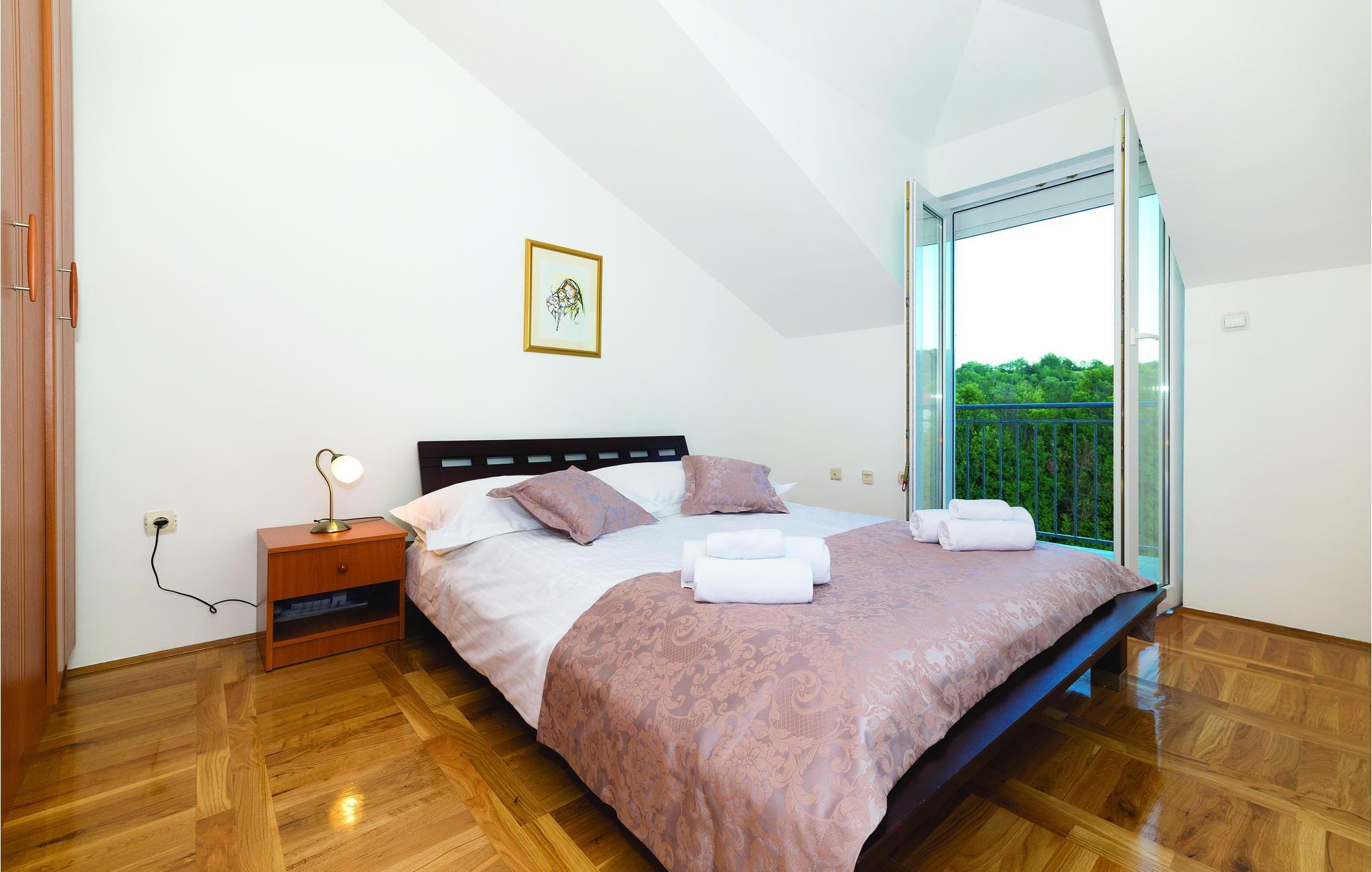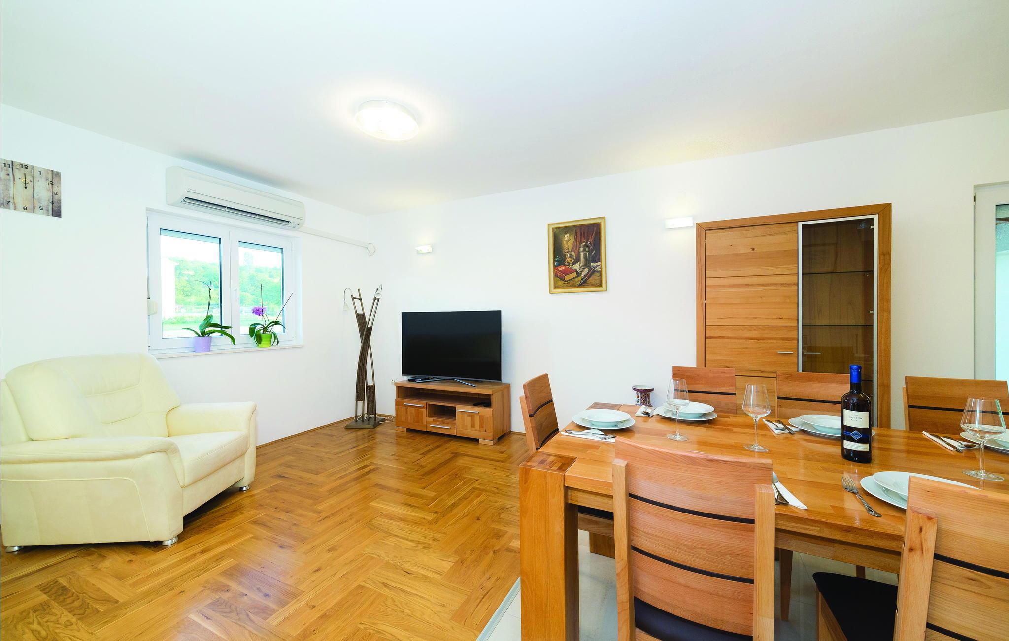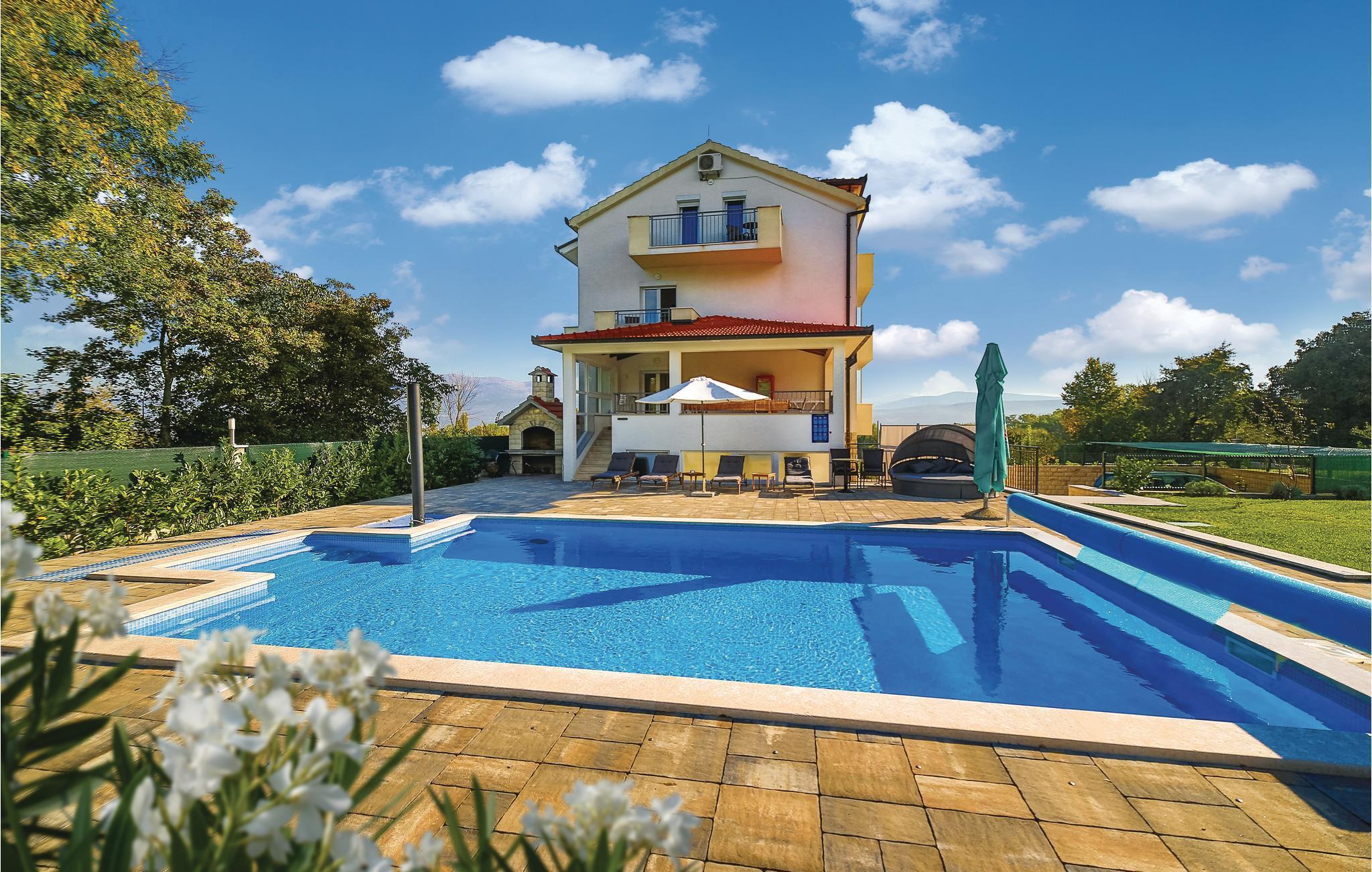 Denne attraktive halvdel af et dobbelthus med privat pool, ligger i Regionen Sinj i en rolig bydel i den lille by Trilj. Huset er delt op i to lejligheder. På første sal ligger stue, på anden sal er der tre soveværelser. På øverste etage er det åbne køkken og et soveværelse. Etagerne er forbundet med en indendørstrappe. I den indhegnede have ligger swimmingpoolen med et integreret spabad til fire personer. og her er også en grill og en volleyballbane på sand. I den anden del af huset bor ejeren med sin familie. Der er plads til at parkere en bil i garage og fire biler under åben himmel på grunden. Det tager en halv time i bil at køre til de interessante byer Split, Trogir, Šibenik og Makarska. Det er muligt at tage med på rafting- og rideudflugter mod betaling.