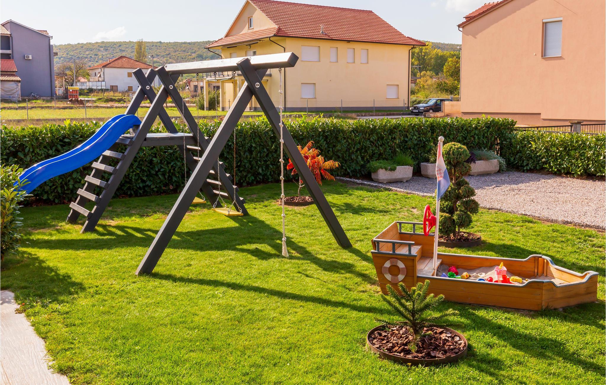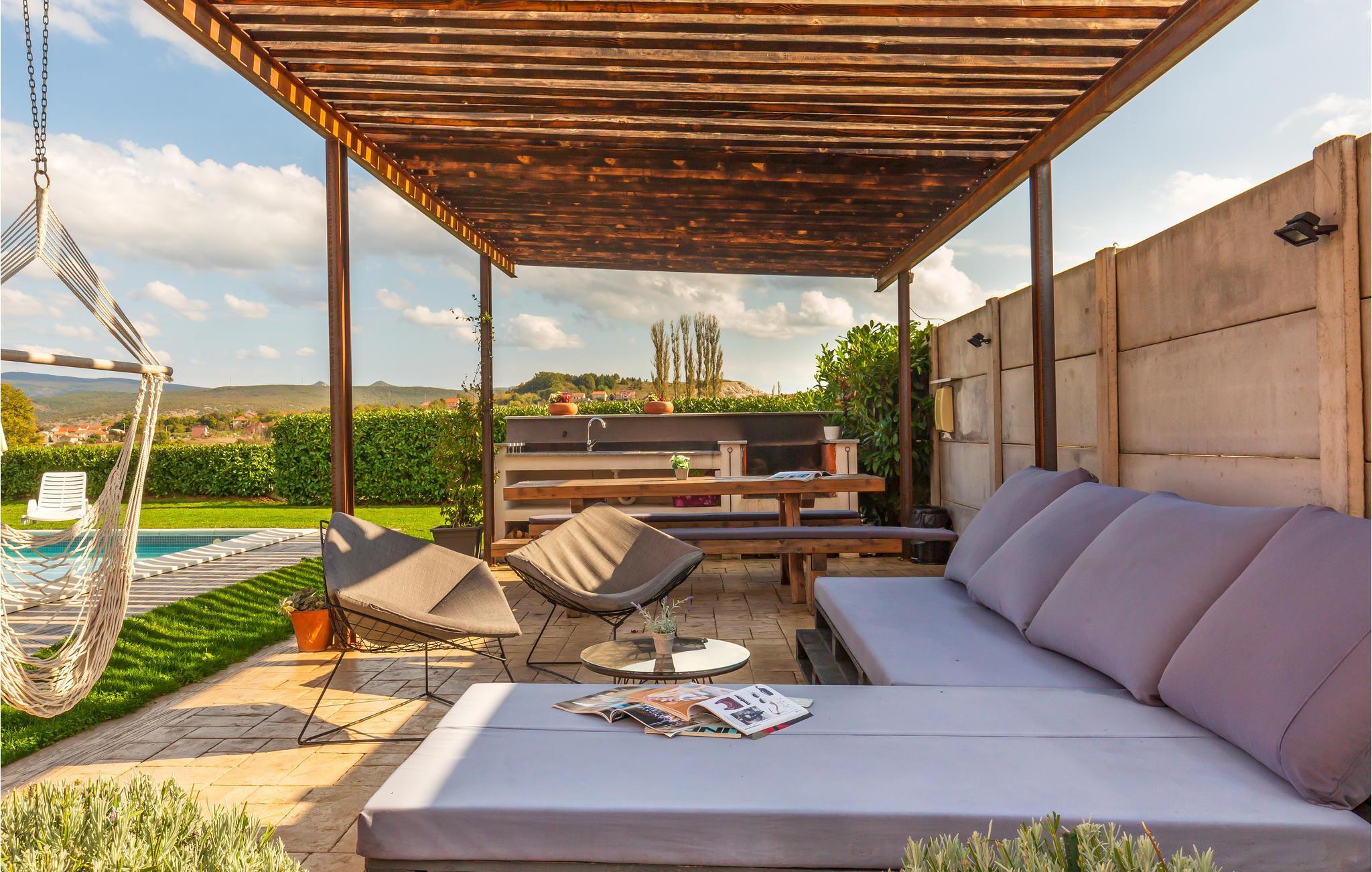 Dette skønne og komfortable feriehus med pool ligger ikke langt fra floden Cetina. Huset blev indrettet moderne og familievenligt og passer nu perfekt til en vellykket sommerferie. Husets etager er forbundet med indendørs trapper, laveste loftshøjde på øverste etage er 50 cm. Terrassen ligger ud mod plænerne, i hvilken der er en stor pool med massagedyser. Ved siden af poolen står et udendørs køkken med grill, til nem og lækker feriemad. I rummet med vaskemaskinen er der også en bruser og håndvask. Kun 300 m fra huset ligger floden Cetina, med mange muligheder for at dyrke vandsport. Her kan I f.eks. deltage i en frisk raftingtur. I kan gå til centrum af den lille dalmatiske by Trilj, her sker der altid noget.