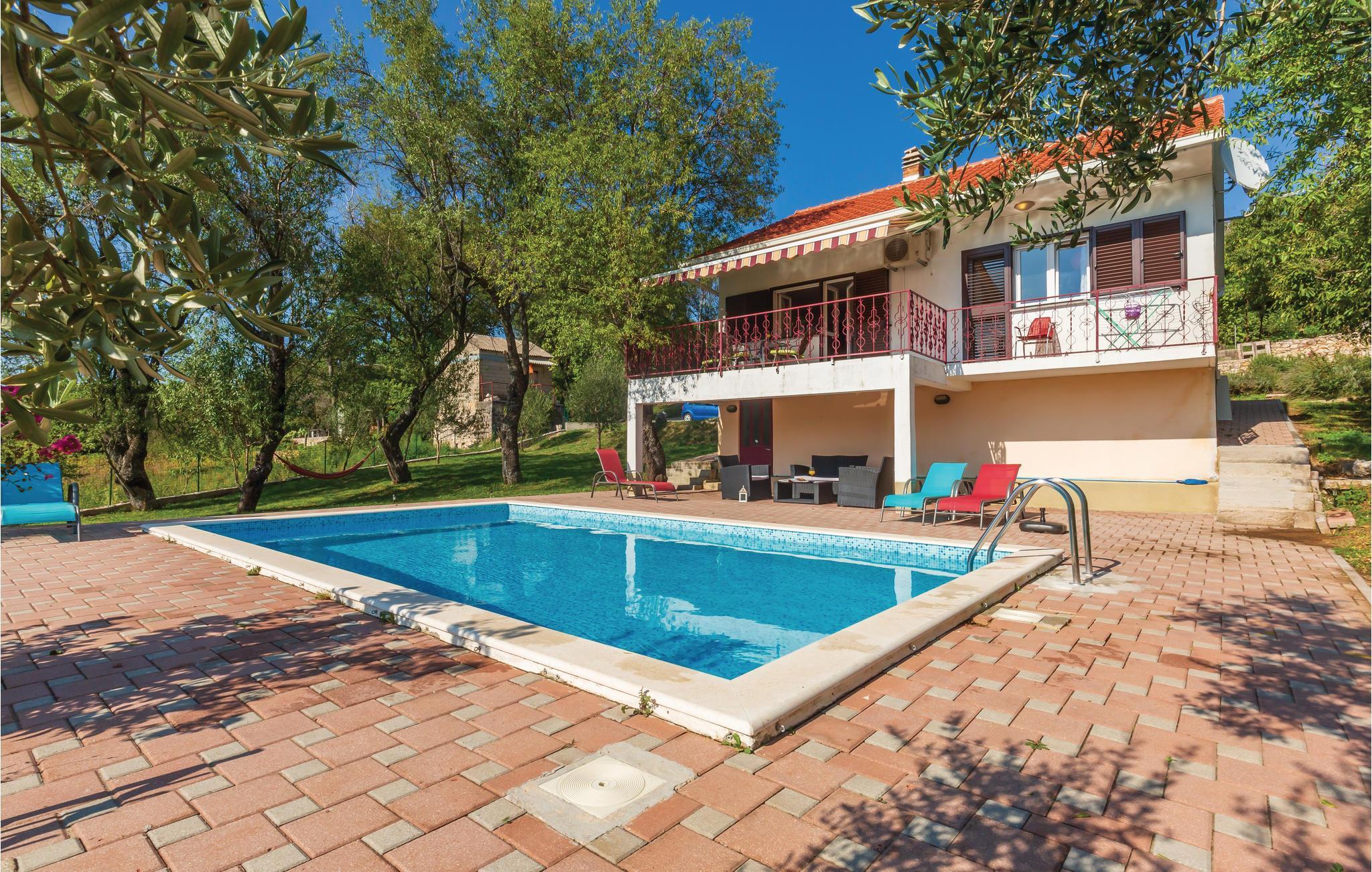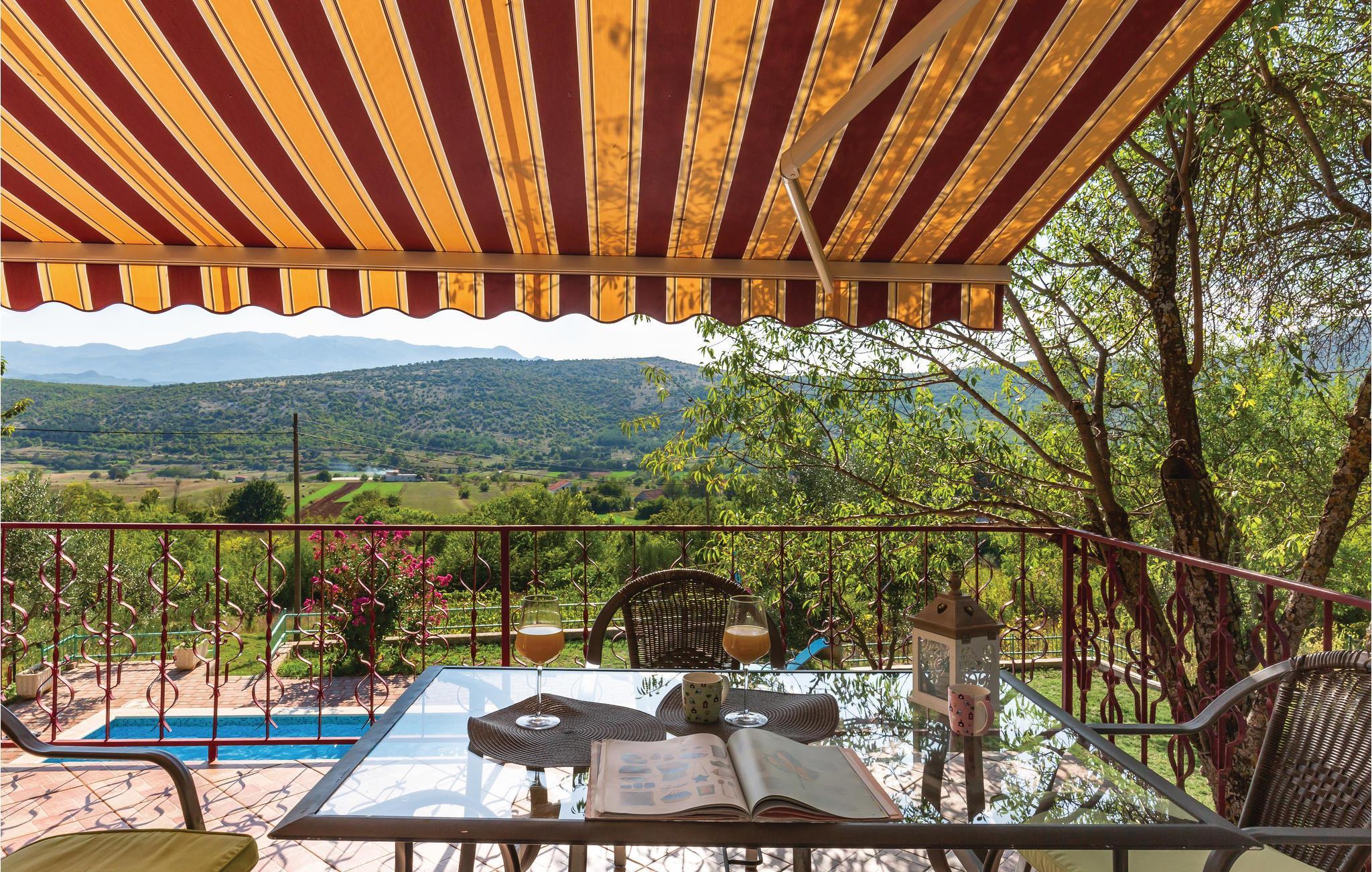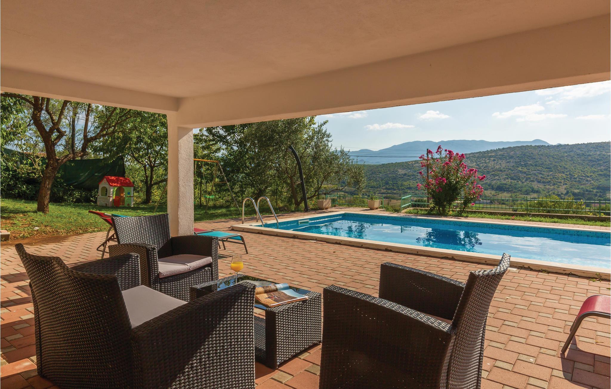Dette smukt indrettede feriehus ligger i naturlige omgivelser i det skønne dalmatiske bagland. Huset har terrasse med grill og et svømmebassin. Nyd ferien på terrassen, spis dagens måltider under åben himmel i den friske luft. Det store hus ligger i rolige omgivelser, langt væk fra larm og trængsel i byen. Herfra er der en dejlig udsigt over markerne med bjergene som smukt bagtæppe. Byens centrum med forretninger og restauranter: 800 m. Ved floden Cetina, 2,5 km, er der mange muligheder for en aktiv ferie, her kan I fiske, rafte, sejle kano mv. Til Split med en rig kulturhistorie er der 30 km.
