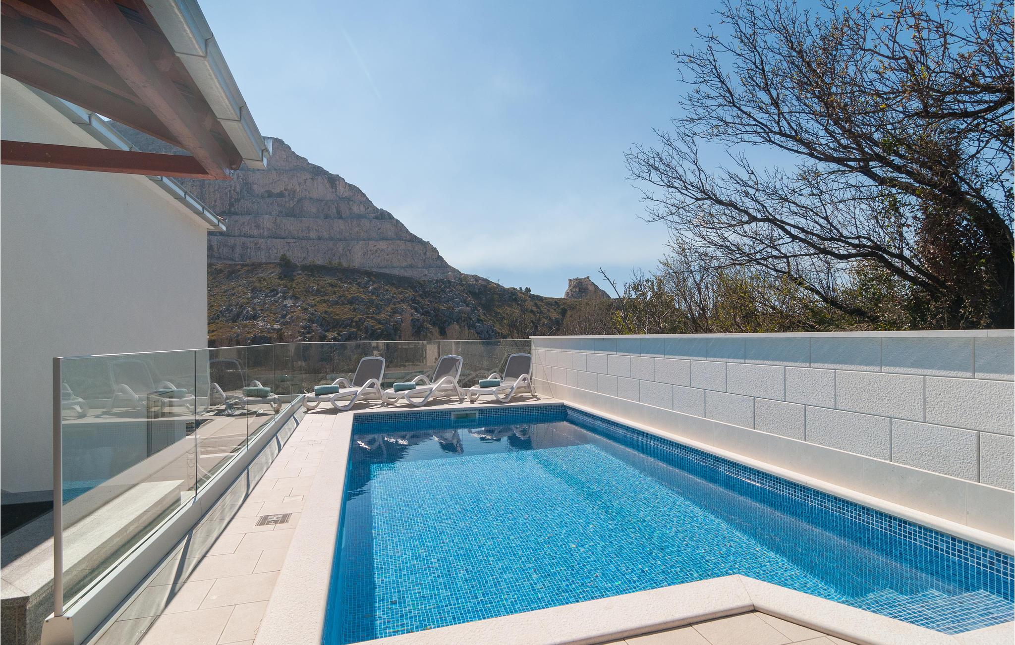 I har adgang til en stor, skøn terrasse, hvor det mest fristende nok er en dukkert i poolen. I kan også slænge jer på liggestolene, slikke sol og nyde en kold drink. Om aftenen kan I udfolde jer i udekøkkenet, spise i det fri og nyde den sydeuropæiske atmosfære til ud på de sene timer.