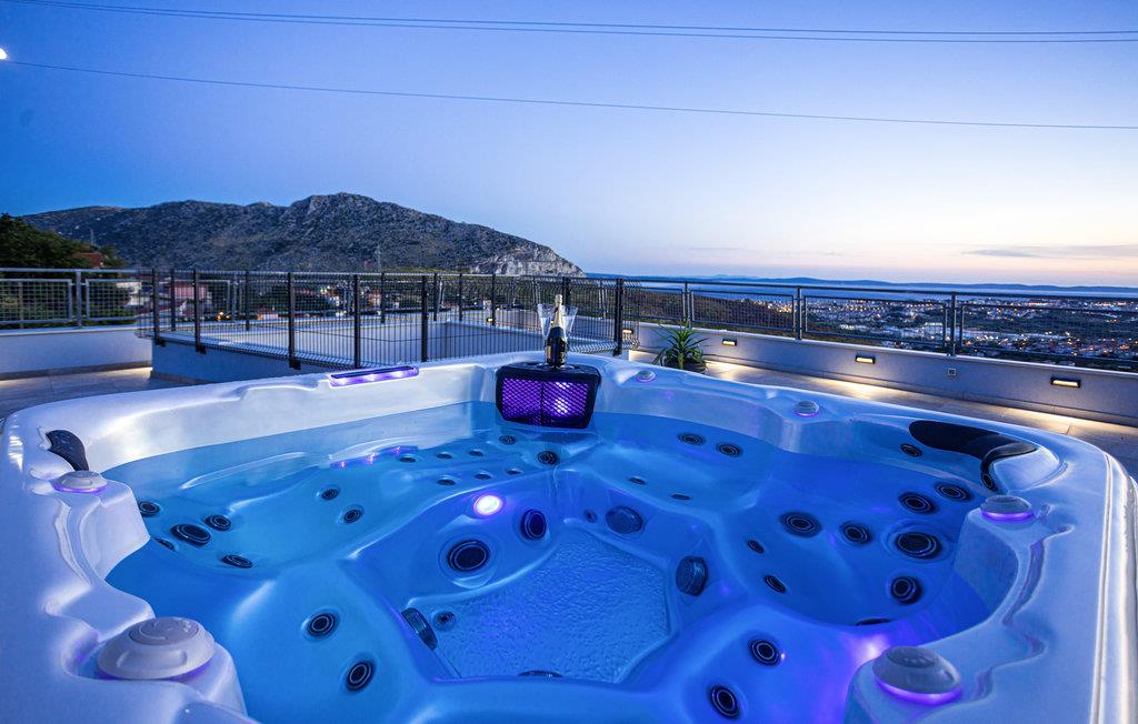 Er ferieønsket en villa med både inden- og udendørs pool og hele tre spadbade? Dette skønne og unikke feriehus ligger på en bakke i landsbyen Privor, over byen Zrnovnica, i nærheden af den store by Split.