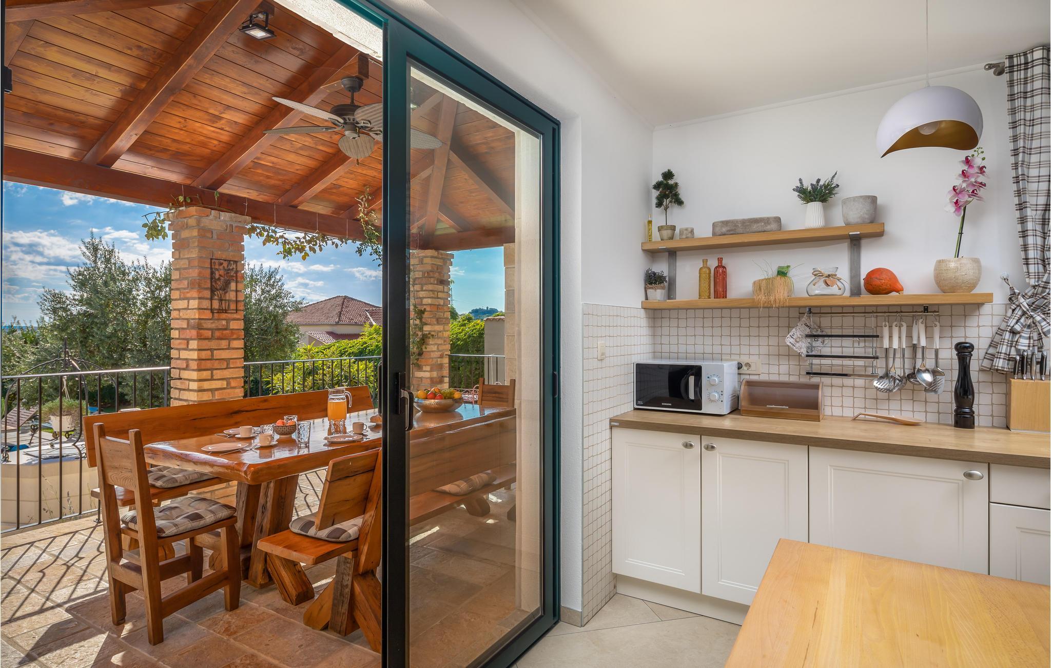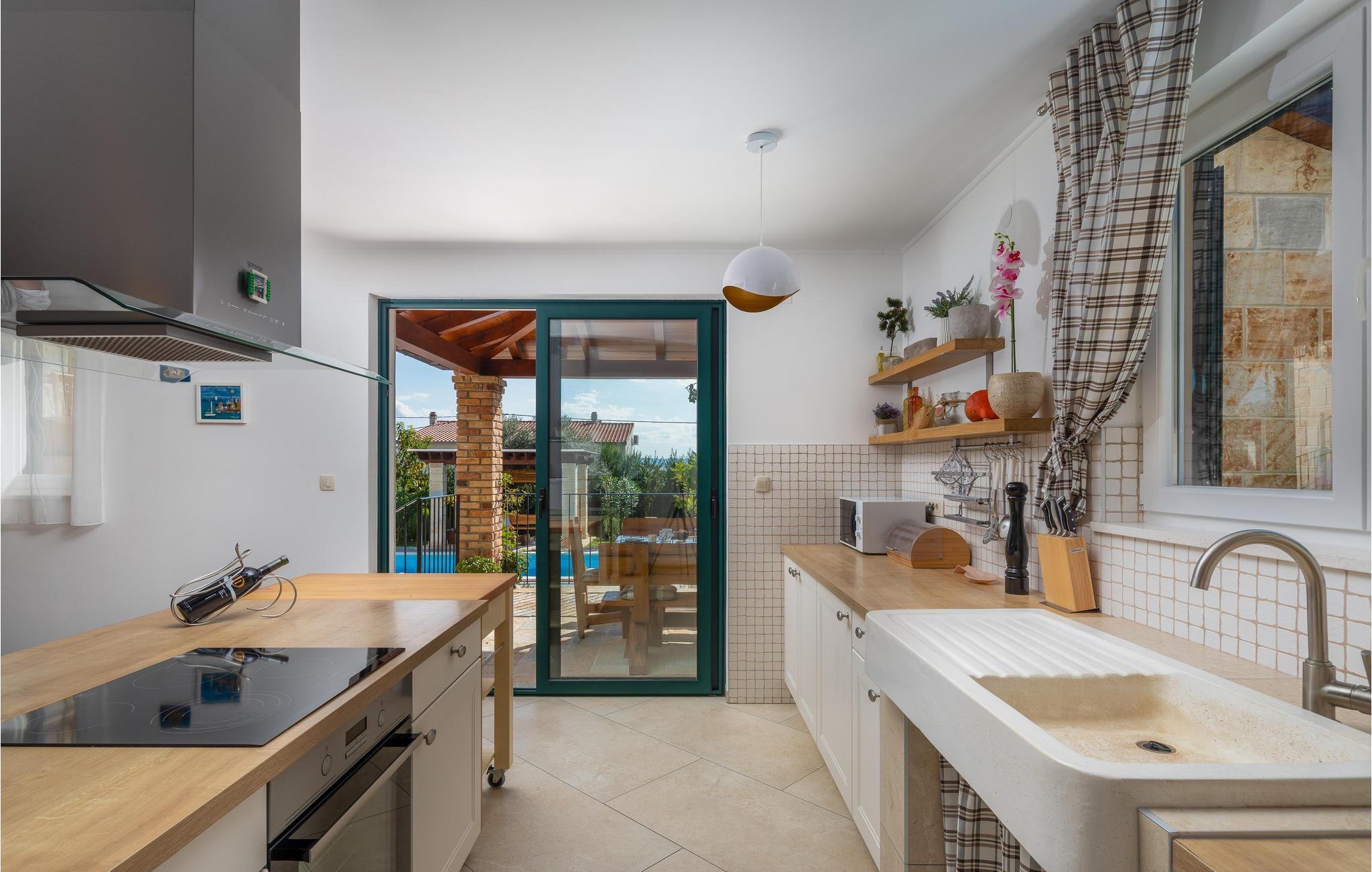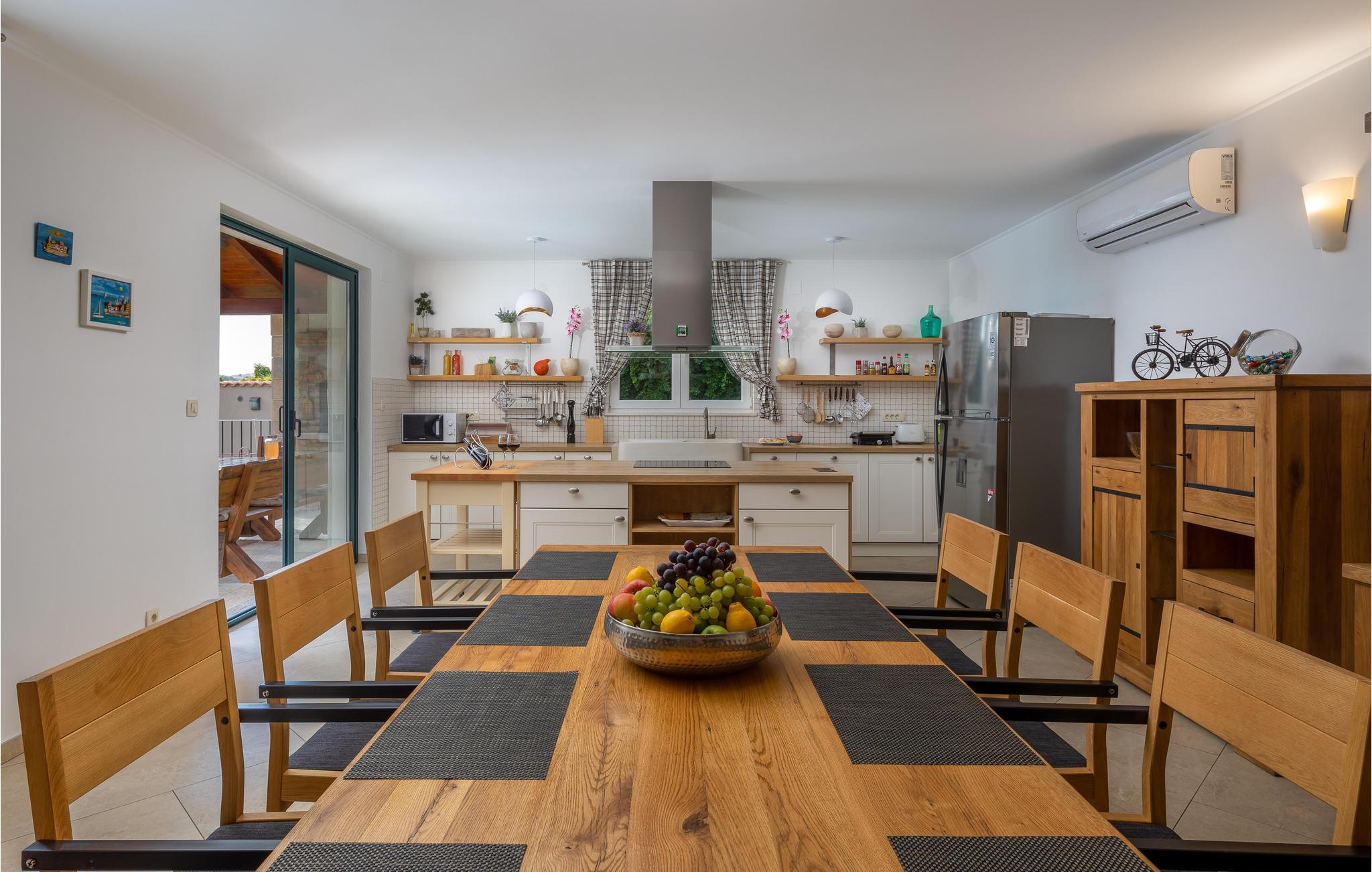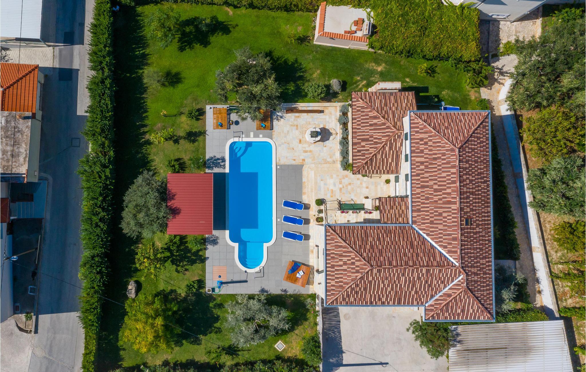 I vågner op i strålende solskin og har alle muligheder åbne. Tilbring et par timer med at plaske rundt i den store udendørs swimmingpool og sole jer fra liggestolene. Foretrækker I stranden, så kan I bade i Adriaterhavets glitrende vand ved grusstranden 2 km fra huset. Eller hvad med et par timers golf eller en vandretur under den bagende sol? Når I har brug fra en pause fra solen, er huset med dets store, rummelige og veludstyrede lokaler det perfekte sted at slappe af.