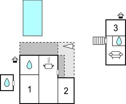 Huset er indrettet med stil. Boligen består af to bygninger, en rummer køkken, stue, to soveværelser og et dejligt rummeligt badeværelse, det andet med stue, soveværelse og badeværelse. Foran huset er en overdækket terrasse med grill, nabo til poolen, så I kan holde øje med børnene, der tumler sig i poolenm mens maden bliver færdig på grillen. Der er et ekstra toilet udendørs.