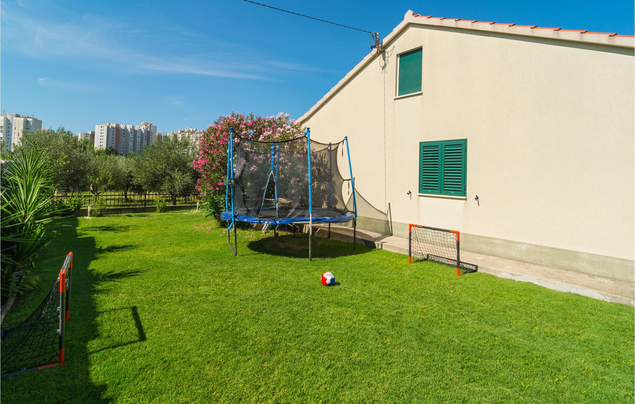 Dette hyggelige og lyse feriehus ligger i en forstad til Split. Her venter der jer to soveværelser, badeværelse, en rummelig dagligstue og et køkken, der går ud til den store terrasse. Til hyggelige grillaftener og hyggeligt samvær sørger grillen på den indhegnede grund. Tag til byen Split, hvor I kan beundre kejser Diokletians imonerende palads, slendre gennem den gamle bydel, udforske Marjan-Parken, og afslutte jeres rundgang på den kendte kystpromenade, på en af restauranterne med de herlige specialiteter fra Dalmatien.