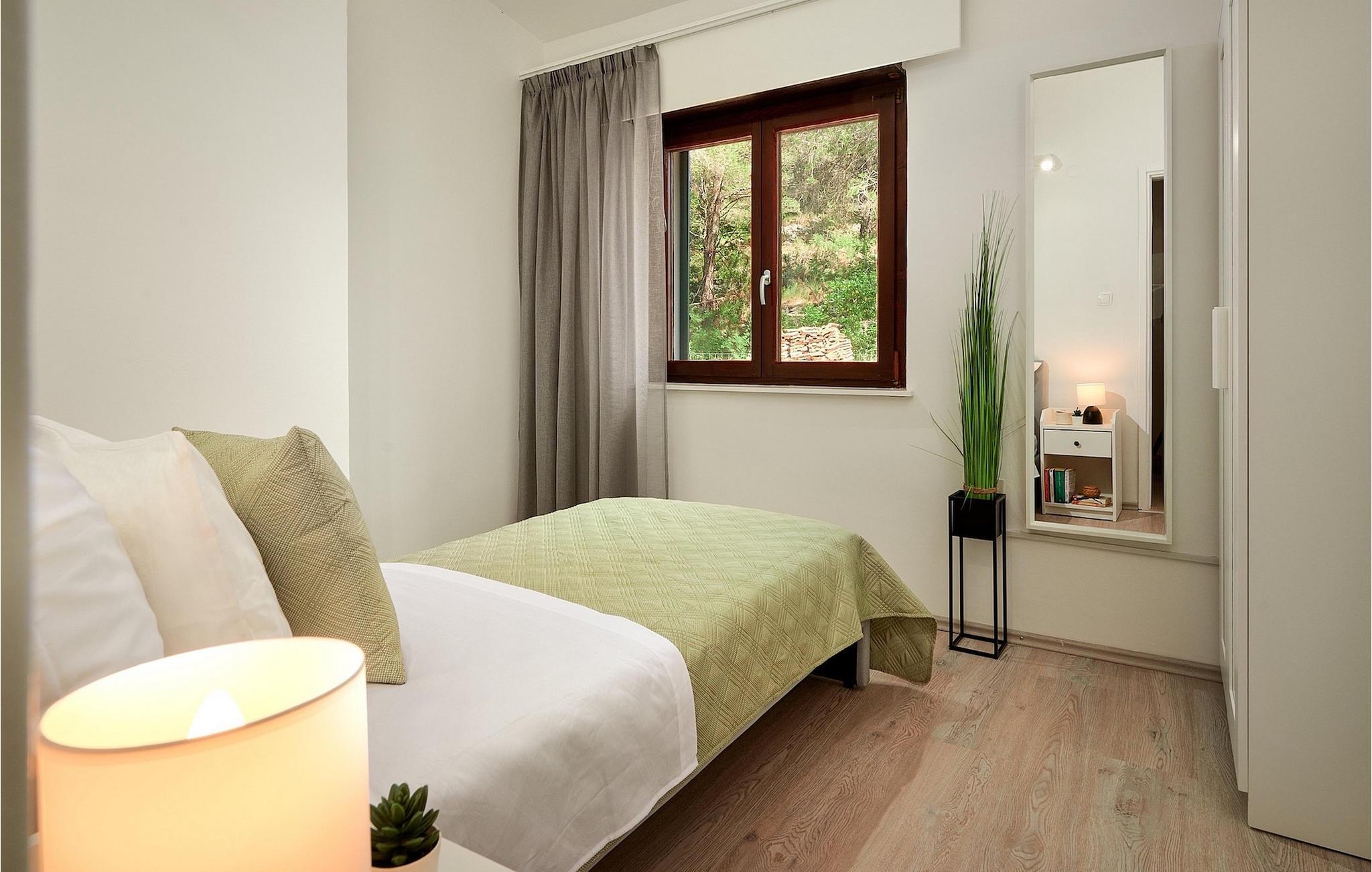 Villa Sun Spalato Mistral er den perfekte middelhavsidé til afslapning - beliggende lige ud til havet, med en fantastisk panoramaudsigt over bugten, den ligger i, en rummelig terrasse med naturlig skygge af træer og vinstokke, hvor du kan nyde en behagelig sommer dage. De ideelle rammer til at spille skak udenfor, mens den udpegede kok til jeres fest tilbereder lækre fiskeretter ved grillen, og resten af jer bare overvejer den svære beslutning, om de vil tage en dukkert i poolen eller tage et par skridt og tage nogle runder i havet. Villaen har i alt 5 soveværelser til en behagelig søvn på maksimalt 9 personer. I Villa Mistral kan du også finde 2 badeværelser, en stue, et fuldt udstyret køkken og en komfortabel stue. Men den udendørs terrasse og poolen vil uden tvivl være dit valg under det meste af dit ophold. Øen Šolta er en fantastisk ø beliggende nær turist-hotspot-byen Split. Med 6 færgeruter og 1 speedbådslinje om dagen i sommersæsonen er det næsten blevet en forstad til Split. Rogac, stedet hvor Villa Mistral ligger, er det ideelle udgangspunkt, hvis du ønsker at udforske øen. Uanset om du er til cykelture rundt om øen, eller til at udforske øens fantastiske grotter, har øen det hele. Og det turkise hav omkring øen er altid en god idé! Så tag bare en færge eller en katamaran fra Split, og på mindre end en time er du på denne fantastiske ø!