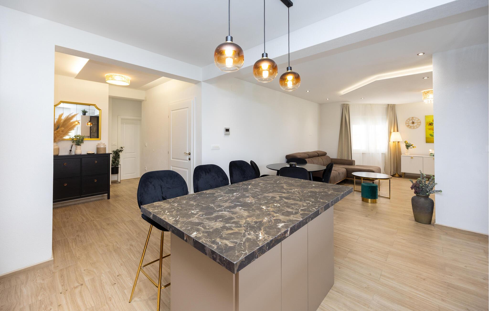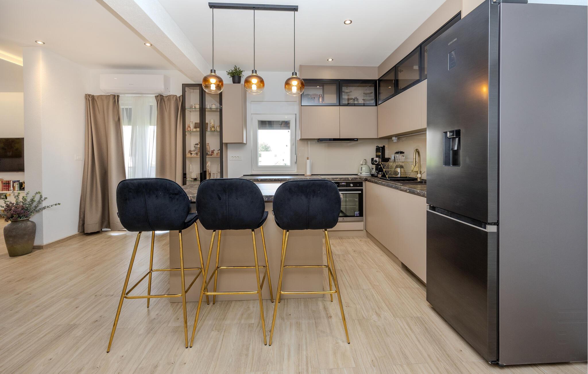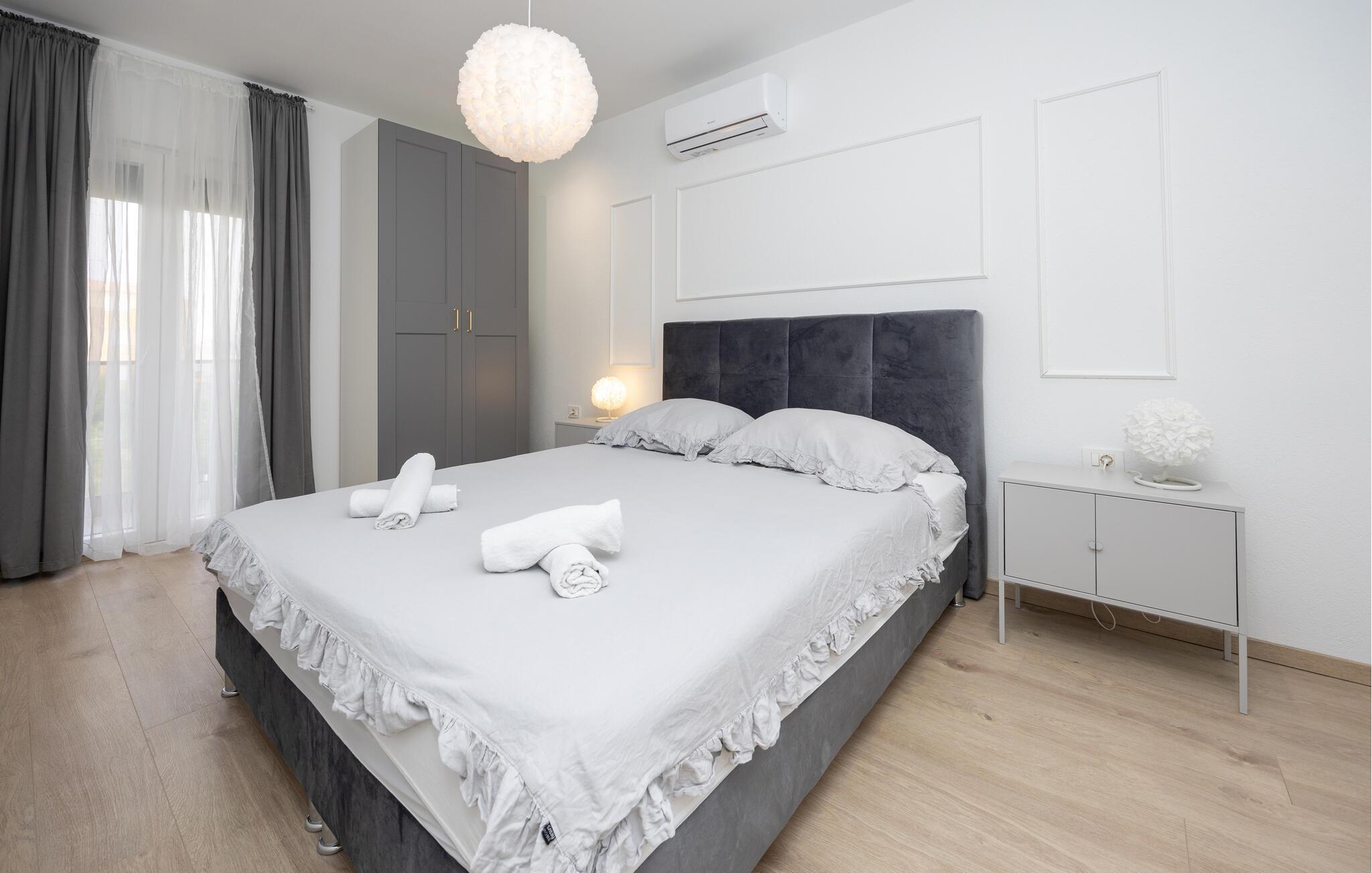 Denne charmerende lejlighed på første sal tilbyder alt, hvad I skal bruge for en afslappende familieferie. Den moderne indretning skaber en feel-good atmosfære, mens begge soveværelser har deres egne altaner med havemøbler, perfekt til afslappende stunder. Kombinationen af ??komfort og privatliv gør denne lejlighed til et ideelt tilflugtssted i Split.