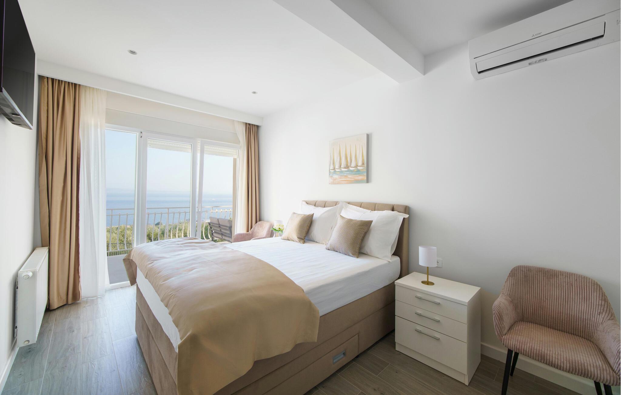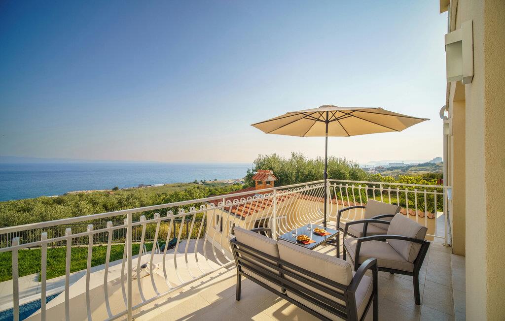 Tilbring solrige timer på den rummelige balkon med parasol og siddepladser. Lad jeres blik vandre over den velholdte grund til havet. Brug balkonen til morgenmad, kaffe eller et glas vin om aftenen. Snup en frisk dukkert i den fælles swimmingpool, og slap derefter af på en af ??de stillede liggestole.