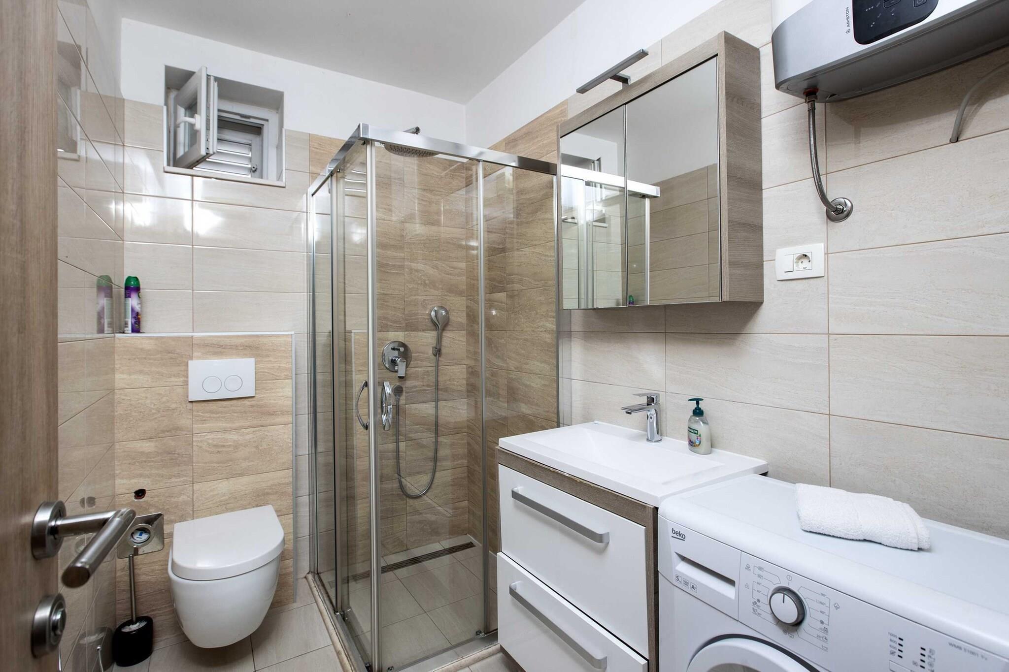 Apartment Villa Andelka is located in the city of Split, famous for its great history. A private outdoor swimming pool as well as a terrace fitted with sun loungers is at your disposal, which makes this place ideal for relaxing family or friends vacation. This property also comes BBQ grill and an outdoor dining area. Pets are allowed with notice and additional charge of 5 euros per night. Luggage storage is possible upon request. Free private parking is provided, reservation is needed. This lovely three bedroom apartment with swimming pool is perfectly fit for up to eight people. It features free WiFi, air conditioning as well as SAT LCD TV. The open space living room comes with sofa and sitting area, and it's combined with the equipped kitchen and dining area. The private bathroom comes with shower and toilet. Free toiletries (shampoo, soap and toilet paper), hair dryer as well as linens and towels are at your disposal. Due to the property's good location everything you may need during your stay can be found in the neighborhood. Beach is 2 km away, driving distance only 5 minutes! The nearest market is 80 km away. Restaurants, bars, and grocery stores - all can be found within 200 m of the property Apartment Villa Andelka. Split airport is 26 km away from the property.