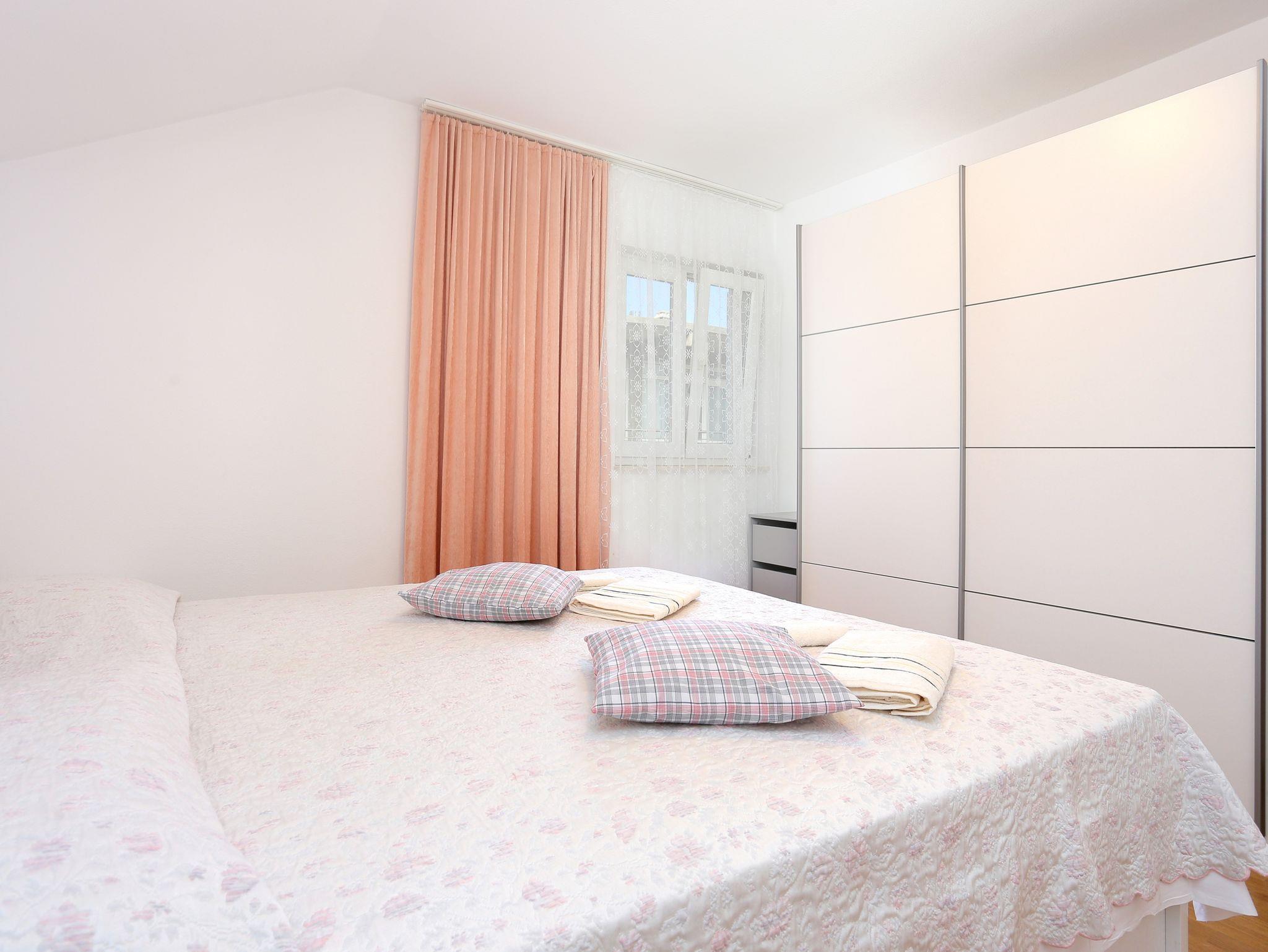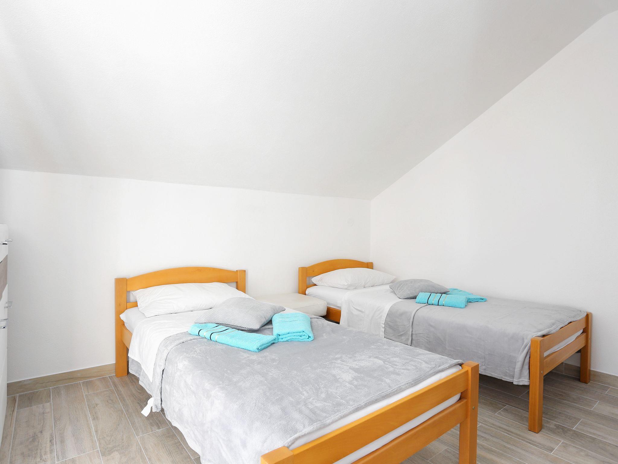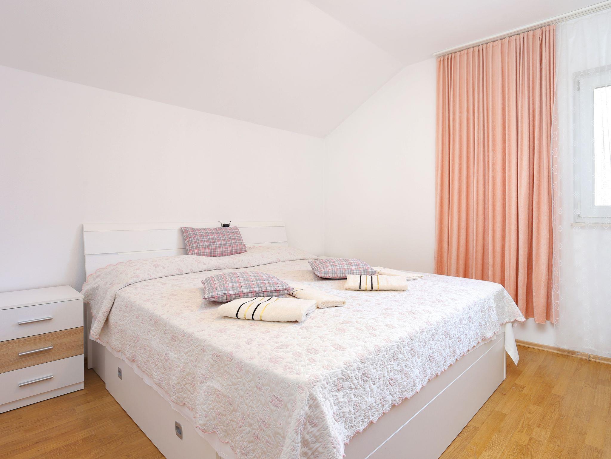 Ferienwohnung bietet Platz für 7 Gäste. Die Betten sind in Schlafzimmern, die es 3 gibt, innerhalb einer Gesamtfläche von 92m2, angeordnet. Die Gäste haben eine eigene Terrasse zur Verfügung, auf der sie in warmen Sommernächten genießen können. Es ist erlaubt, Speisen auf dem Gemeinschafts-Grill vorzubereiten. Während ihres Aufenthalts können Gäste das gemeinsam zur Nutzung stehende Schwimmbad benutzen. IM PREIS INBEGRIFFEN: Kurtaxe, Endreinigung, Klimatisierung, Pool, Parkplatz, Internet, Bügeleisen, Bügelbrett, Föhn. VERBINDLICHE ZUSÄTZLICHE KOSTEN: Aufzahlung für Kurzaufenthalte (prozentualer Zuschlag pro Nächtigungsanzahl: 30% - 1, 20% - 2, 10% - 3). Die Verfügbarkeit zusätzlicher Dienstleistungen in Ihrem reservierten Termin und die Preise derselben (falls nicht aufgeführt) müssen im Voraus überprüft werden. Zusätzliche Dienstleistungen die in der Zahlungsaufforderung nicht aufgeführt sind werden direkt beim Vermieter bezahlt, angenommen der Gast nutzt auch diese. Ermäßigung auf den Grundpreis: Gratistag 14=13 (bei einem Aufenthalt von 14 Tagen oder mehr erhalten Sie einen Gratistag für den Aufenthalt bis 31.12.25).