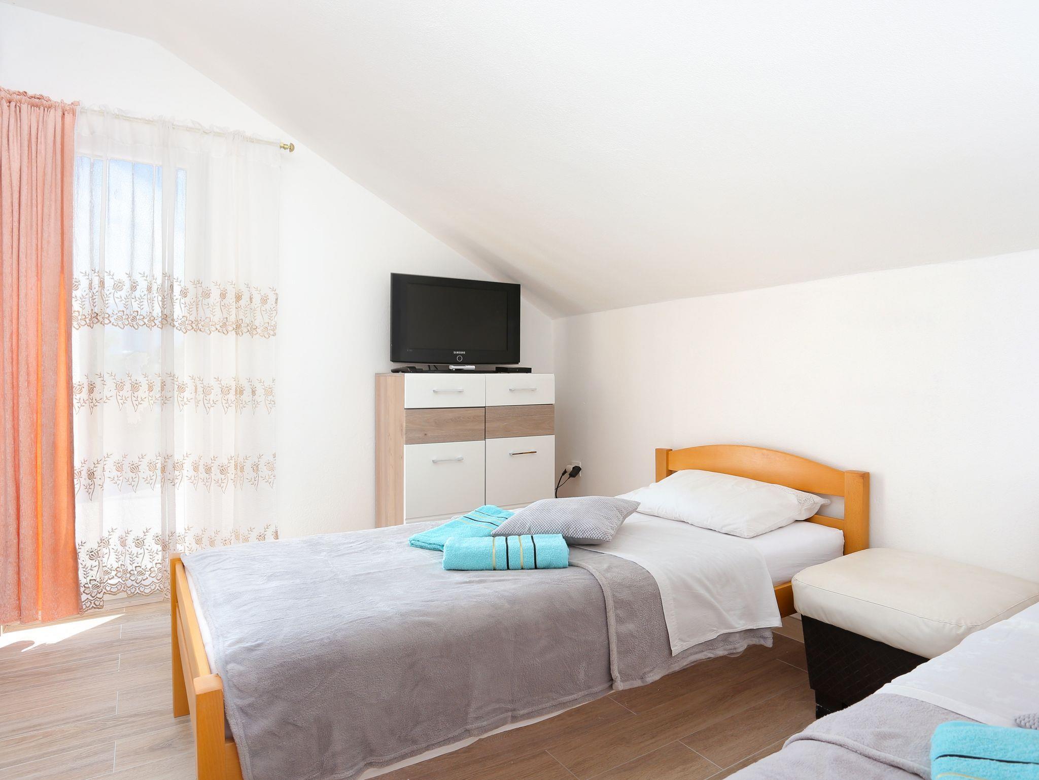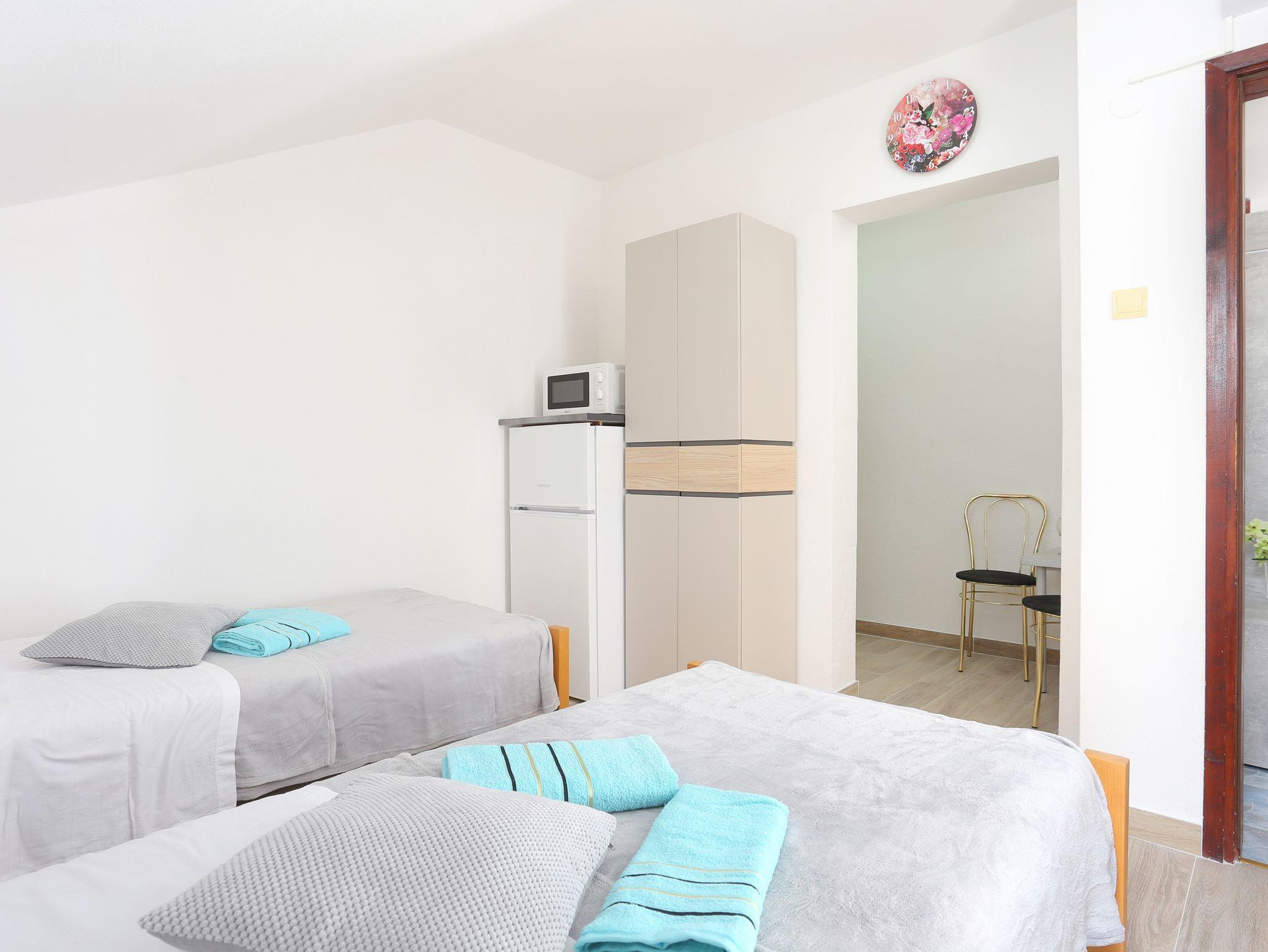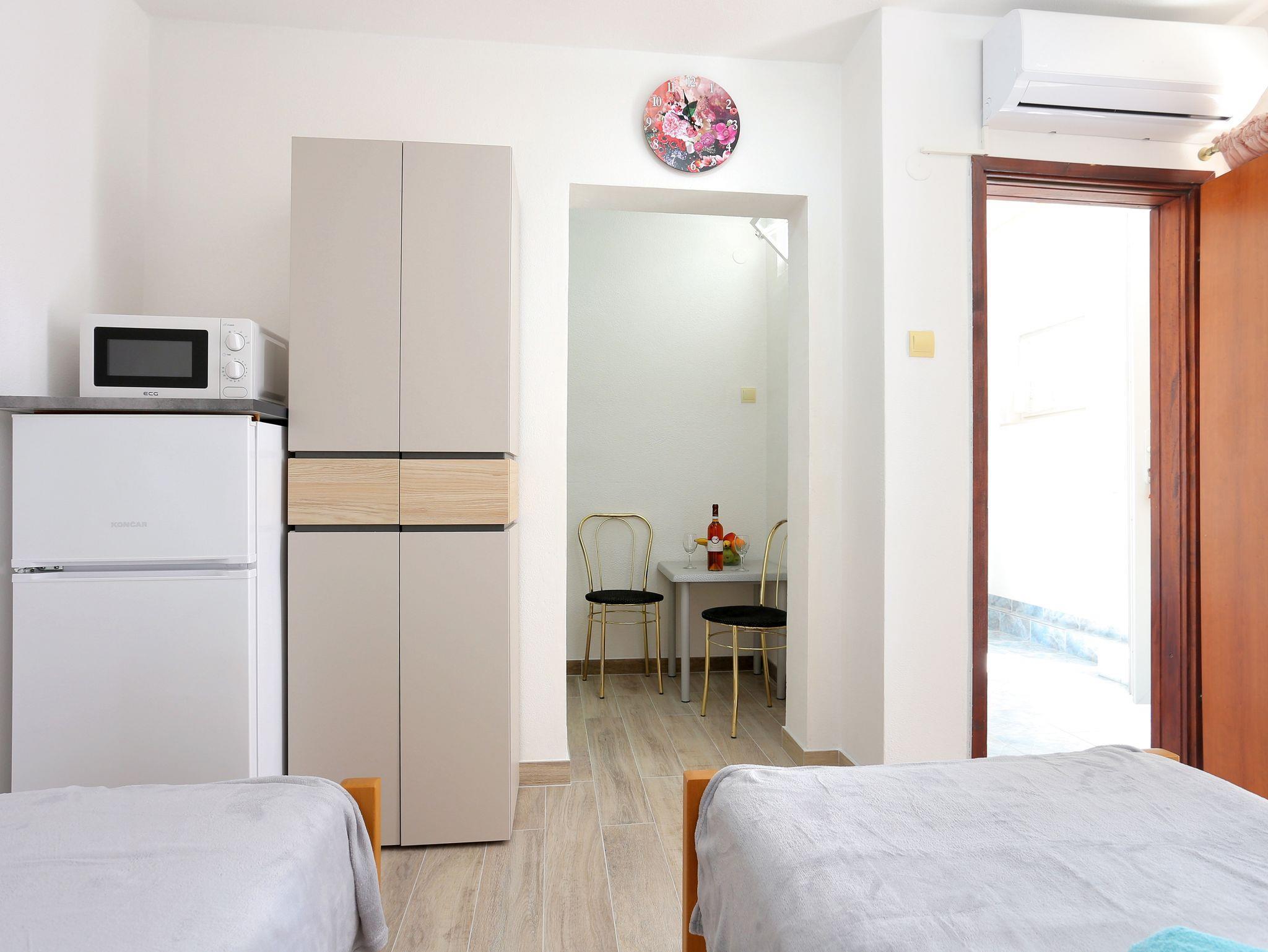 Ferienwohnung bietet Platz für 7 Gäste. Die Betten sind in Schlafzimmern, die es 3 gibt, innerhalb einer Gesamtfläche von 92m2, angeordnet. Die Gäste haben eine eigene Terrasse zur Verfügung, auf der sie in warmen Sommernächten genießen können. Es ist erlaubt, Speisen auf dem Gemeinschafts-Grill vorzubereiten. Während ihres Aufenthalts können Gäste das gemeinsam zur Nutzung stehende Schwimmbad benutzen. IM PREIS INBEGRIFFEN: Kurtaxe, Endreinigung, Klimatisierung, Pool, Parkplatz, Internet, Bügeleisen, Bügelbrett, Föhn. VERBINDLICHE ZUSÄTZLICHE KOSTEN: Aufzahlung für Kurzaufenthalte (prozentualer Zuschlag pro Nächtigungsanzahl: 30% - 1, 20% - 2, 10% - 3). Die Verfügbarkeit zusätzlicher Dienstleistungen in Ihrem reservierten Termin und die Preise derselben (falls nicht aufgeführt) müssen im Voraus überprüft werden. Zusätzliche Dienstleistungen die in der Zahlungsaufforderung nicht aufgeführt sind werden direkt beim Vermieter bezahlt, angenommen der Gast nutzt auch diese. Ermäßigung auf den Grundpreis: Gratistag 14=13 (bei einem Aufenthalt von 14 Tagen oder mehr erhalten Sie einen Gratistag für den Aufenthalt bis 31.12.25).