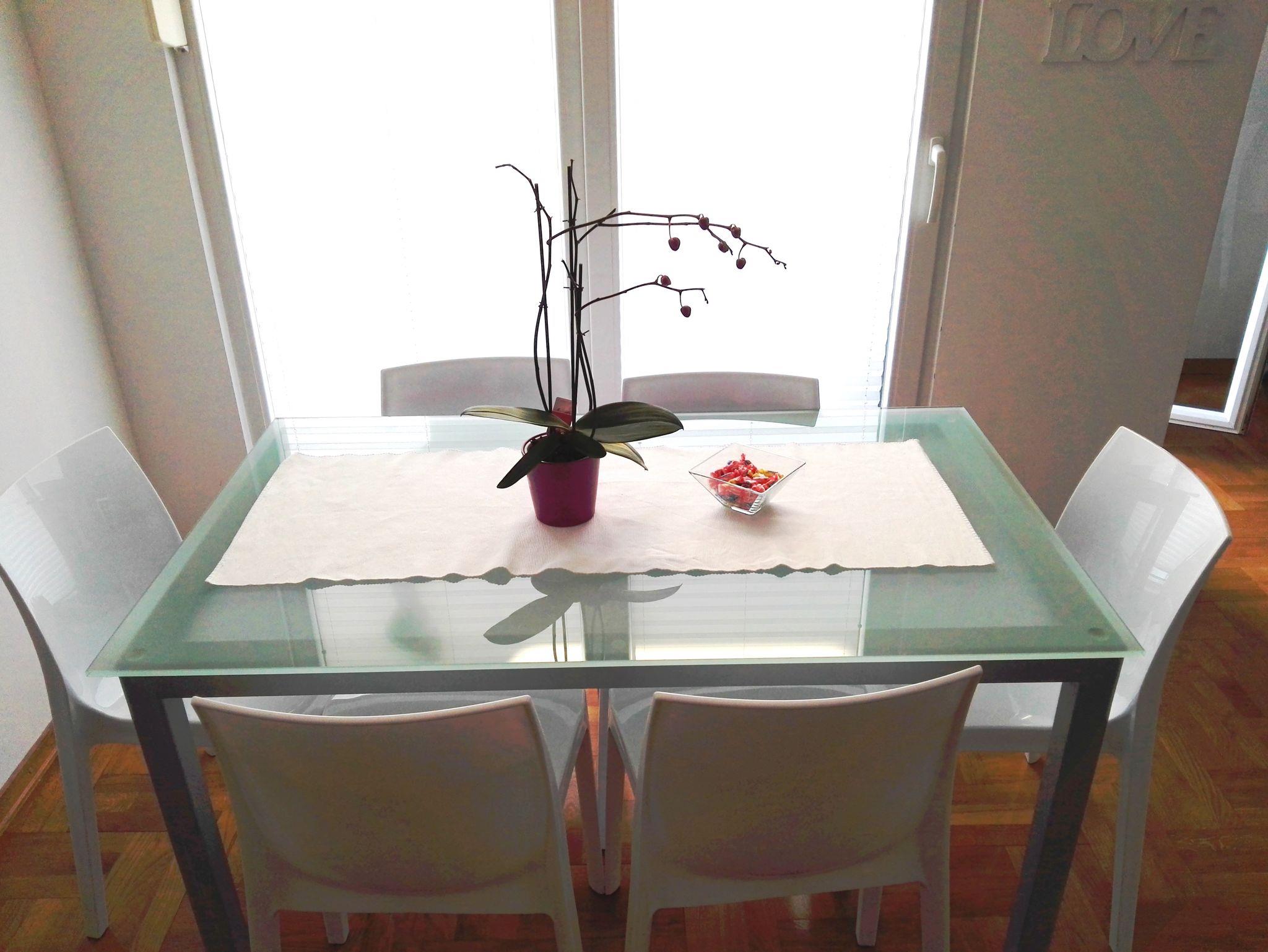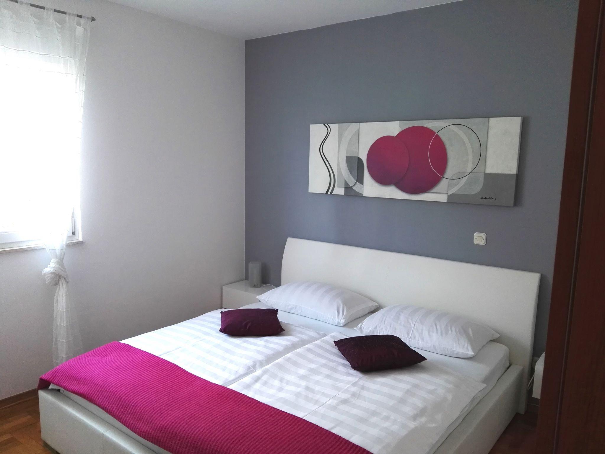 Ferienwohnung bietet Platz für 6 Gäste. Die Betten sind in Schlafzimmern, die es 2 gibt, und in Wohnzimmer, innerhalb einer Gesamtfläche von 54m2, angeordnet. Die Gäste haben eine eigene Terrasse zur Verfügung, auf der sie in warmen Sommernächten genießen können. Das Apartment bietet Meerblick. IM PREIS INBEGRIFFEN: Kurtaxe, Endreinigung, Klimatisierung, Parkplatz, Internet, Kinderbett, Bügeleisen, Bügelbrett, Föhn. VERBINDLICHE ZUSÄTZLICHE KOSTEN: Aufzahlung für Kurzaufenthalte (prozentualer Zuschlag pro Nächtigungsanzahl: 30% - 1, 20% - 2, 10% - 3). Die Verfügbarkeit zusätzlicher Dienstleistungen in Ihrem reservierten Termin und die Preise derselben (falls nicht aufgeführt) müssen im Voraus überprüft werden. Zusätzliche Dienstleistungen die in der Zahlungsaufforderung nicht aufgeführt sind werden direkt beim Vermieter bezahlt, angenommen der Gast nutzt auch diese.