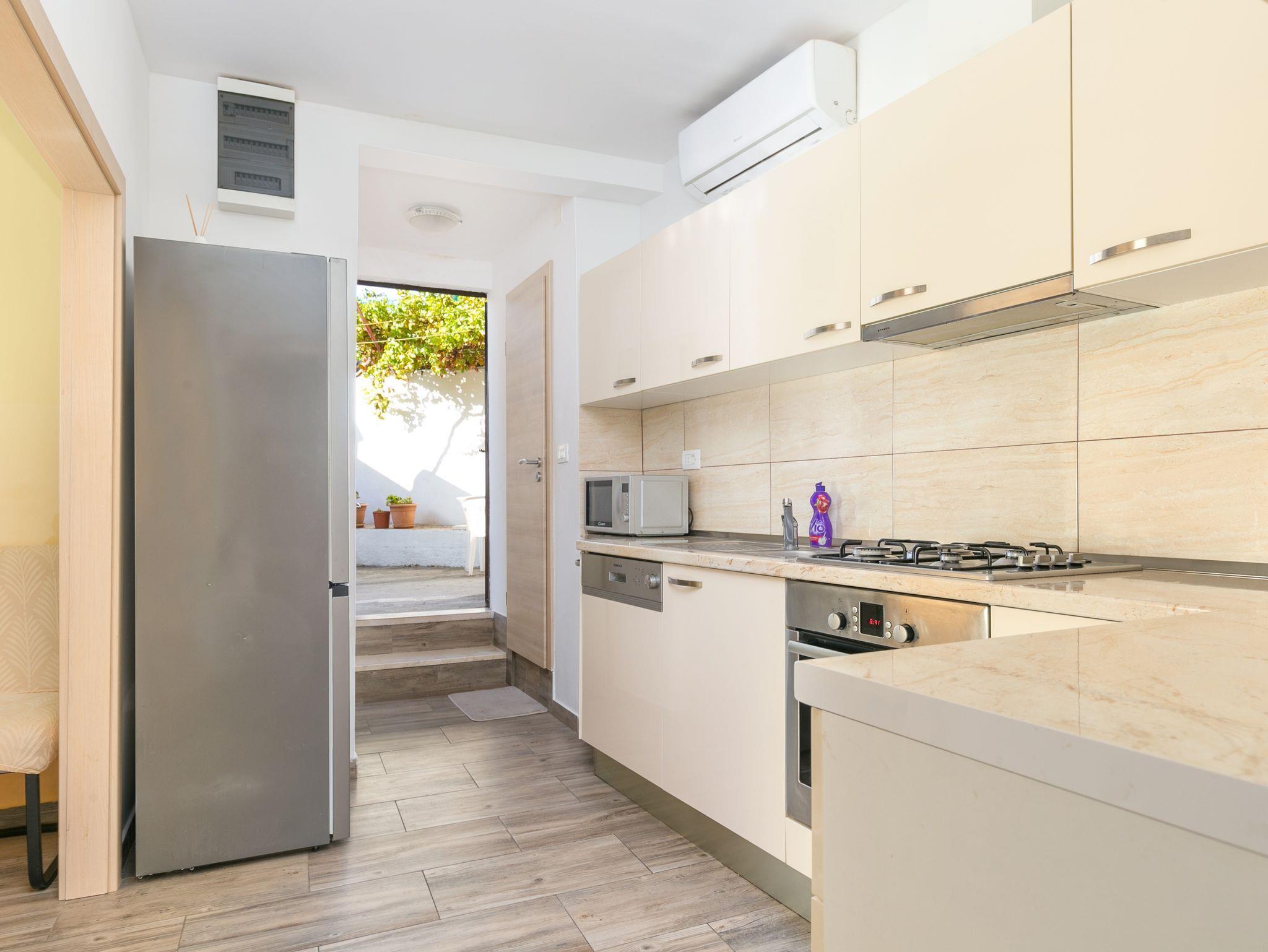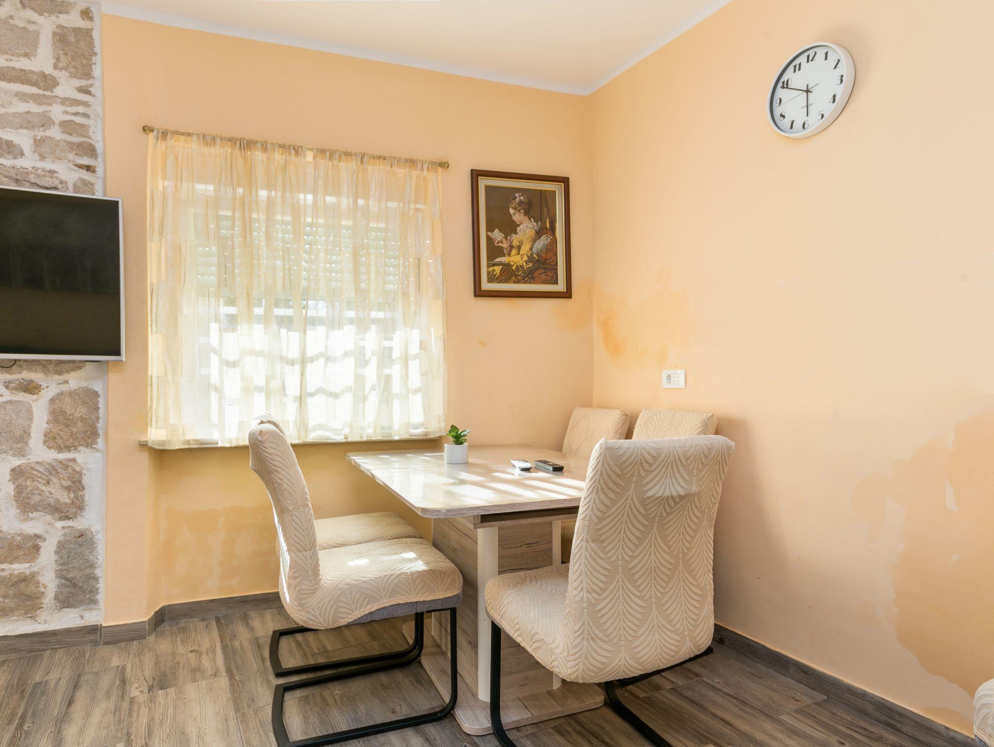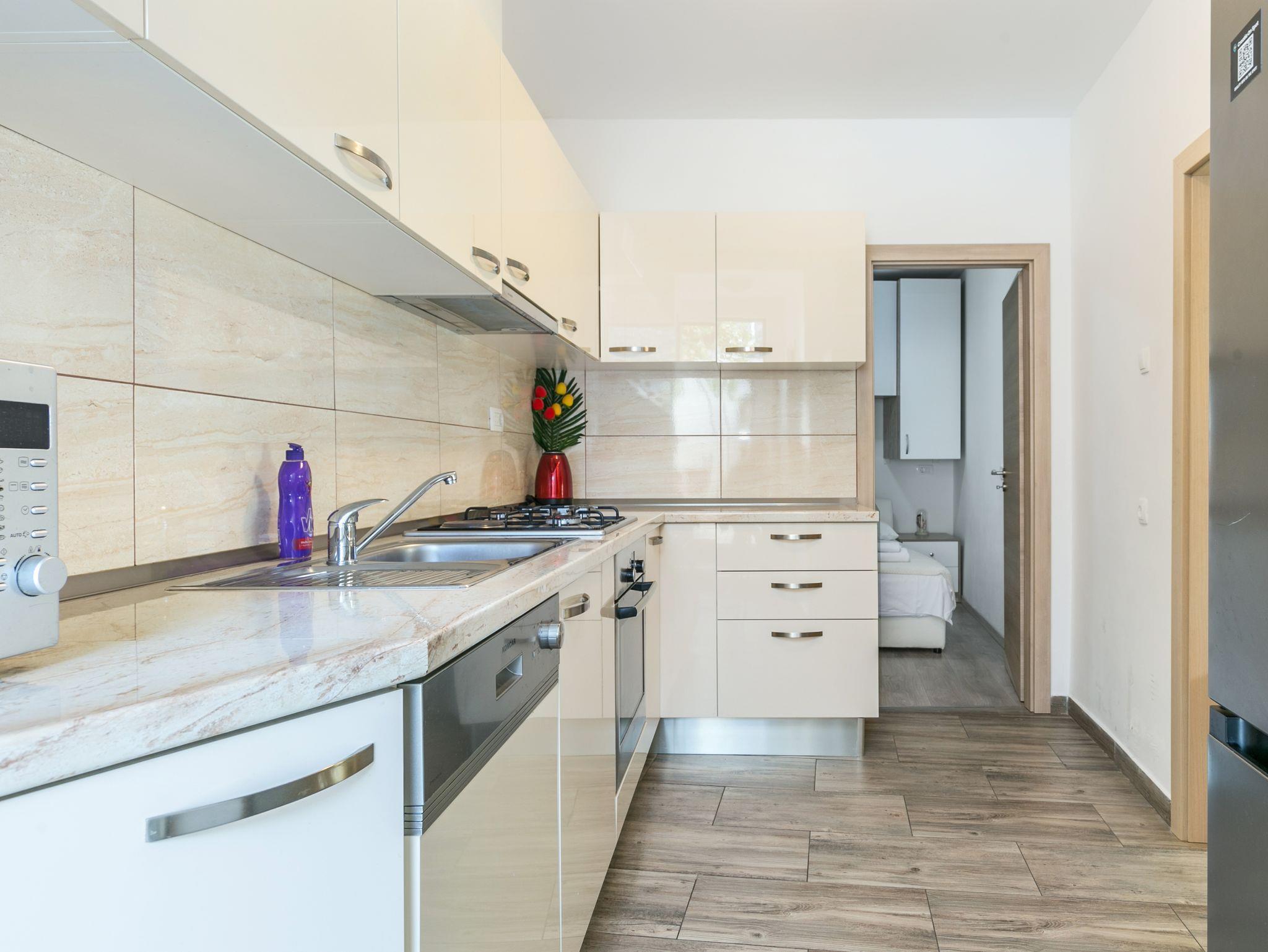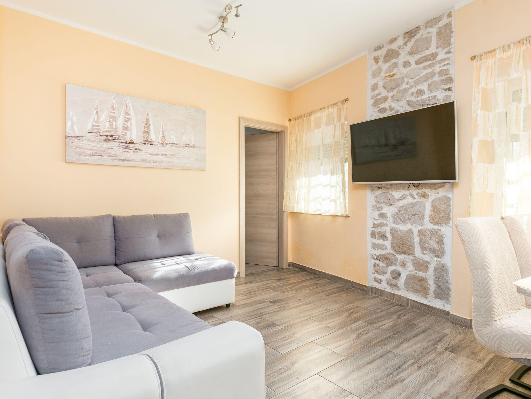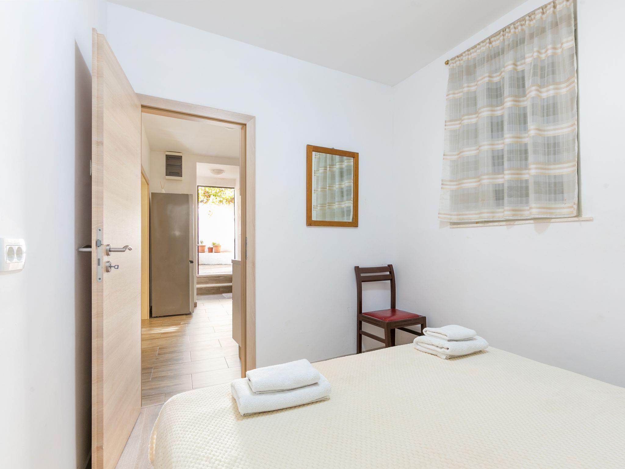 Ferienwohnung bietet Platz für 5 Gäste. Die Betten sind in Schlafzimmern, die es 2 gibt, und in Wohnzimmer, innerhalb einer Gesamtfläche von 42m2, angeordnet. Die Gäste haben eine eigene Terrasse zur Verfügung, auf der sie in warmen Sommernächten genießen können. Für vollen Genuss und Entspannung gibt es einen privaten Grill für Gäste dieser Unterkunft. Durch die Terrasse der gebuchten Unterkunftseinheit gehen auch andere Gäste oder Vermieter. IM PREIS INBEGRIFFEN: Kurtaxe, Endreinigung, Klimatisierung, Internet, Wäschewaschen, Bügeleisen. VERBINDLICHE ZUSÄTZLICHE KOSTEN: Aufzahlung für Kurzaufenthalte (prozentualer Zuschlag pro Nächtigungsanzahl: 30% - 1, 20% - 2, 10% - 3). Die Verfügbarkeit zusätzlicher Dienstleistungen in Ihrem reservierten Termin und die Preise derselben (falls nicht aufgeführt) müssen im Voraus überprüft werden. Zusätzliche Dienstleistungen die in der Zahlungsaufforderung nicht aufgeführt sind werden direkt beim Vermieter bezahlt, angenommen der Gast nutzt auch diese. Ermäßigung auf den Grundpreis: Gratistag 14=13 (bei einem Aufenthalt von 14 Tagen oder mehr erhalten Sie einen Gratistag für den Aufenthalt bis 31.12.26).