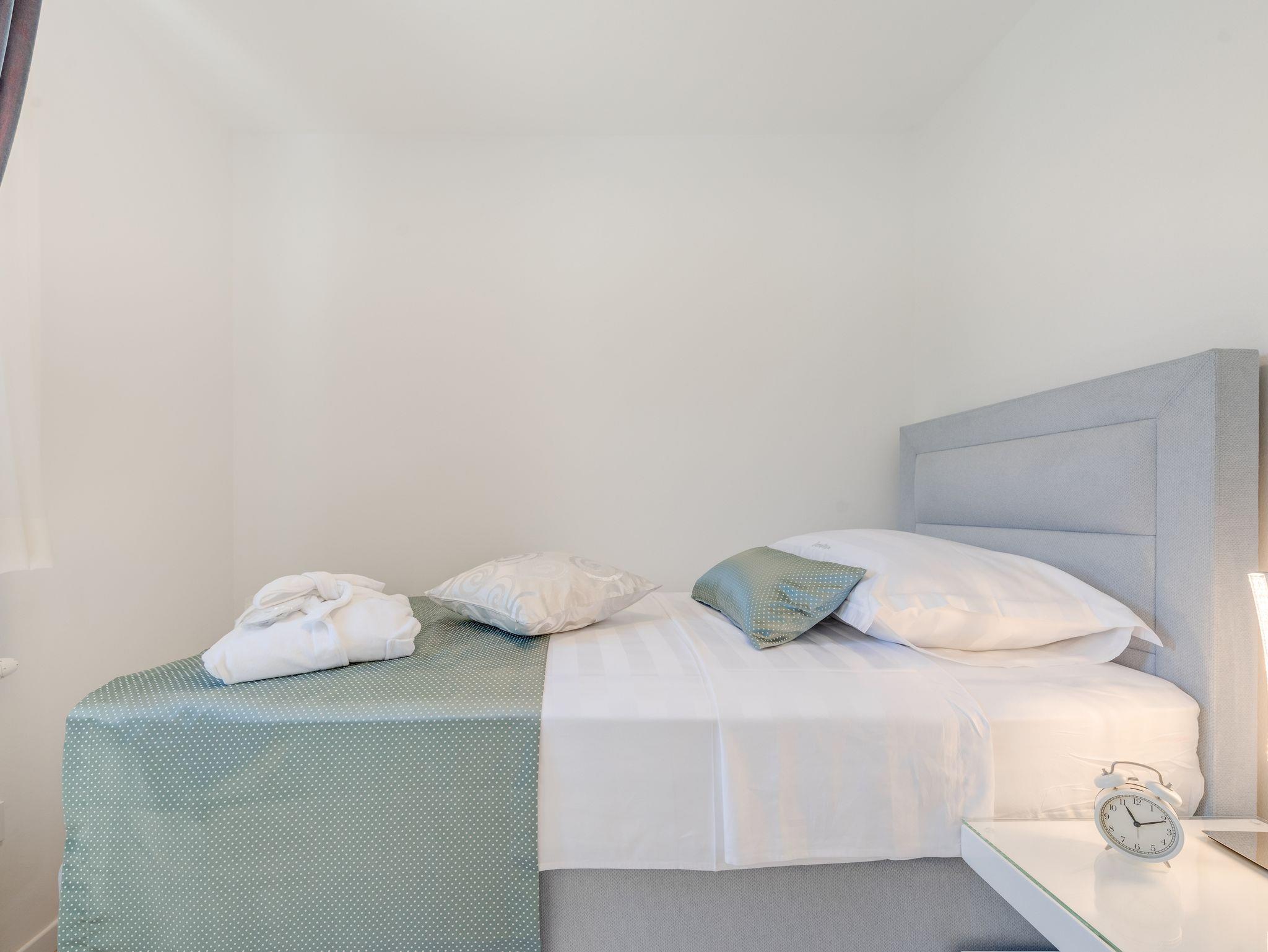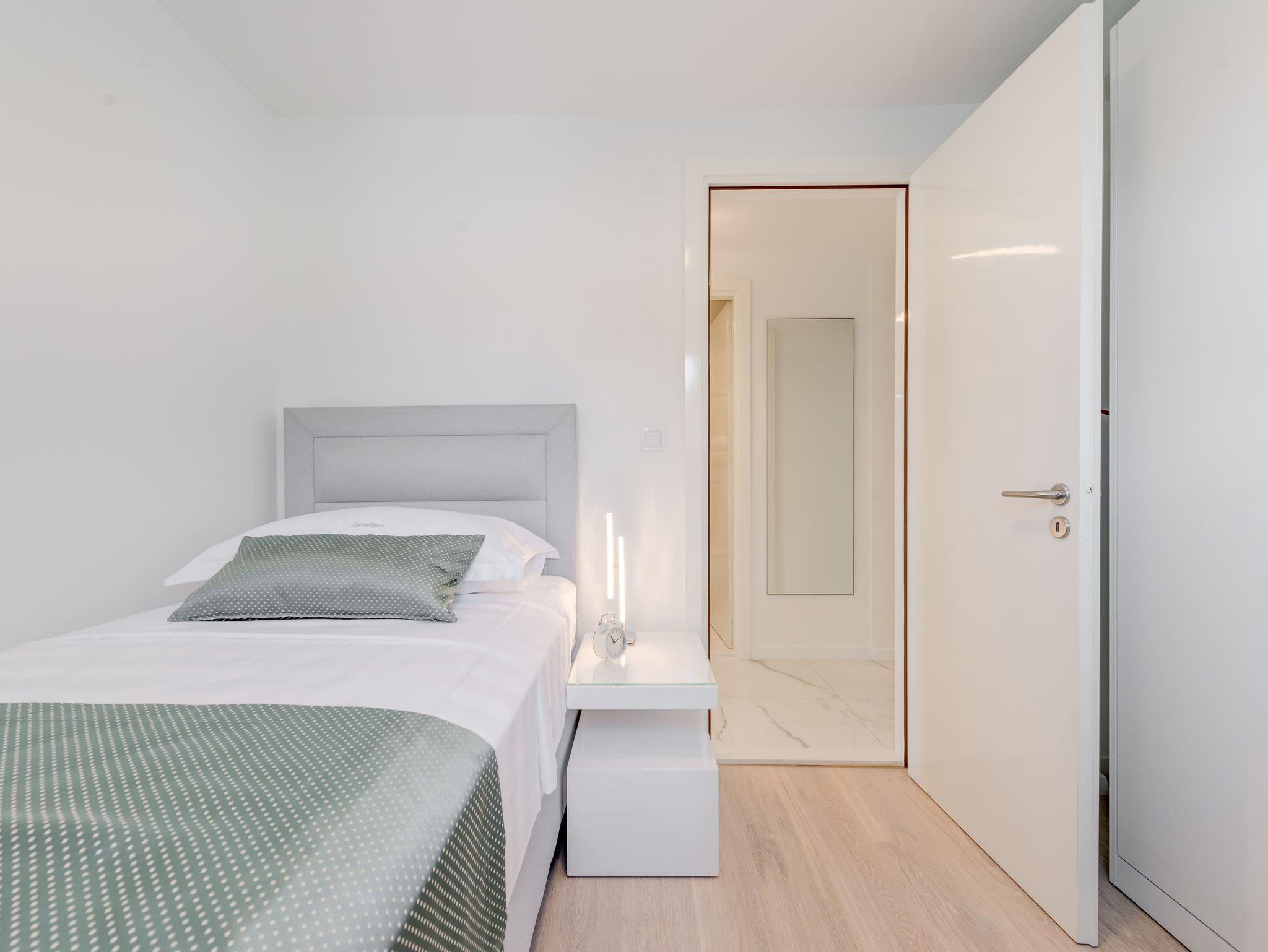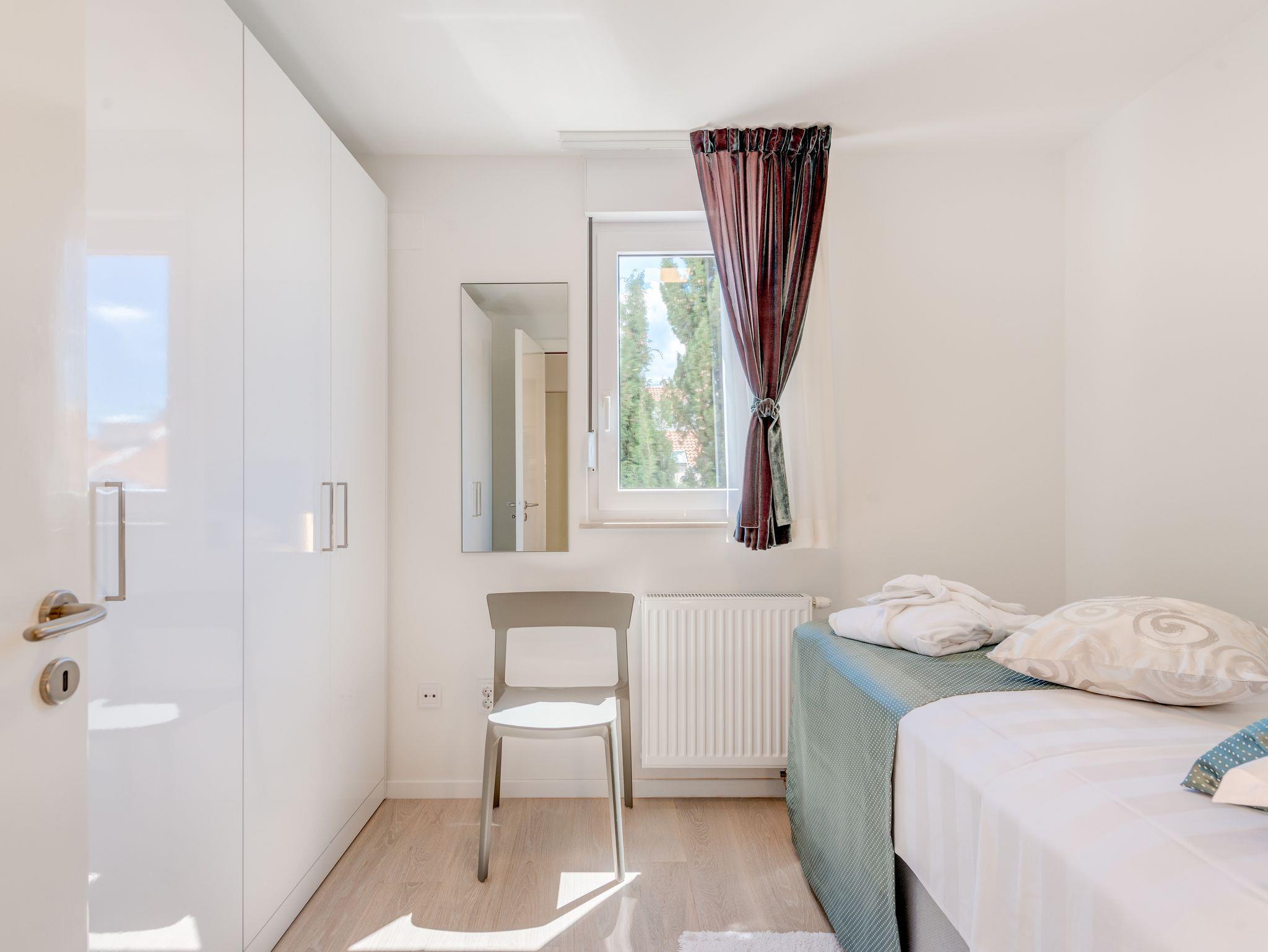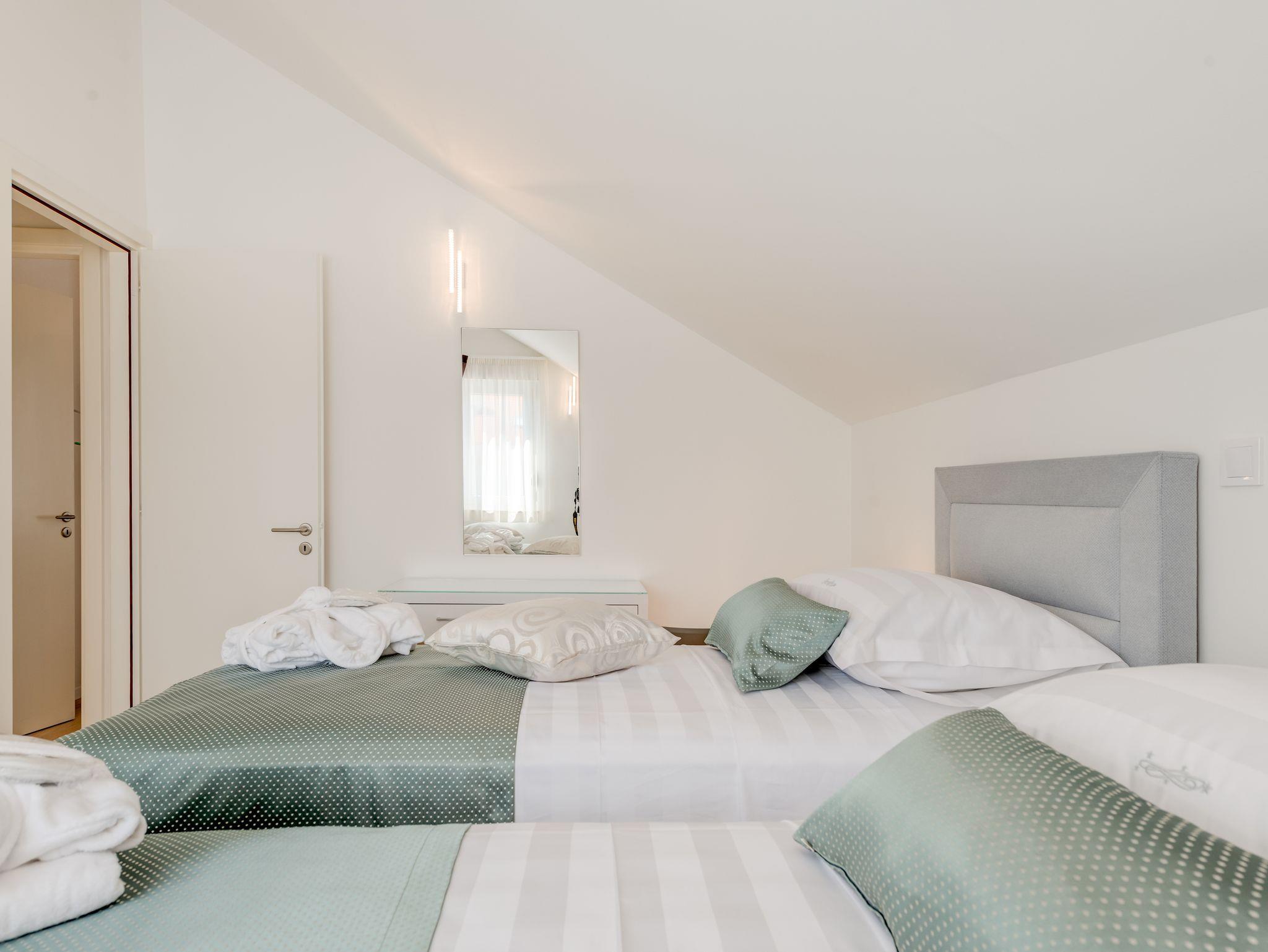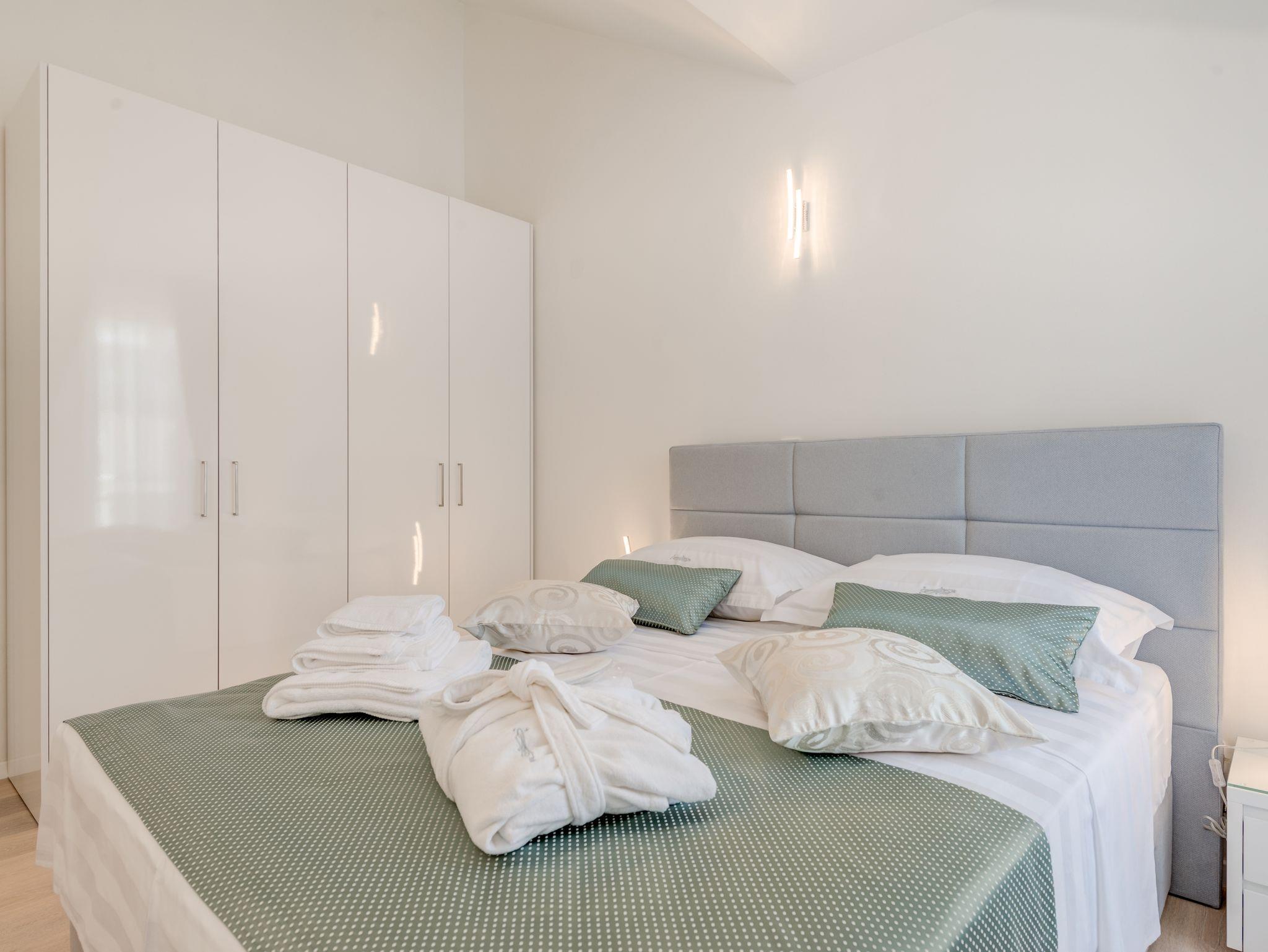 Ferienwohnung bietet Platz für 5 Gäste. Die Betten sind in Schlafzimmern, die es 3 gibt, innerhalb einer Gesamtfläche von 117m2, angeordnet. Die Gäste haben einen eigenen Balkon zur Verfügung, auf der sie in warmen Sommernächten genießen können. Das Apartment bietet Meerblick. IM PREIS INBEGRIFFEN: Kurtaxe, Endreinigung, Klimatisierung, Zentralheizung, Garage, Internet, Kinderbett, Bügeleisen, Bügelbrett, Föhn. UNVERBINDLICHE ZUSÄTZLICHE KOSTEN: Fahrrad (8,00 € täglich (pro Stück)). Die Verfügbarkeit zusätzlicher Dienstleistungen in Ihrem reservierten Termin und die Preise derselben (falls nicht aufgeführt) müssen im Voraus überprüft werden. Zusätzliche Dienstleistungen die in der Zahlungsaufforderung nicht aufgeführt sind werden direkt beim Vermieter bezahlt, angenommen der Gast nutzt auch diese. Ermäßigung auf den Grundpreis: Gratistag 14=13 (bei einem Aufenthalt von 14 Tagen oder mehr erhalten Sie einen Gratistag für den Aufenthalt bis 31.12.25).