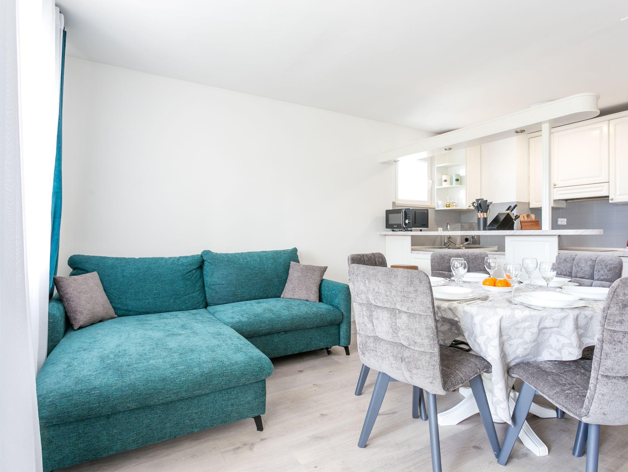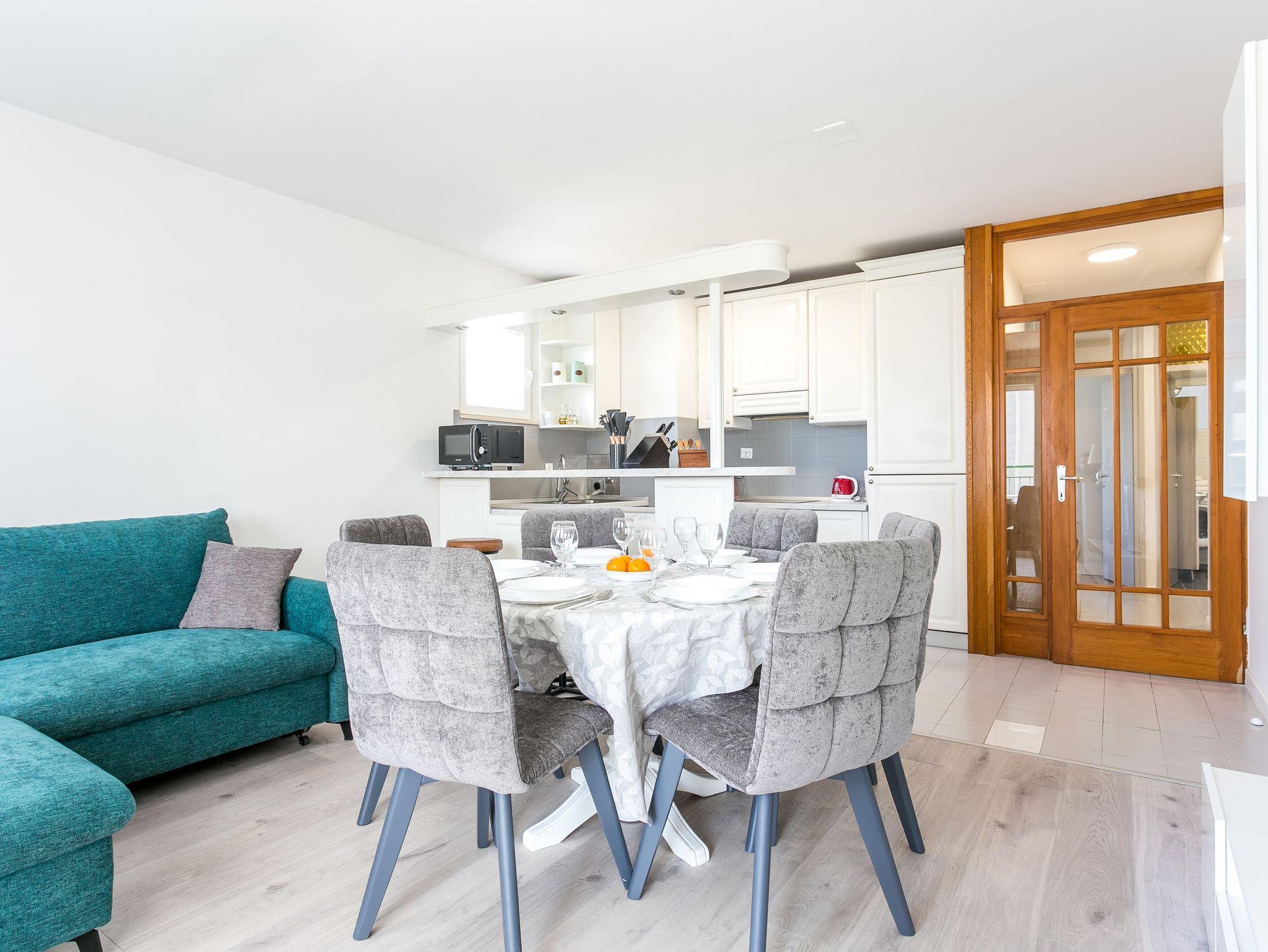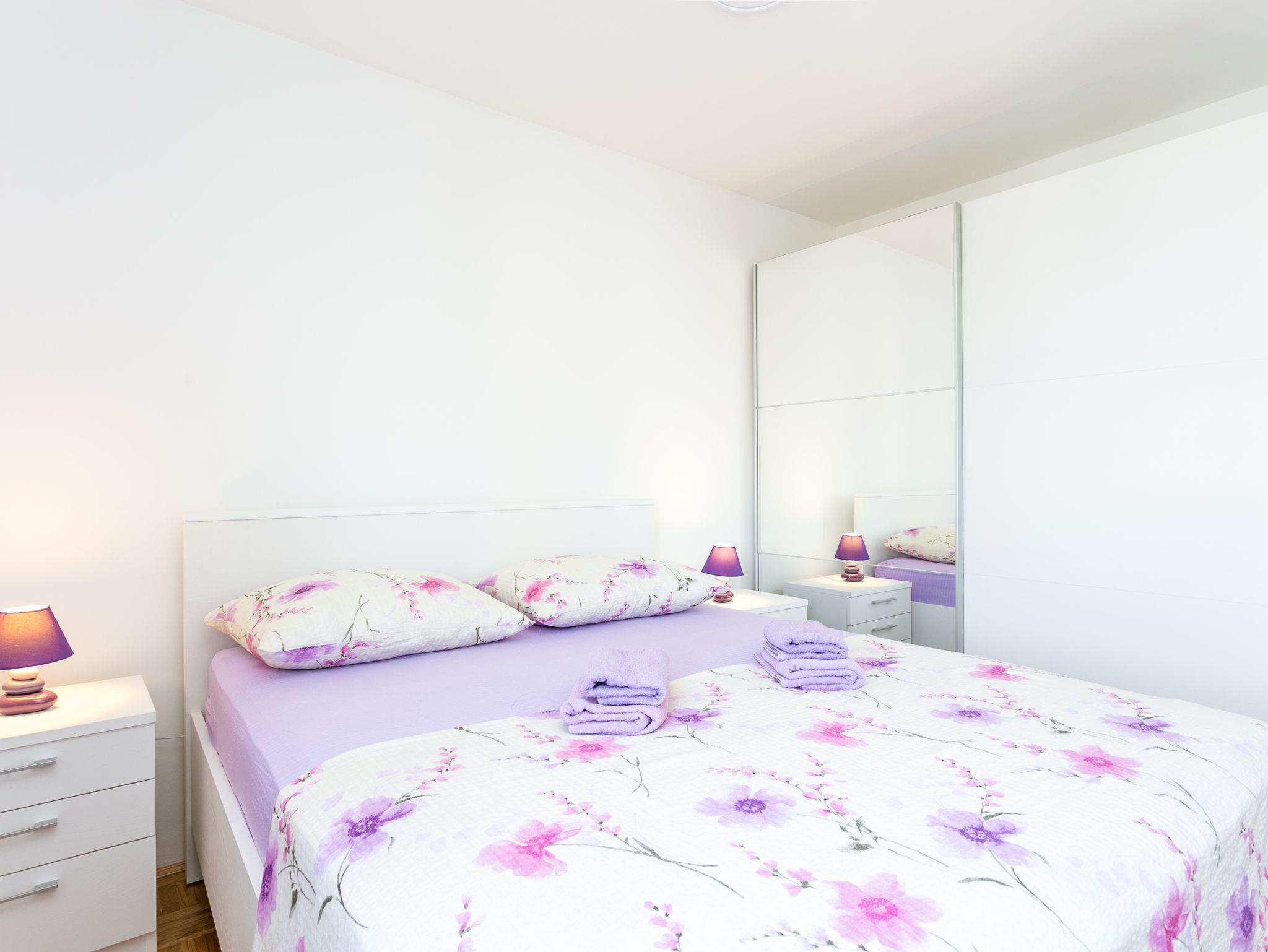 Ferienwohnung bietet Platz für 5 Gäste. Die Betten sind in Schlafzimmern, die es 2 gibt, und in Wohnzimmer, innerhalb einer Gesamtfläche von 53m2, angeordnet. Die Gäste haben eine eigene Terrasse zur Verfügung, auf der sie in warmen Sommernächten genießen können. IM PREIS INBEGRIFFEN: Kurtaxe, Endreinigung, Klimatisierung, Parkplatz, Internet, Kinderbett, Bügeleisen, Bügelbrett, Föhn, Sonnenschirm. VERBINDLICHE ZUSÄTZLICHE KOSTEN: Aufzahlung für Kurzaufenthalte (prozentualer Zuschlag pro Nächtigungsanzahl: 30% - 1, 20% - 2, 10% - 3). UNVERBINDLICHE ZUSÄTZLICHE KOSTEN: Zusatzbett (10,00 € pro Nacht). Die Verfügbarkeit zusätzlicher Dienstleistungen in Ihrem reservierten Termin und die Preise derselben (falls nicht aufgeführt) müssen im Voraus überprüft werden. Zusätzliche Dienstleistungen die in der Zahlungsaufforderung nicht aufgeführt sind werden direkt beim Vermieter bezahlt, angenommen der Gast nutzt auch diese. Ermäßigung auf den Grundpreis: Gratistag 14=13 (bei einem Aufenthalt von 14 Tagen oder mehr erhalten Sie einen Gratistag für den Aufenthalt bis 31.12.26).