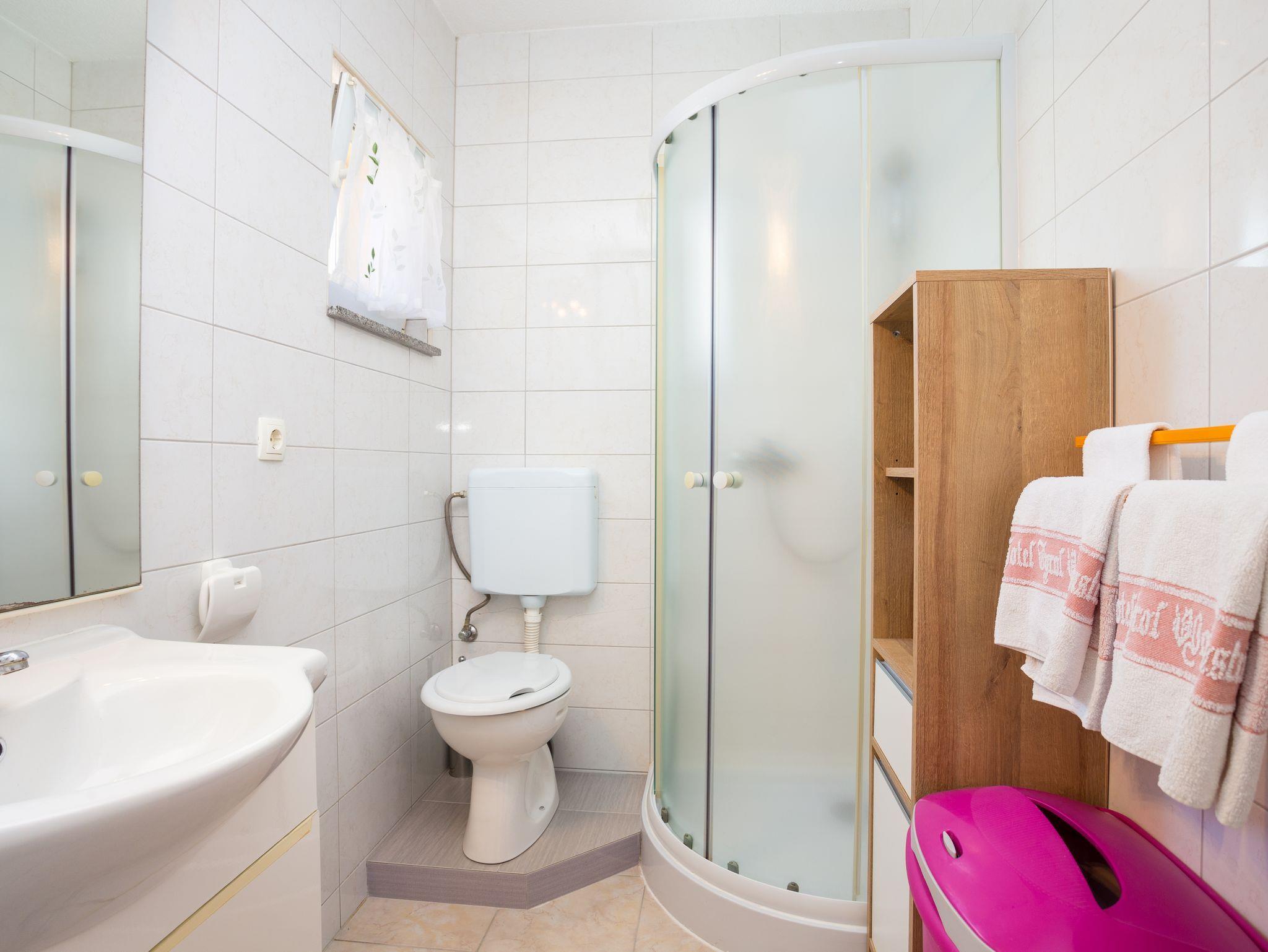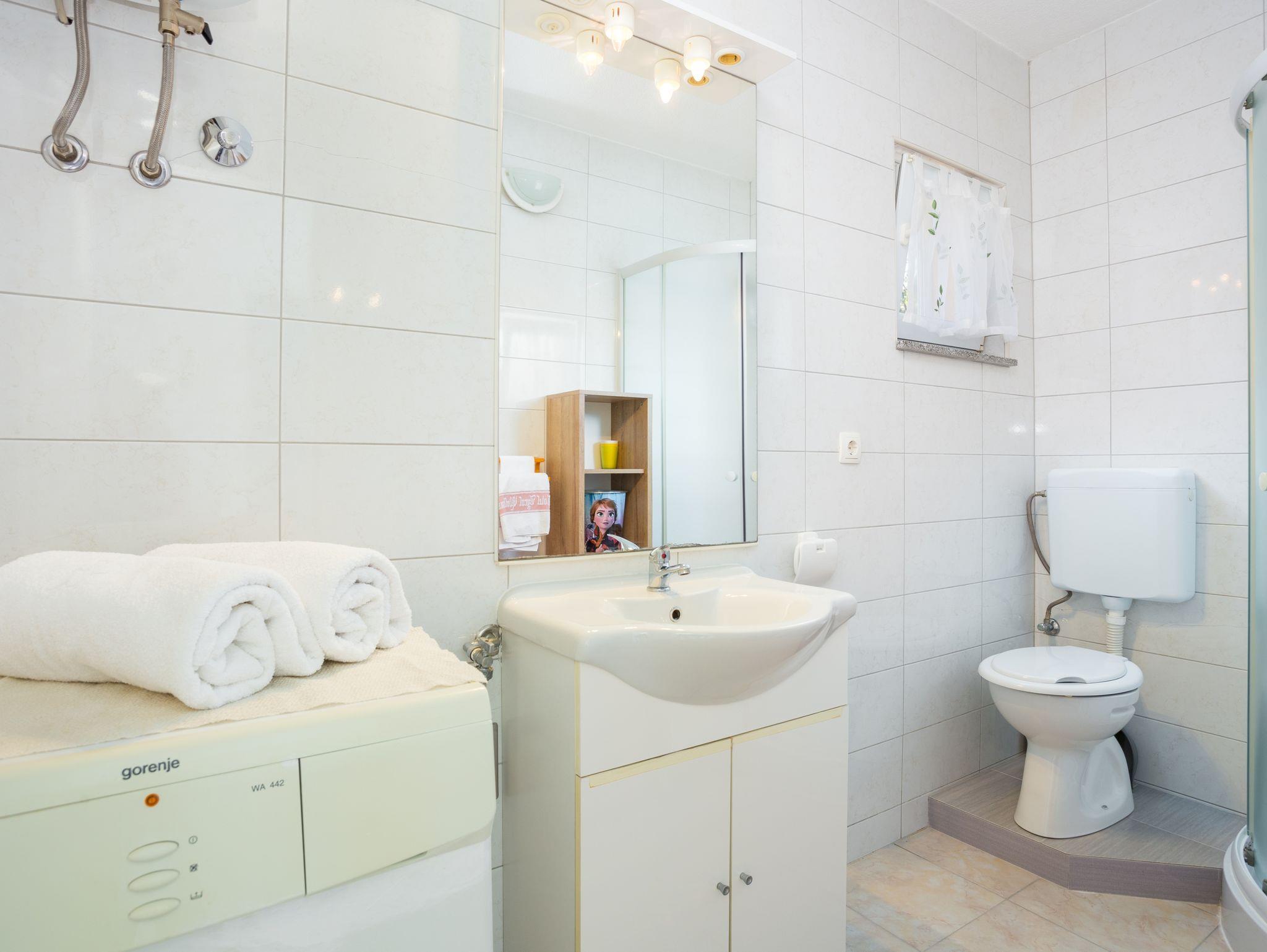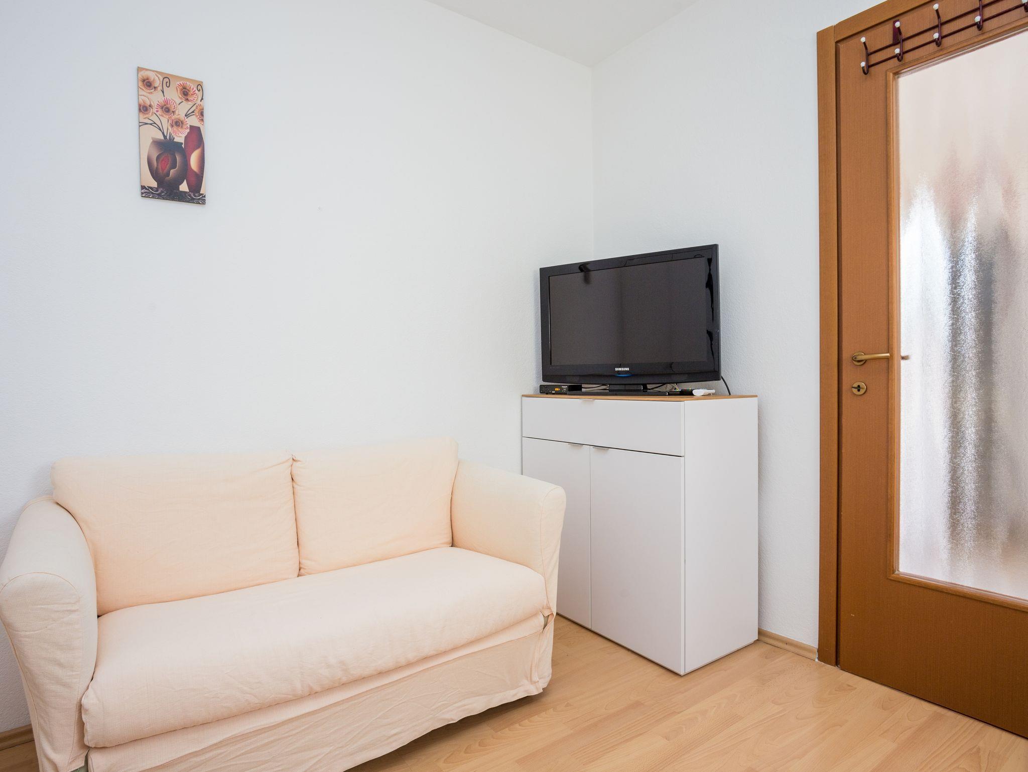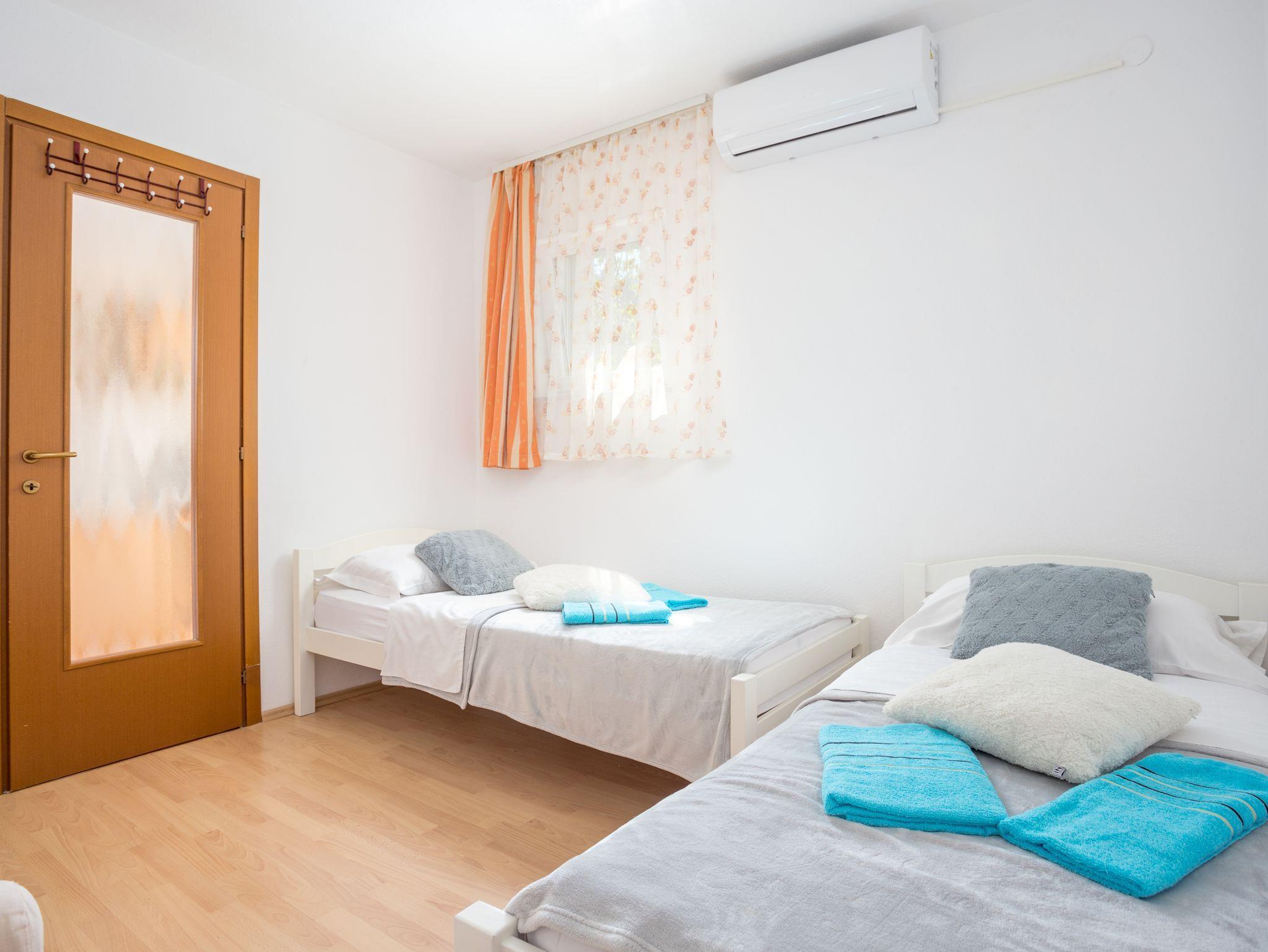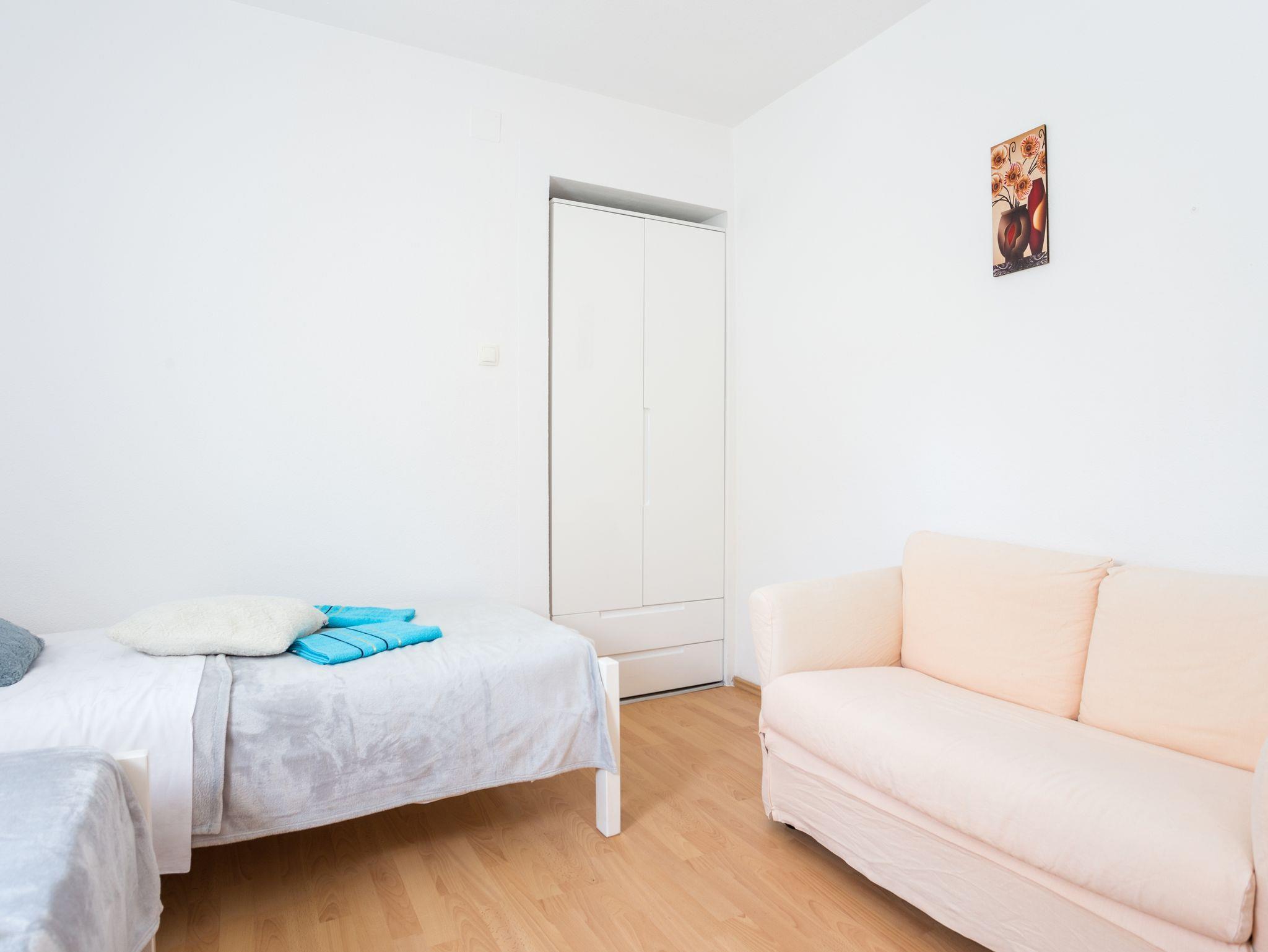 Studio bietet Platz für 2 Gäste. Die Betten sind in Schlafzimmern, die es 1 gibt, innerhalb einer Gesamtfläche von 21m2, angeordnet. Die Gäste haben eine eigene Terrasse zur Verfügung, auf der sie in warmen Sommernächten genießen können. Es ist erlaubt, Speisen auf dem Gemeinschafts-Grill vorzubereiten. Während ihres Aufenthalts können Gäste das gemeinsam zur Nutzung stehende Schwimmbad benutzen. Unterkunftseinheit hat Räume, die von dem Rest der Einheit abgetrennt werden. IM PREIS INBEGRIFFEN: Kurtaxe, Endreinigung, Klimatisierung, Pool, Parkplatz, Internet, Bügeleisen, Bügelbrett, Föhn. VERBINDLICHE ZUSÄTZLICHE KOSTEN: Aufzahlung für Kurzaufenthalte (prozentualer Zuschlag pro Nächtigungsanzahl: 30% - 1, 20% - 2, 10% - 3). Die Verfügbarkeit zusätzlicher Dienstleistungen in Ihrem reservierten Termin und die Preise derselben (falls nicht aufgeführt) müssen im Voraus überprüft werden. Zusätzliche Dienstleistungen die in der Zahlungsaufforderung nicht aufgeführt sind werden direkt beim Vermieter bezahlt, angenommen der Gast nutzt auch diese. Ermäßigung auf den Grundpreis: Gratistag 14=13 (bei einem Aufenthalt von 14 Tagen oder mehr erhalten Sie einen Gratistag für den Aufenthalt bis 31.12.25).