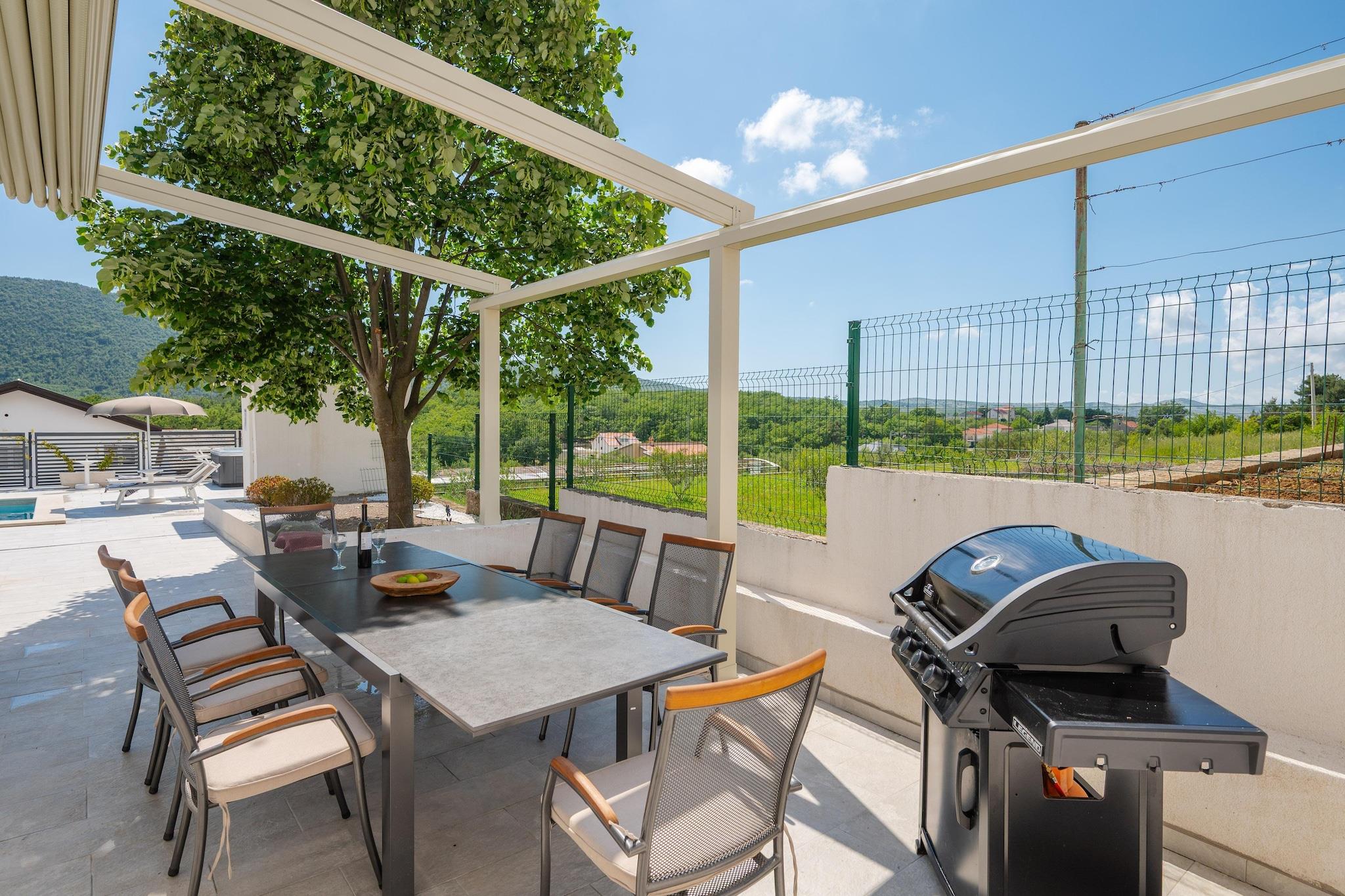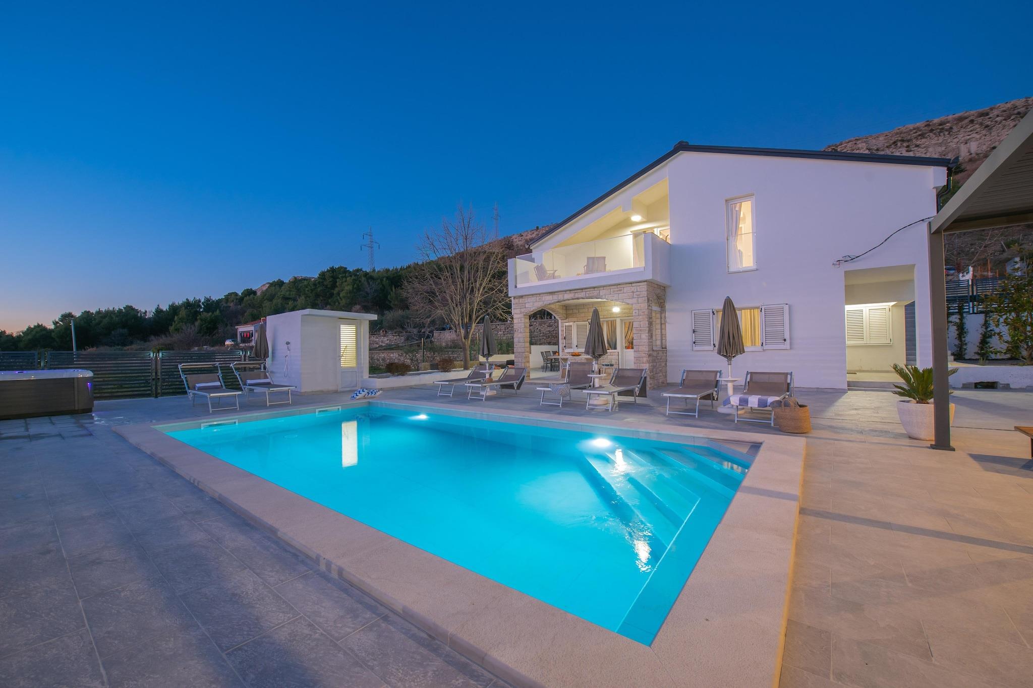 Beliggende i den fredelige landsby Tugare, kun en kort køretur fra Omiš, er Villa Magnolia designet til familier og grupper i blandede aldre, der ønsker plads, privatliv og nem adgang til både natur og kyst. Villaen er spredt ud over 180 m² på en fuldt indhegnet grund og byder komfortabelt velkommen til op til ti gæster med en planløsning, der understøtter både tid sammen og rolige hjørner. I hjertet af haven ligger en stor privat swimmingpool, indrammet af liggestole, en udendørs bruser og skyggefulde siddepladser - alt sammen synligt fra opholdsområderne for nem opsyn med børnene. Fitnessudstyr og andre aktiviteter holder energien balanceret hele dagen, mens den udendørs spiseterrasse med grill forvandler aftener til afslappede familiemiddage under stjernerne. Indenfor er villaen lys, praktisk og velindrettet. Stueetagen har en åben stue og spisestue - en sovesofa for enkeltseng, et tv, en PS5 og et fuldt udstyret moderne køkken. To dobbeltværelser og et badeværelse ligger på denne etage, sammen med et vaskerum til længere ophold. Ovenpå skaber et andet køkken og en stue med endnu en sovesofa til én person, en terrasse, to ekstra soveværelser med dobbeltsenge og endnu et badeværelse en fleksibel dobbeltbolig, der fungerer særligt godt for familier med ældre børn eller bedsteforældre. Daglige fornødenheder - minimarked, café, fastfood og lokale taverner - ligger alle inden for gåafstand. Den nærliggende Cetina-flod tilbyder rafting, ziplining og bådture, mens strande nær Omiš ligger en nem køretur væk. En kulturel dagstur til Split tilføjer historie, shopping og strandpromenader til blandingen.